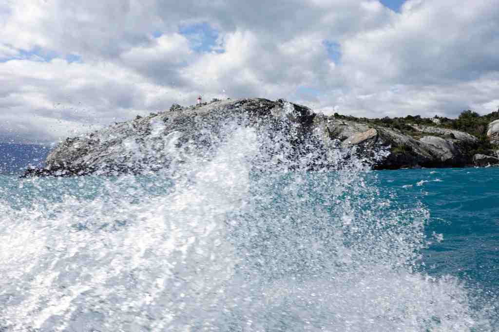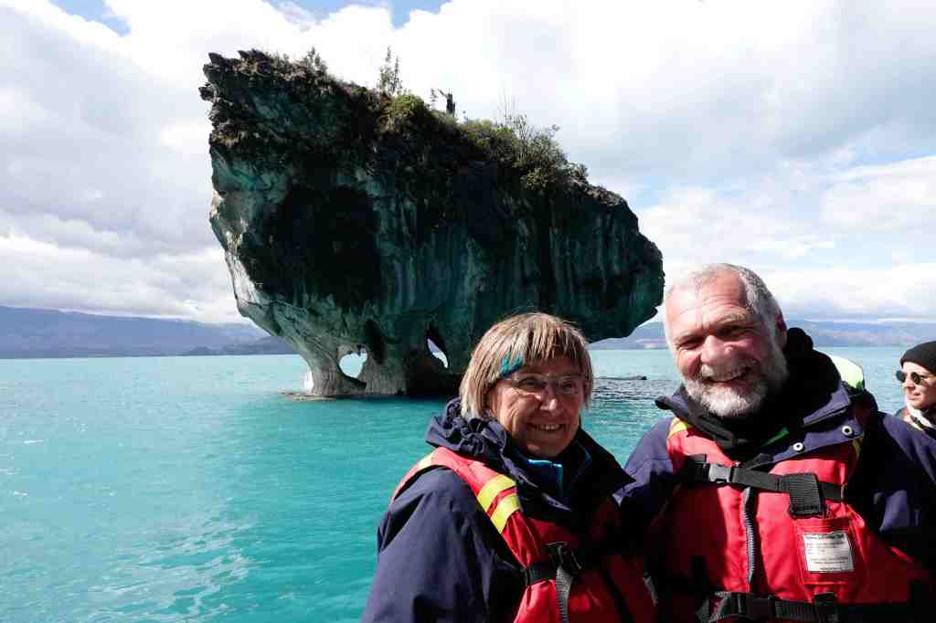Hier machen wir einen Bootstour zu den berühmten „Capillas de Marmól“. Die kleinen Boote können dicht an die Felsformationen aus Marmor heran- und in einige sogar hineinfahren. Ein bezauberndes Farbenspiel des türkisblauen Wassers mit dem hellen Marmor! Der heftige Wind macht die Rückfahrt zu einem echten Erlebnis. Das Boot steigt hoch auf die Wellenkämme um dann mit Wucht wieder herunter zu stürzen. Wir werden tüchtig durchgeschaukelt und durchnässt, aber wir quietschen vor Vergnügen!