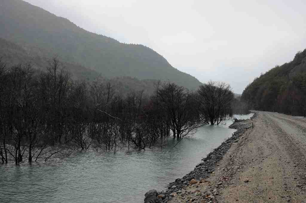 Von Puerto Tranquilo führt die Straße weiter entlang des Lago General Carrera und des Rio Baker, des größten Flusses Chiles nach Cochrane und Puerto Yungay. Hier müssen wir wieder eine Fähre nehmen, die 4 Mal täglich verkehrt. Sie ist kostenlos und bringt uns in 40 Minuten nach Rio Bravo. Jetzt sind es noch ca. 100 km bis Villa O`Higgins, dem Endpunkt dieser aufregenden, beeindruckenden, unglaublich faszinierenden Fahrt durch die Wildnis Patagoniens! Da die Straße hier endet und man nur zu Fuß ins Nachbarland gelangen kann, müssen wir umkehren und den gleichen Weg zurückfahren, wenn man uns lässt…