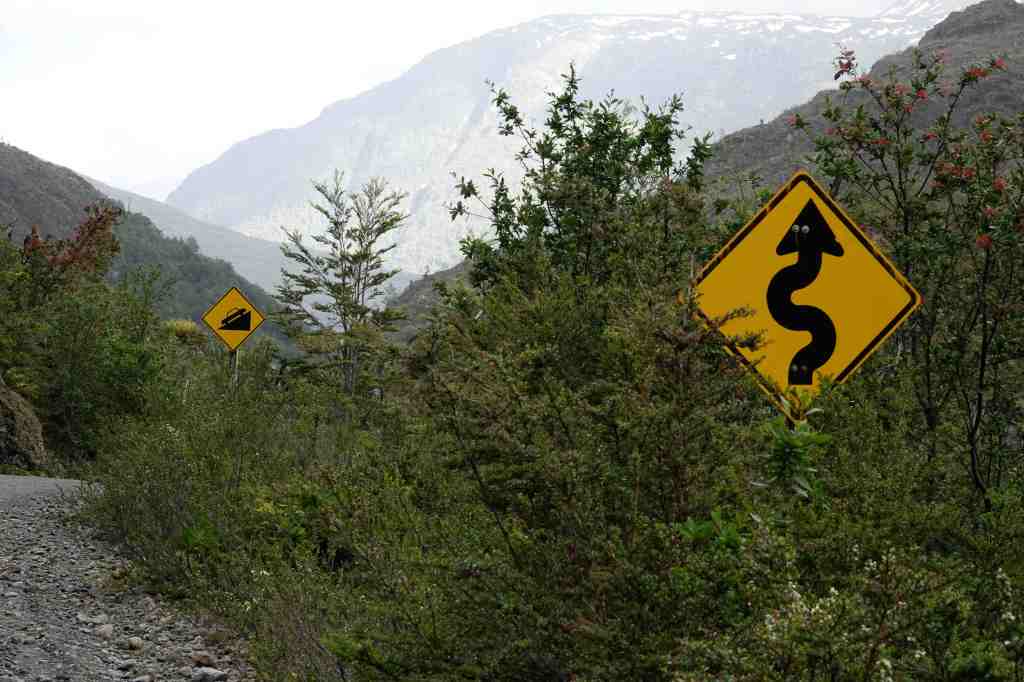 Immer mal wieder klettert die Carretera in Serpentinen die Berge hinauf und führt in schwindelerregender Höhe an steilen Abgründen entlang. Der Ausflug in die Wildnis Patagoniens ist ein ganz besonderes Erlebnis und die Erwartungen, die wir hatten, wurden mehr als erfüllt! Zum größten Teil ist es eine reine Schotterpiste und oft ist nur eine Spur vorhanden, so dass wir froh sind, nur wenigen Fahrzeugen zu begegnen. Aufregend wurde es nur einmal, als uns 3 große Baufahrzeuge entgegenkamen und Walter ein langes Stück der Piste rückwärts den Berg hochfahren musste.