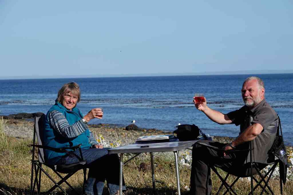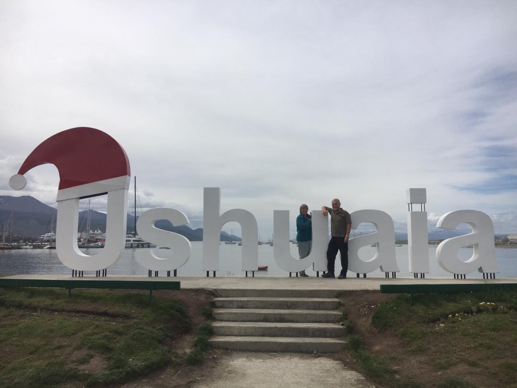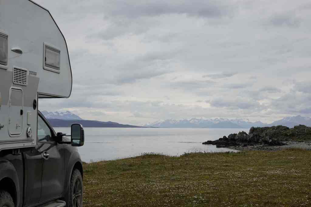 Von Porvenir aus geht es immer weiter nach Süden, auch Feuerland begrüßt uns mit Sonnenschein und wenig Wind. Wir verbringen den Rest des Tages und eine Nacht an einem wunderschönen Platz am Meer und es gibt immer noch Drinks mit Gletschereis! Am nächsten Tag fahren wieder mal über die Grenze nach Argentinien. Die Grenzziehung in Patagonien/Feuerland ist schon sehr skurril und den jeweiligen Gebietsansprüchen der beiden Länder geschuldet. Noch ein Zwischenstopp mit Einkauf in Rio Grande, eine weitere Übernachtung am Meer und pünktlich zu Sylvester erreichen wir Ushuaia.