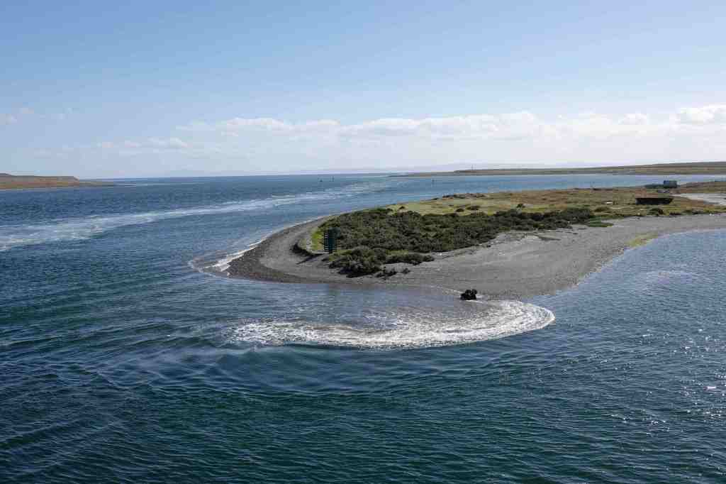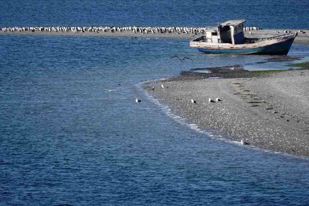 In Punta Arenas nehmen wir die Fähre über die Magellanstraße nach Porvenir. Die Fähre fährt nur zweimal am Tag aber wir bekommen problemlos ein Ticket für die Überfahrt um 16:00 Uhr. Die Sonne strahlt und der Wind weht sehr moderat, so dass sich die Überfahrt von zwei Stunden sehr angenehm gestaltet. Kaum zu glauben, wie schnell sich das Wetter ändert – gestern noch im Gebirge nur Sturm und Regen und nun eitel Sonnenschein, fantastisch! Wir haben Glück und wissen das um so mehr zu schätzen, da die Fähre häufig wegen des Sturms gar nicht verkehrt. Wir schauen intensiv nach Delphinen aus – aber in diesem Fall hat uns das Glück leider verlassen.
