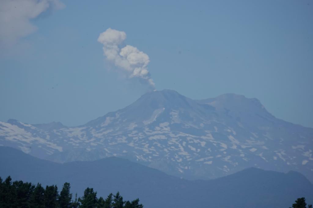 Unterwegs können wir immer mal einen Blick auf einen aktiven Vulkan werfen, der ab und zu ein paar Rauchwolken ausstößt.