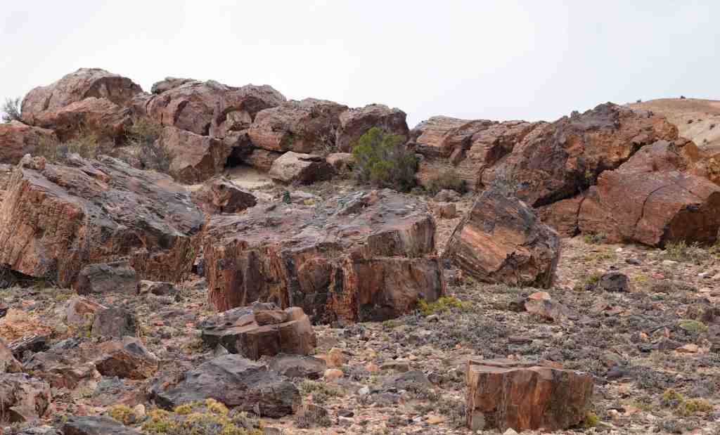 Vor ca. 150 Millionen Jahren wurden die bis zu 50 Meter hohen Araukarien aufgrund stürmischer Winde infolge eines Vulkanausbruchs umgestürzt und von Vulkanasche bedeckt. Durch die mit dem Regenwasser in die Bäume eindringenden Mineralien wurden das Holz ersetzt, die Struktur des Baumes jedoch genau erhalten. In einer kleinen Ausstellung kann man auch kleine Äste in die Hand nehmen – eine interessante Erfahrung: Man erwartet vom Ansehen her ein Leichtgewicht und hält ein kiloschweres Stück Stein in den Händen.