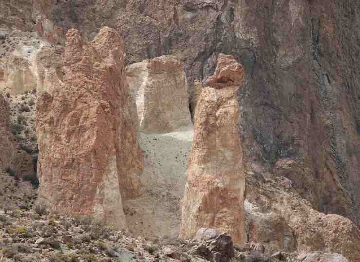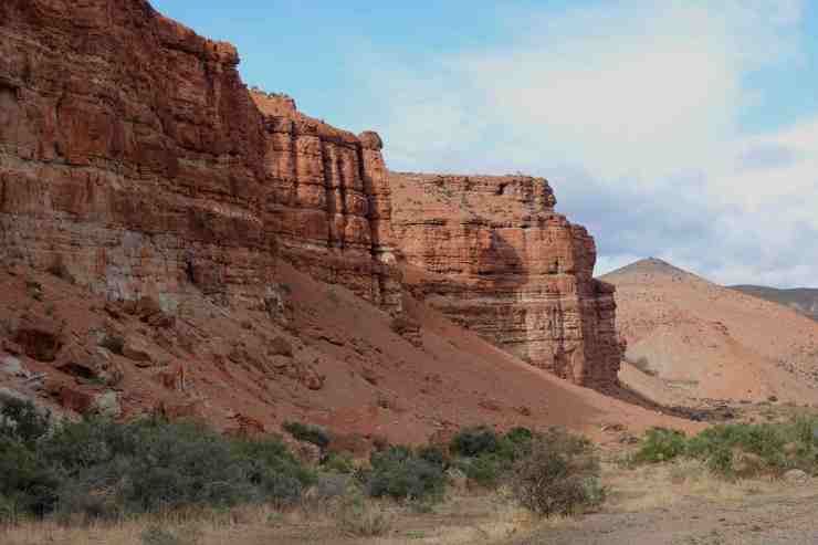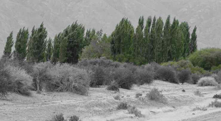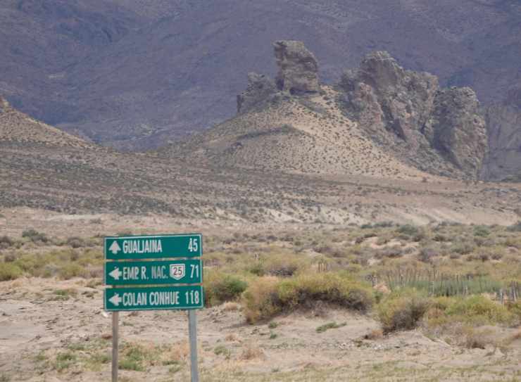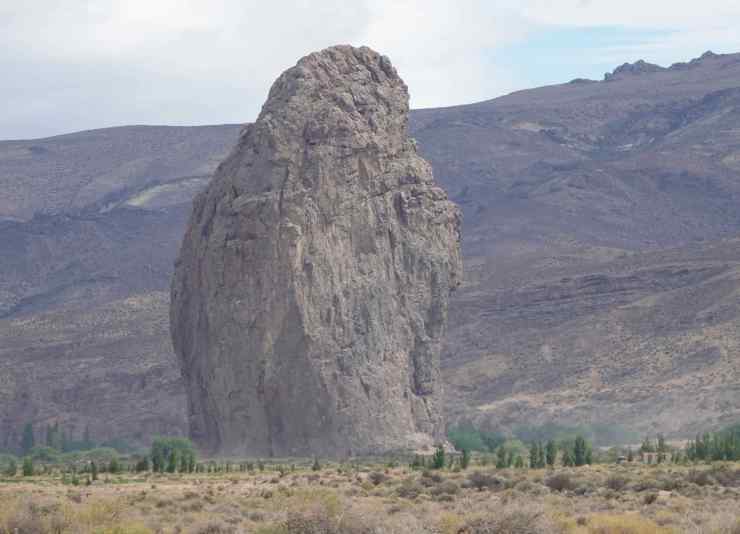 Am Rio Chubut entlang bewundern wir die überaus abwechslungsreiche Landschaft. Das Flussufer ist eine grüne Oase inmitten der Steppe. Die Berge sind stark zerklüftet und man kann förmlich erkennen, wie sie langsam immer weiter zerbröckeln. Mitten in der Landschaft taucht unvermutet ein einzelner standfester Fels auf, (Piedra Parada) auf, der mitten in der Steppe der Erosion trotzt.