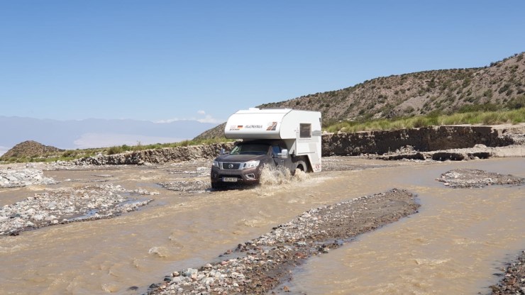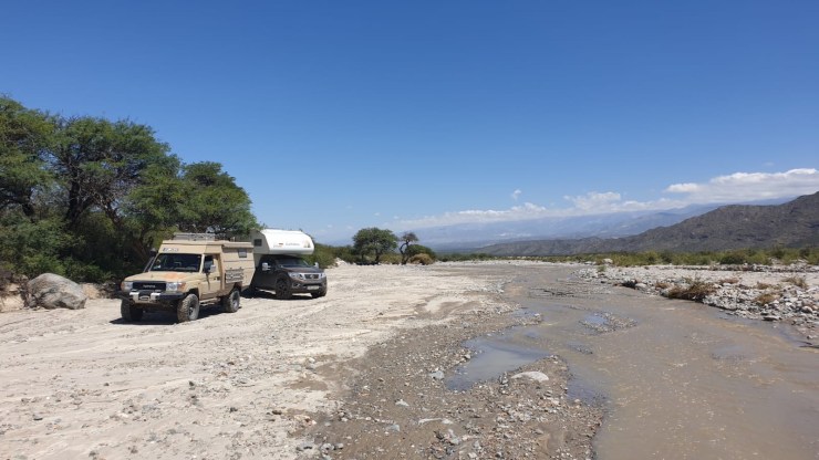 Unser erster Anlauf misslingt. Wir wollten mal wieder eine Piste nehmen, aber nach stundenlangem Fahren durch unwegsames Gelände scheitern wir an einem Fluss. Wir hätten 12 km im Flussbett entlangfahren müssen, aber schon nach den ersten Metern reichte der Schwall bis zur Motorhaube. Unser Auto hat im Gegensatz zum Obelix von Dunja und Rainer keinen Schnorchel und wir müssen leider aufgeben. Abends sind wir nach einem ereignisreichen Tag und spannender Geländetour wieder zurück in „Los Olivos“.
