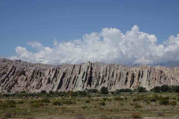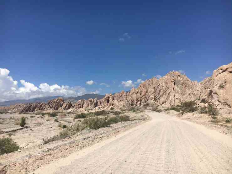 Nach einem weiteren Abschied von den total netten und immer hilfsbereiten Campingplatzbesitzern Monique und Carlos und Peter, einem Deutschen, der sich freute, mal mit Landsleuten ein wenig klönen zu können, geht es am nächsten Tag auf akzeptablen Straßen durch riesige Weinanbaugebiete gen Norden. In Cafayate bleiben wir für eine Nacht auf dem Campingplatz. Wir nehmen am nächsten Tag die Ruta 40 und fahren durch das Valle Calchaquies mit vielen Adobehäusern und werden wieder mal von den aberwitzigen Felsformationen und den verschiedenfarbigen Steinen beeindruckt.