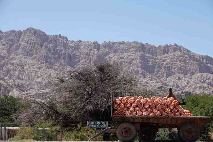 Da hier auf der „Ruta de Artesanias“ viele traditionelle Handwerksbetriebe liegen, die nach alten Mustern Ponchos und andere gewebte Textilien herstellen, bin ich ganz gespannt, ob ich hier noch ein bisschen Wolle erstehen kann. Es gibt in Molinos sogar eine Vicuña-Farm, die die begehrte und seltene Vicuña-Wolle herstellen soll. Leider ist mal wieder Siesta, wenn wir ankommen und kein Mensch weit und breit zu sehen. Auch in den anderen Orten entlang des Weges und in Cachi, einem reizenden kleinen Ort, werde ich nicht fündig.