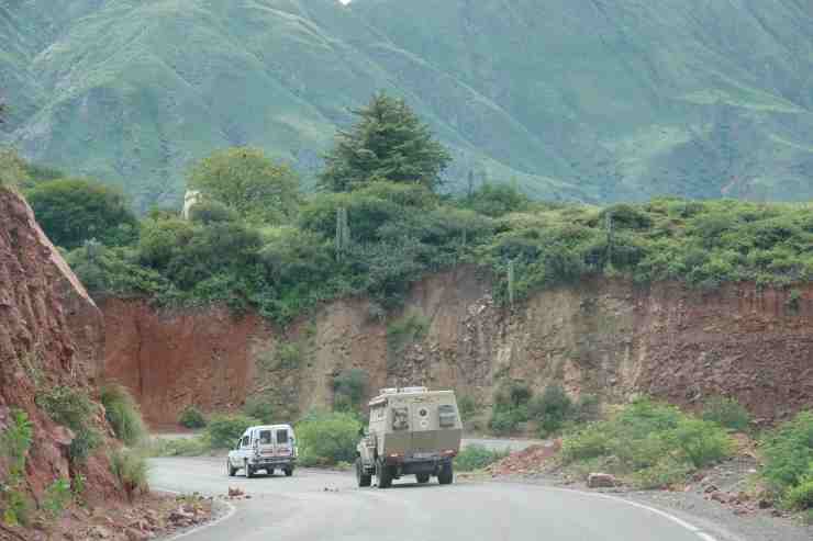 Bis Salta ist es nicht mehr weit. Die Landschaft ändert sich total und von der wüstenartigen Hochebene kommen wir nun in eine Gegend, die von sattem Grün geprägt ist. Die Berge sind mit Pflanzen bedeckt und überall strömt Wasser herunter.