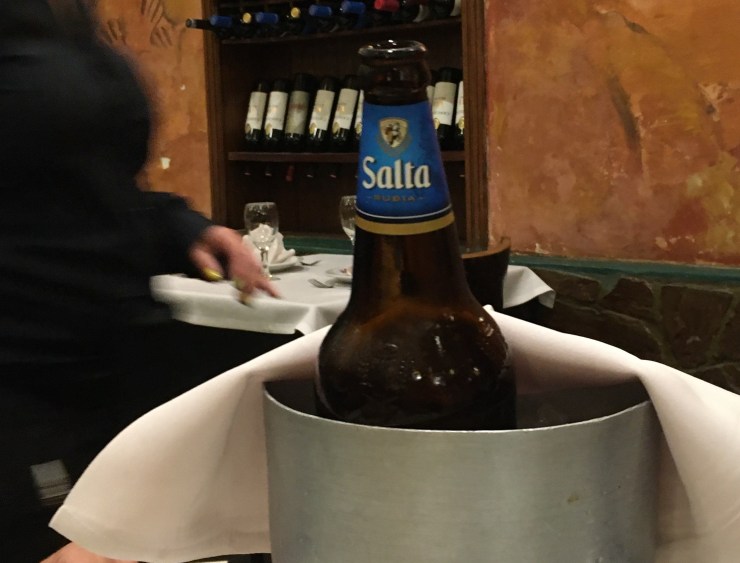 Das Bier wird im Sektkühler serviert und das T-Bone-Steak ist wie erwartet riesig lecker!