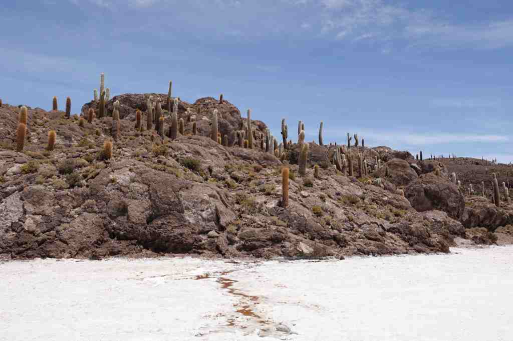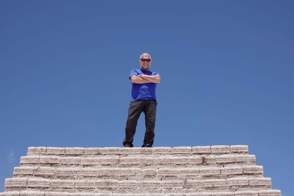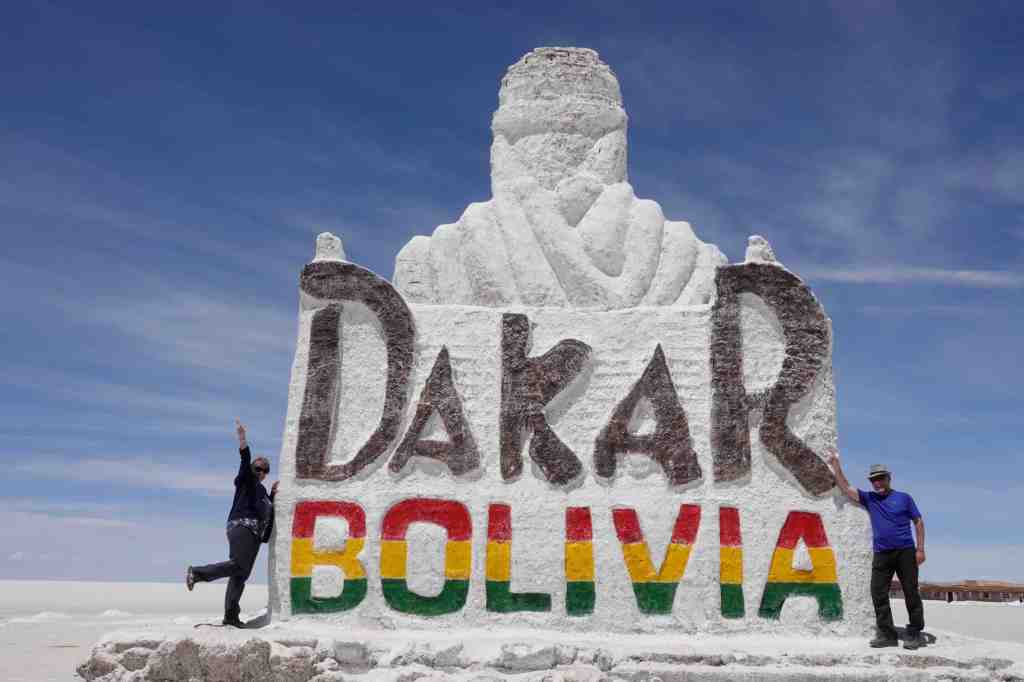 Natürlich fahren wir wie alle anderen auch die markanten Punkte an: Das Monument der Ralley Dakar, die 2016 durch Bolivien und Argentinien hier über den See führte, die Insel Inca Huasi, auf der man mittlerweile auch in einem kleinen Hotel übernachten kann, die Stairways to Haeven.