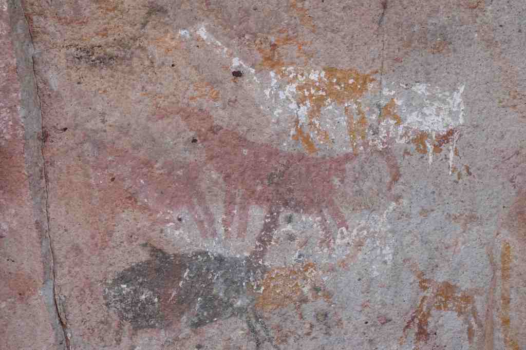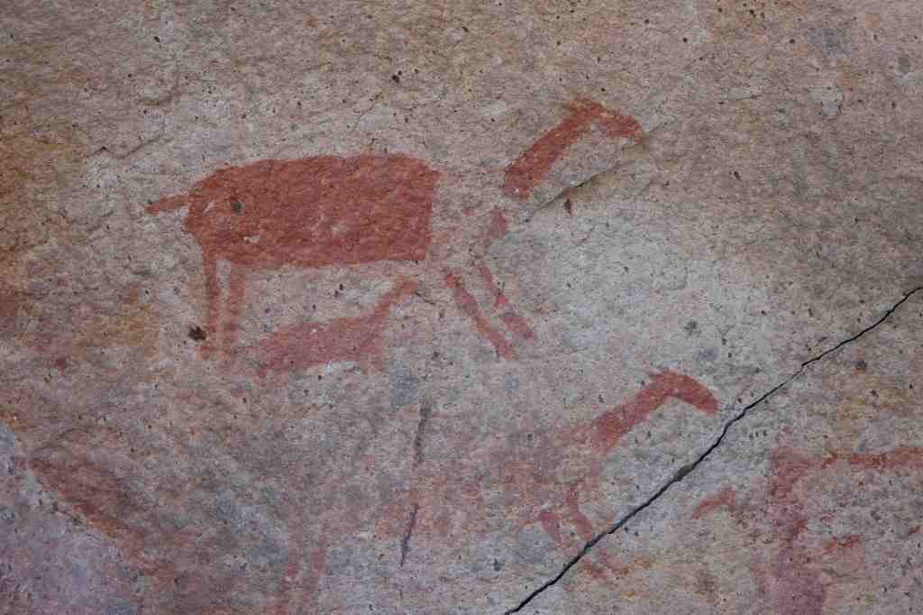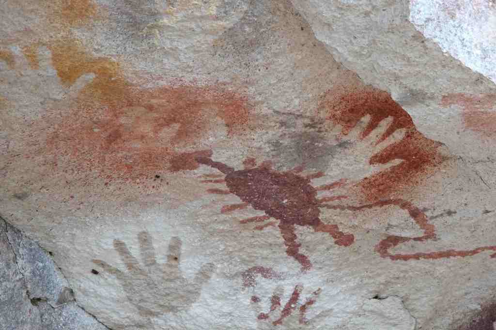 Auch wenn die Malereien durch Gitter geschützt sind, kann man die Werke sehr gut erkennen. Es sind überwiegend Negativ-Drucke von Handflächen und Darstellungen von Jagdszenen, auch ein Bild von einem bösen Geist, der wohl gebannt werden soll, ist zu sehen. Sehr beeindruckend ist, dass die Farben noch sehr kräftig und alle Zeichnungen recht gut erhalten sind.