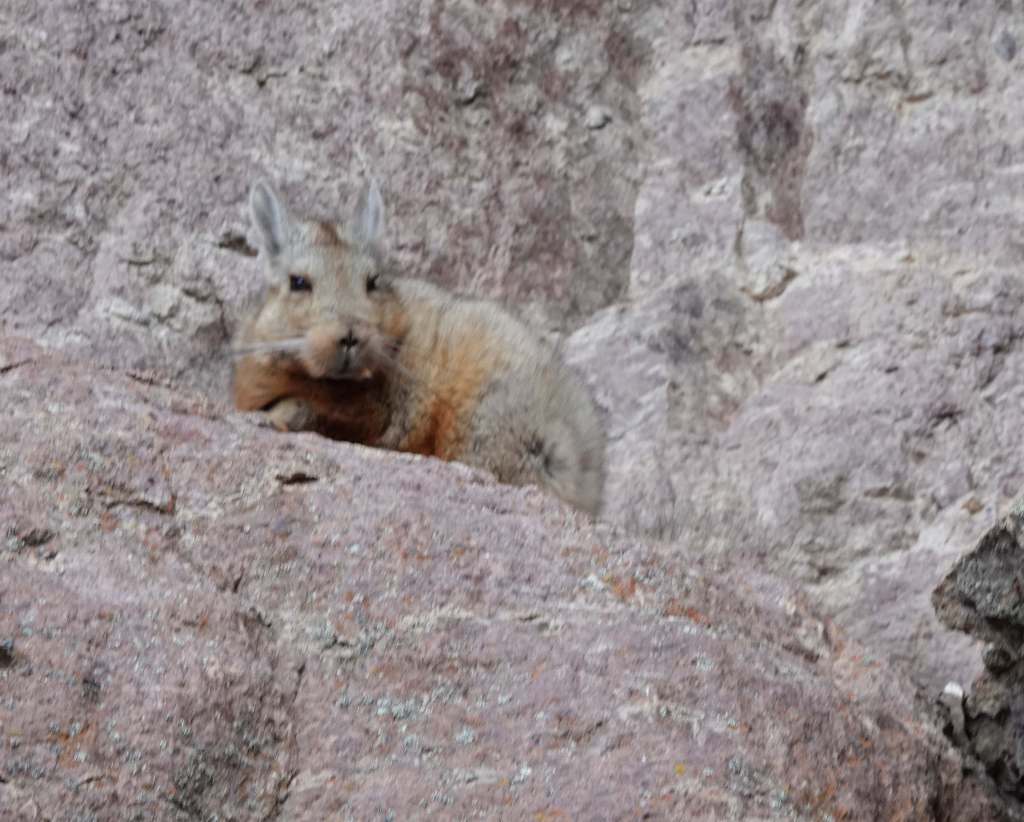 Auf einem Felsvorsprung entdecken wir ein Chinchillón, welches neugierig zu uns herunter blickt.