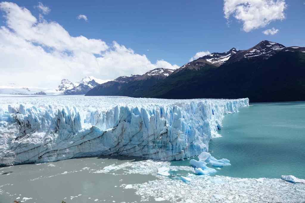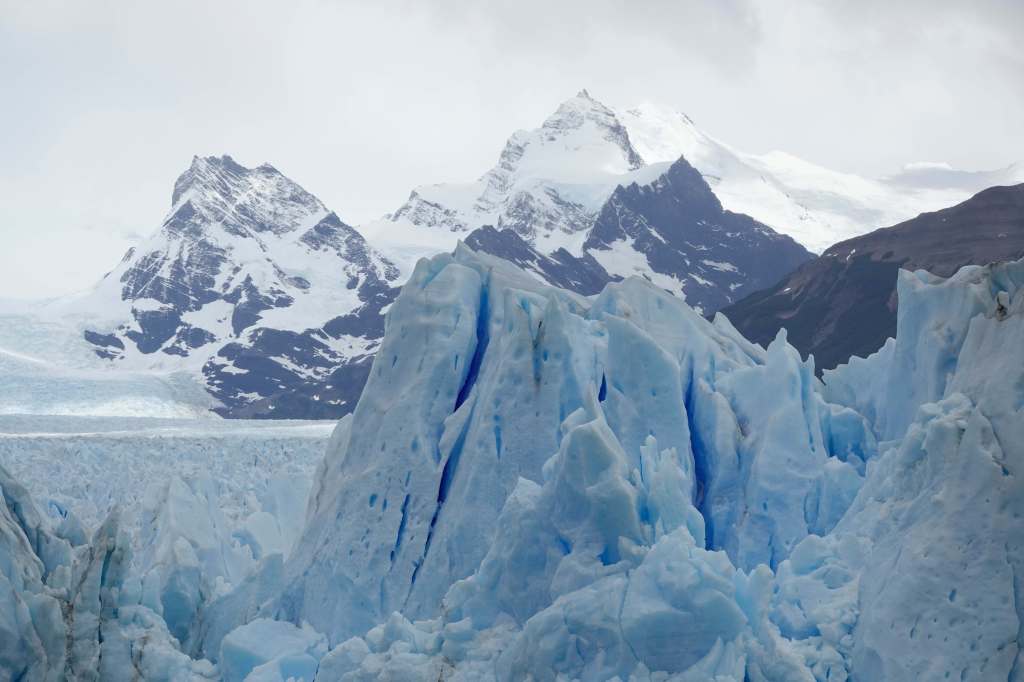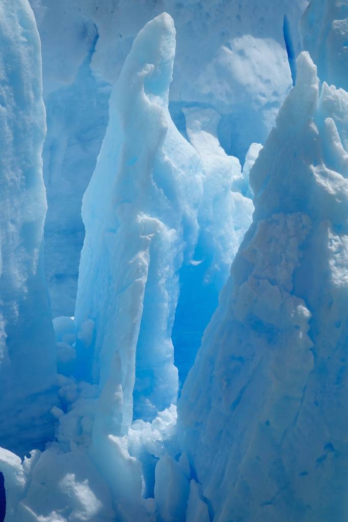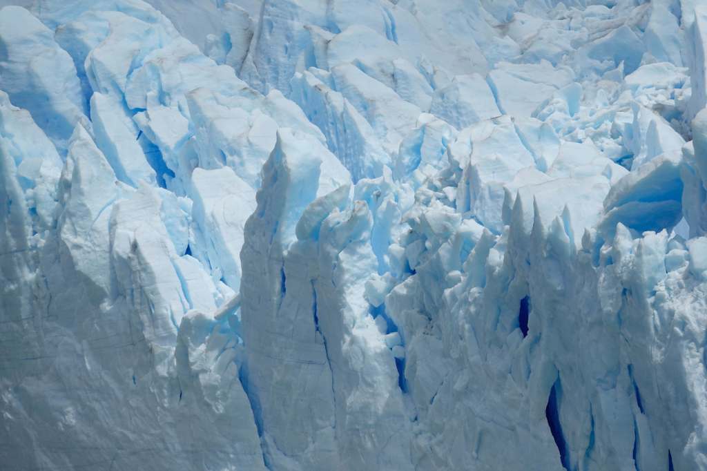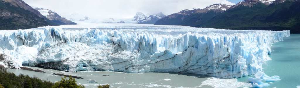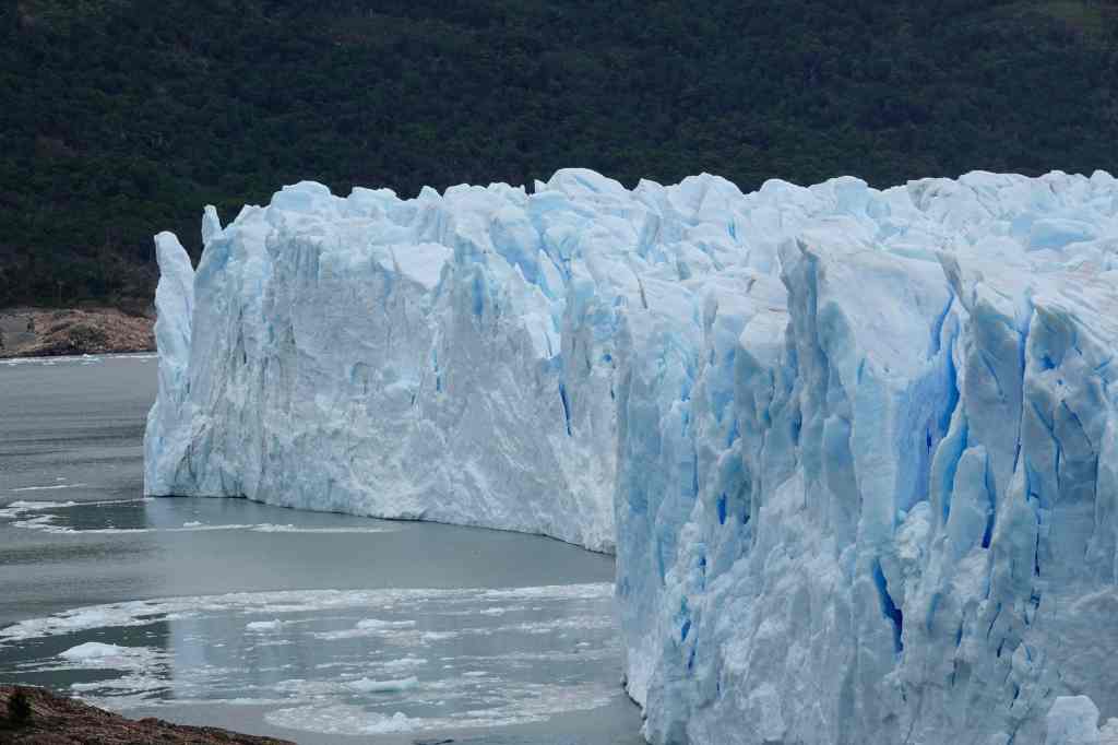 Wir werden auf einen Parkplatz etwas oberhalb geleitet und mit einen Kleinbus (kostenloser Transfer) zum Gletscher gefahren. Auf gut ausgebauten Stegen kann man entlang des Gletschers wandern und den Ausblick auf die gigantische, 60 – 100 m hohe und 5 Kilometer breite Eiswand, die sich in den Lago Argentino schiebt. Der Perito Moreno ist auf Grund der speziellen Wetterverhältnisse einer der wenigen wachsenden Gletscher weltweit. Er fließt schneller nach, als er am Ende der Gletscherzunge abtaut und schnürt dabei alle paar Jahre einen Teil des Lago Argentino ab. Der sich dadurch aufbauende Druck auf die vom Gletscher gebildete Staumauer erhöht sich enorm und sie wird mit einer gewaltigen Explosion weggesprengt. Wir konnten nicht genau erkennen, in welchem Stadium sich der Gletscher gerade befindet- die Engstelle war jedenfalls sehr schmal, entweder kurz vor dem Verschluss oder kurz danach…Der Perito Moreno ist Teil des patogonischen Inlandeisfeldes, abgesehen von den Polregionen, die größte zusammenhängende Eismasse der Erde (22 000 km2).