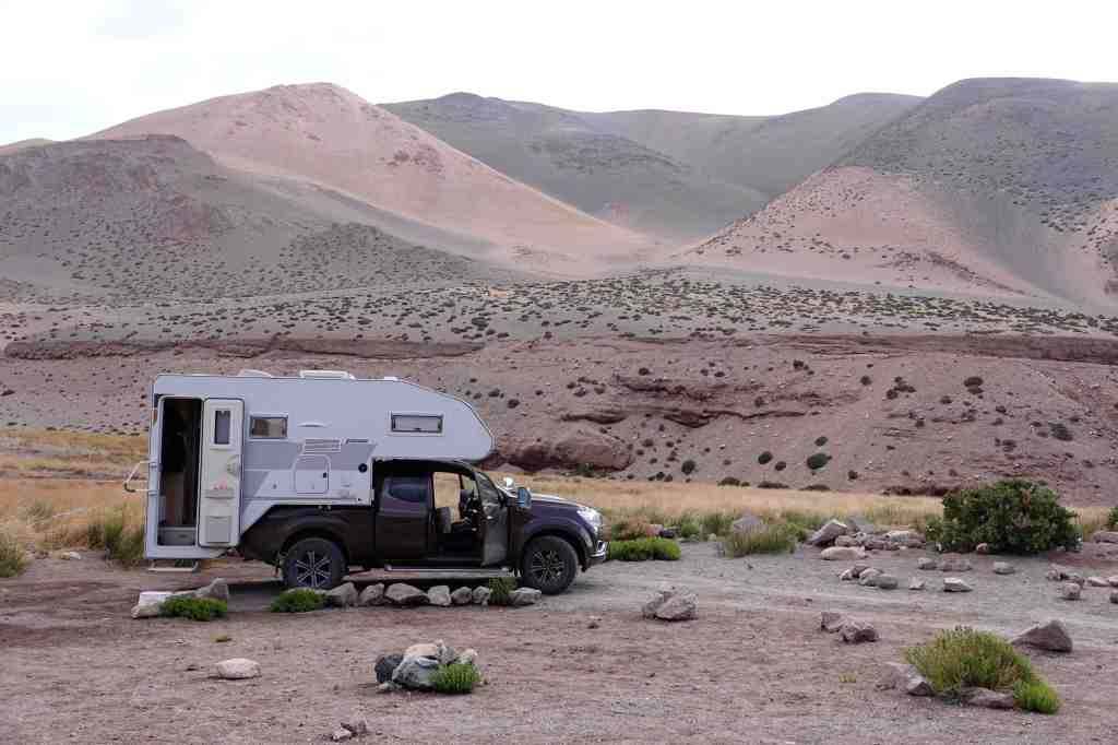 Wir wurden zwar relativ schnell fündig, aber wegen eines Feiertages waren zwei der infrage kommmenden Geschäfte geschlossen. Also ein erster Umweg über La Rioja und wieder zurück in Richtung Pass. Unterwegs gibt es noch ein fürchterliches Gewitter und der Regen überflutet in atemberaubender Geschwindigkeit die Straße. All diesen Widrigkeiten geschuldet übernachten wir weit vor dem anvisierten Ziel auf dem Parkplatz des PN Ischigualasto – nicht der schlechteste Ort, es ist ruhig und wir haben eine schöne Aussicht auf die Berge.