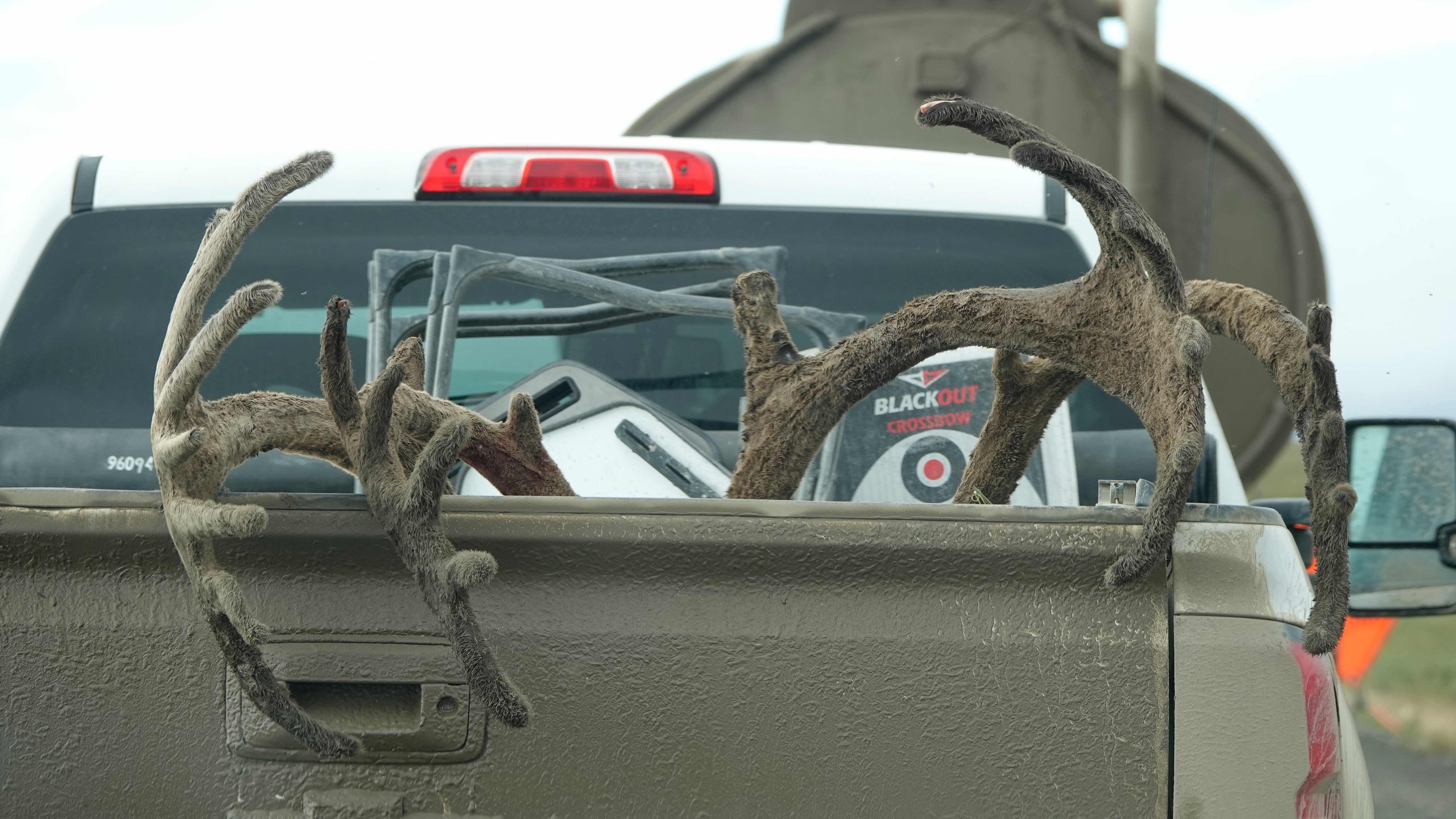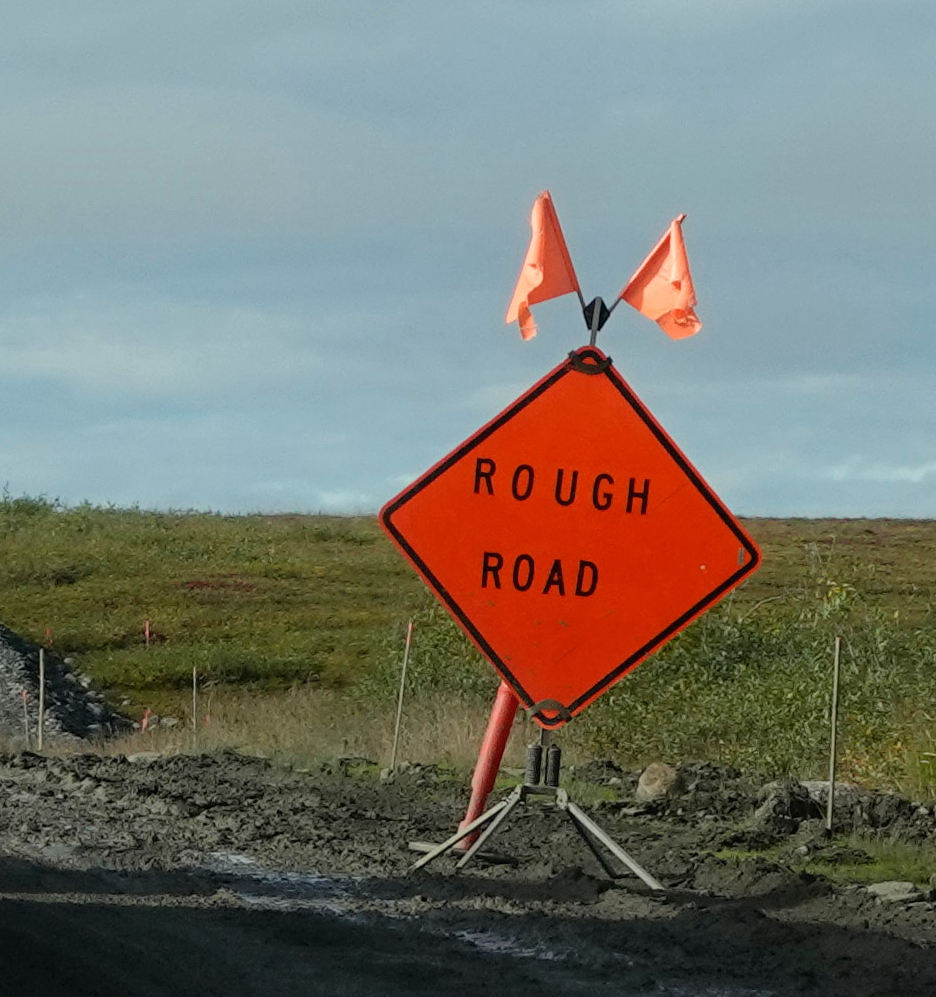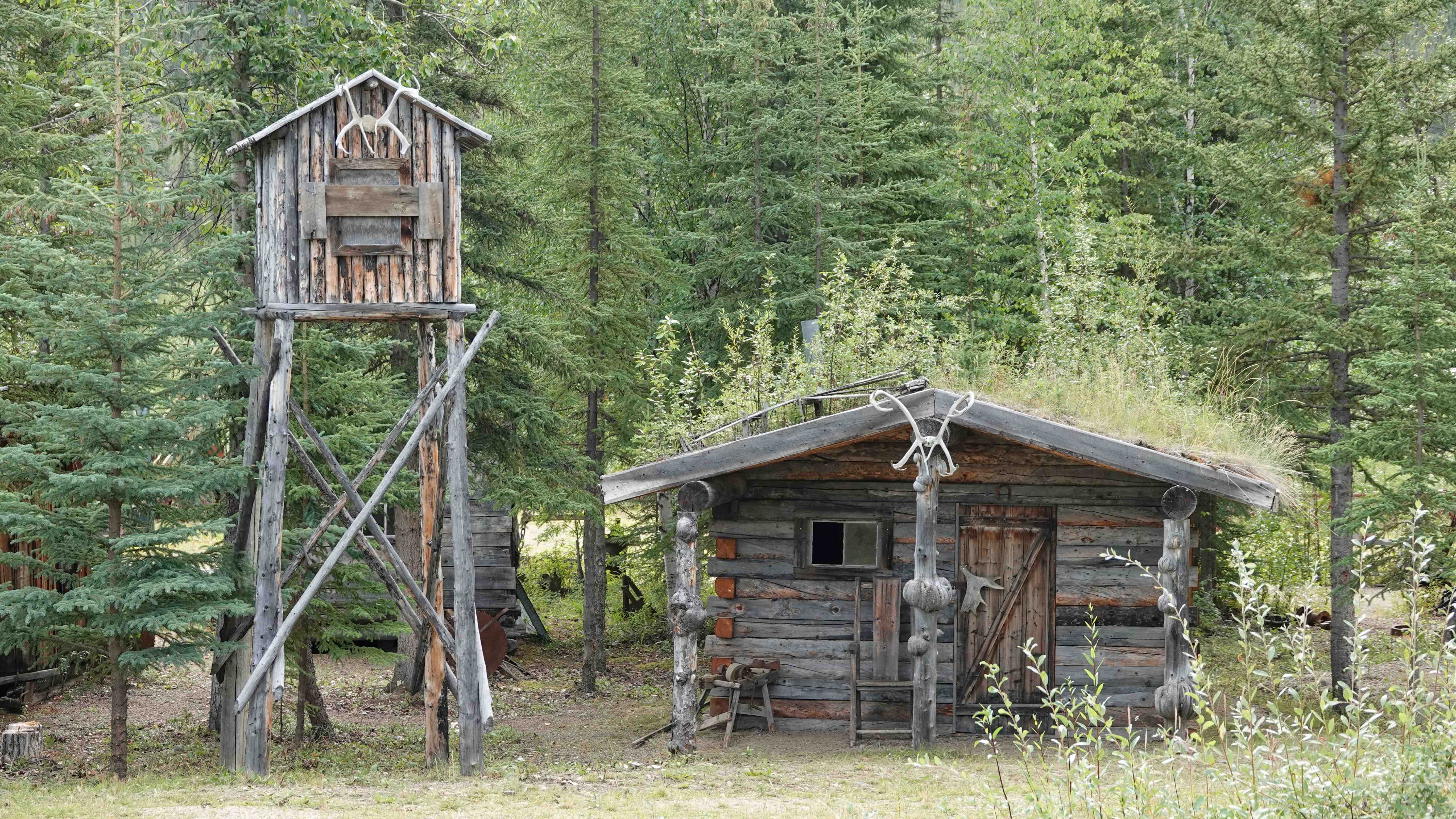 Die Baustelle ist auf dem Rückweg noch genau so lang und ätzend. Vor uns fährt ein Pickup mit Jägern, die offensichtlich gerade erfolgreich von der Karibu-Jagd zurückfahren. Die Karibus dürfen hier nur mit Pfeil und Bogen erlegt werden und wir können einen kurzen Blick auf das Hightech- Gerät erhaschen.