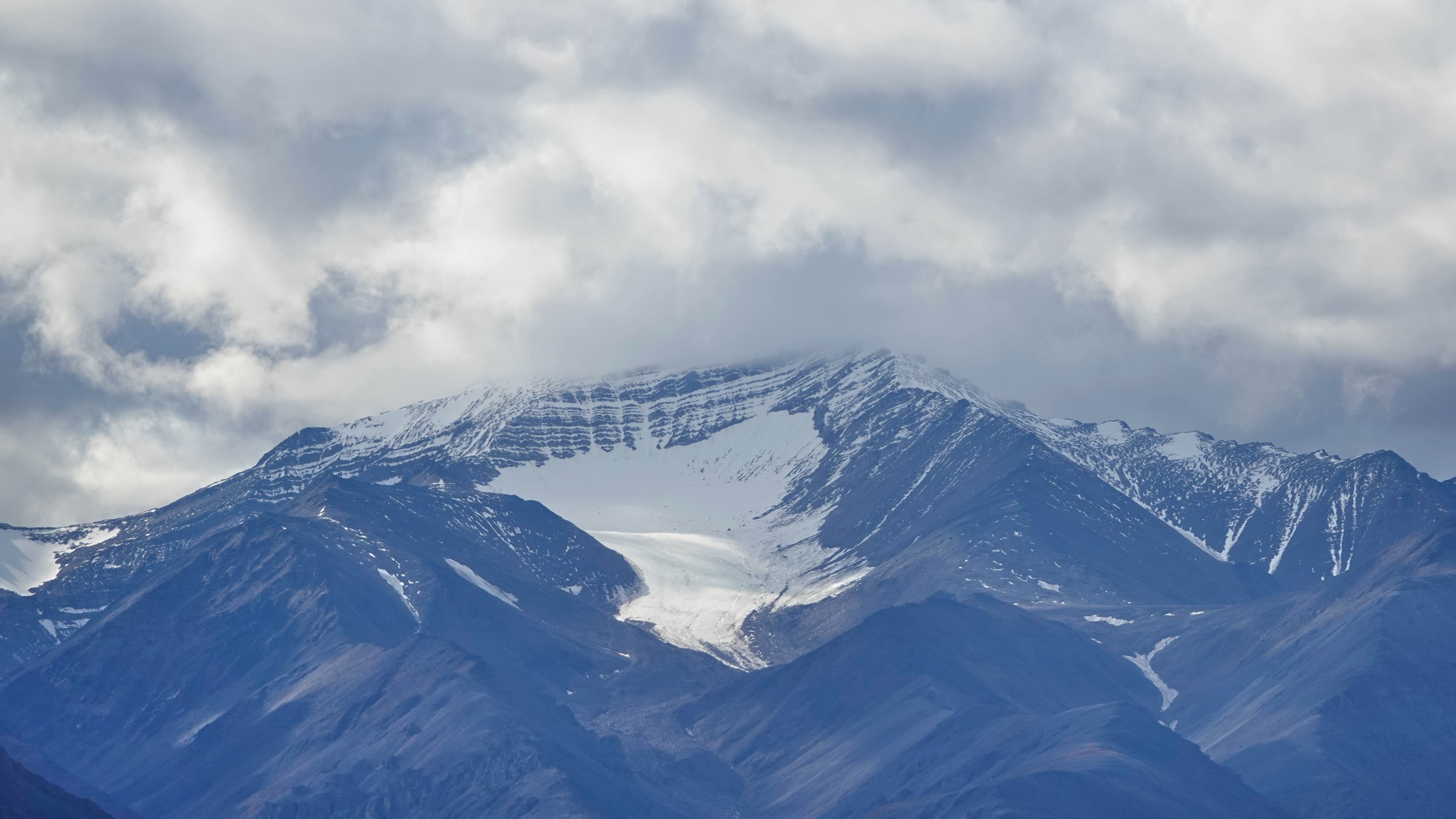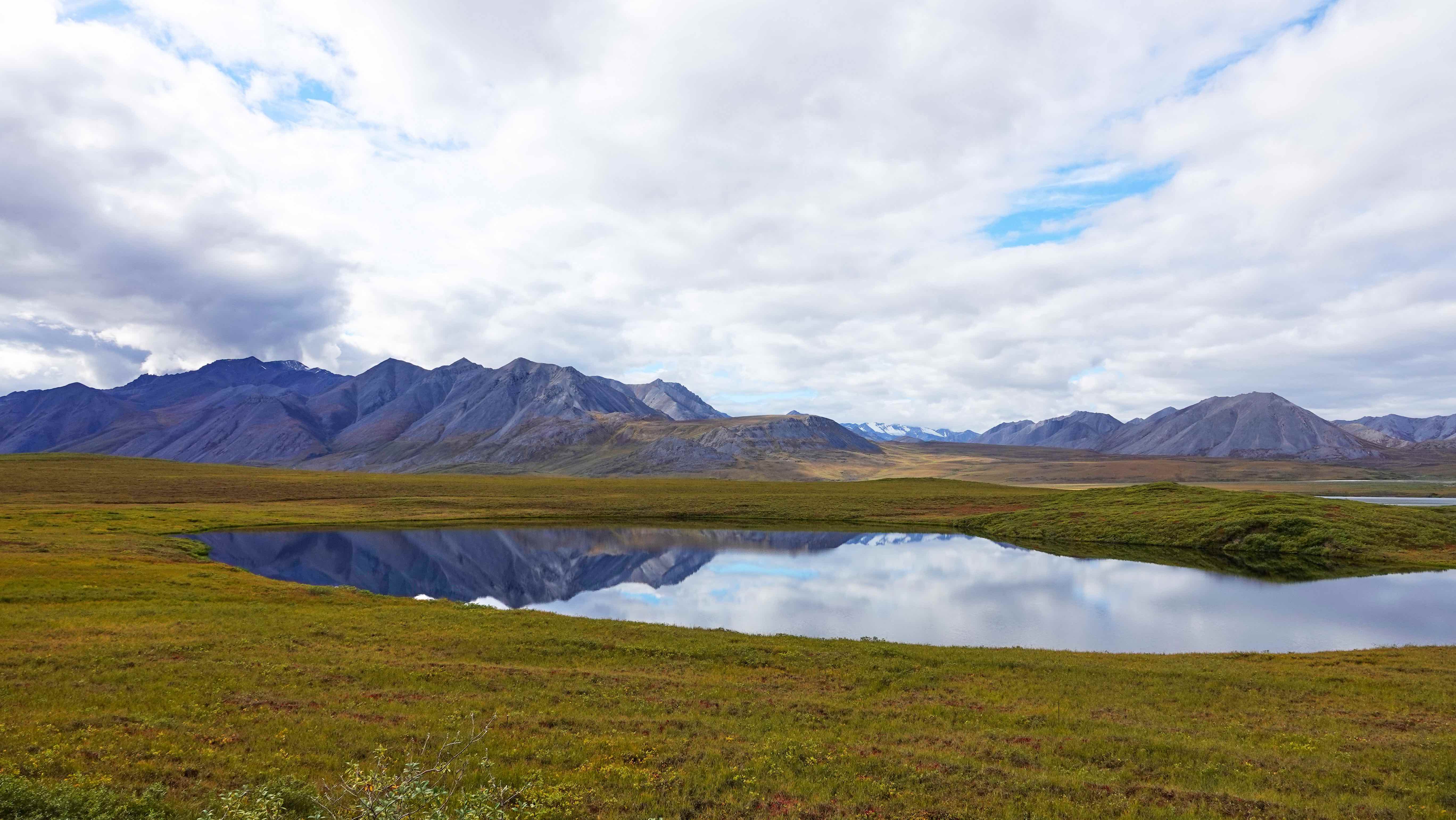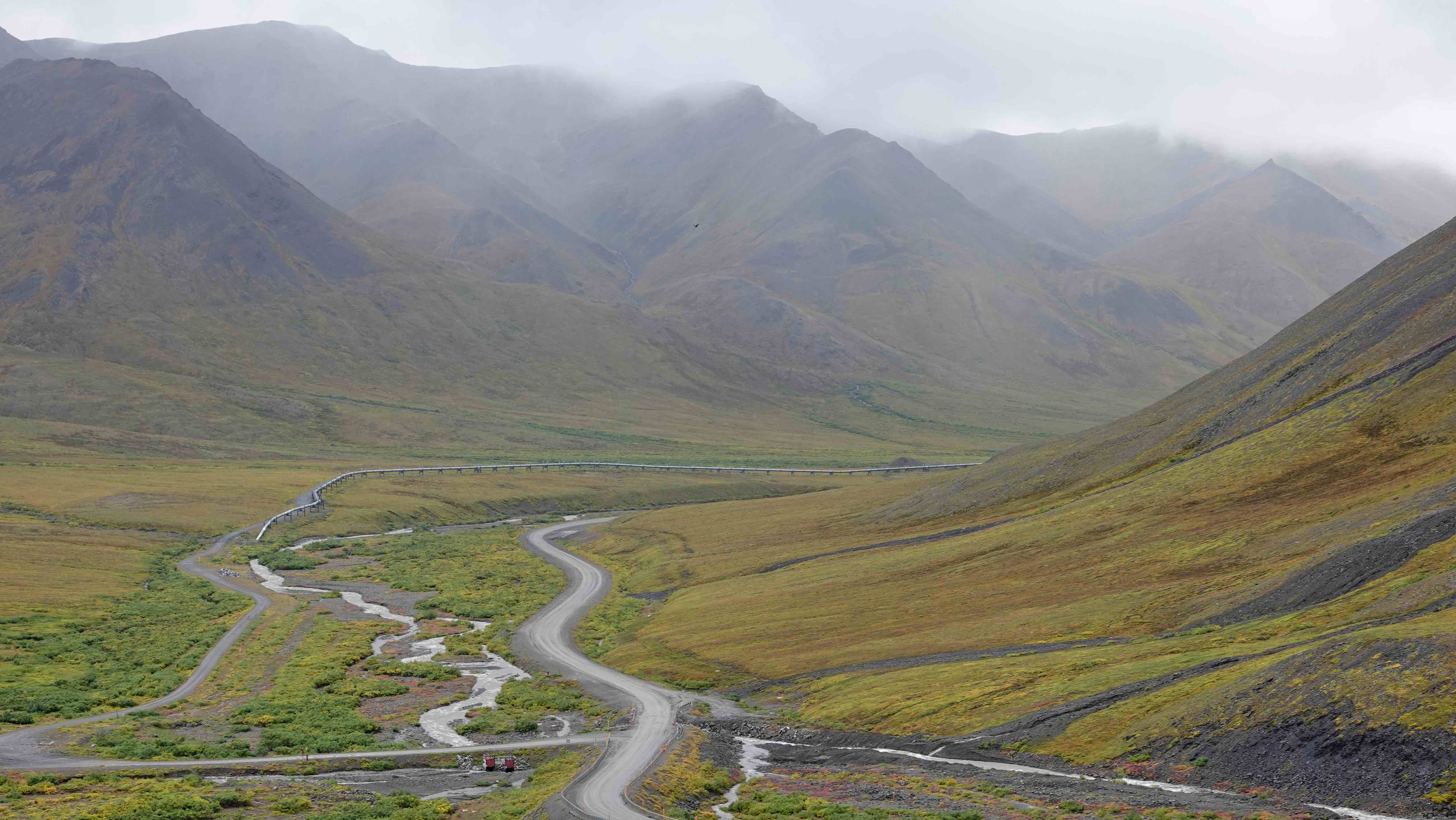Am beeindruckenden Sukakpak Mountain (1338 m) vorbei überqueren wir die Brooks Range auf dem Atigun Pass in 1.422 m Höhe. Hier ist die Wasserscheide zwischen Pazifik und Arktischem Ozean und die baumlose Tundra beginnt.