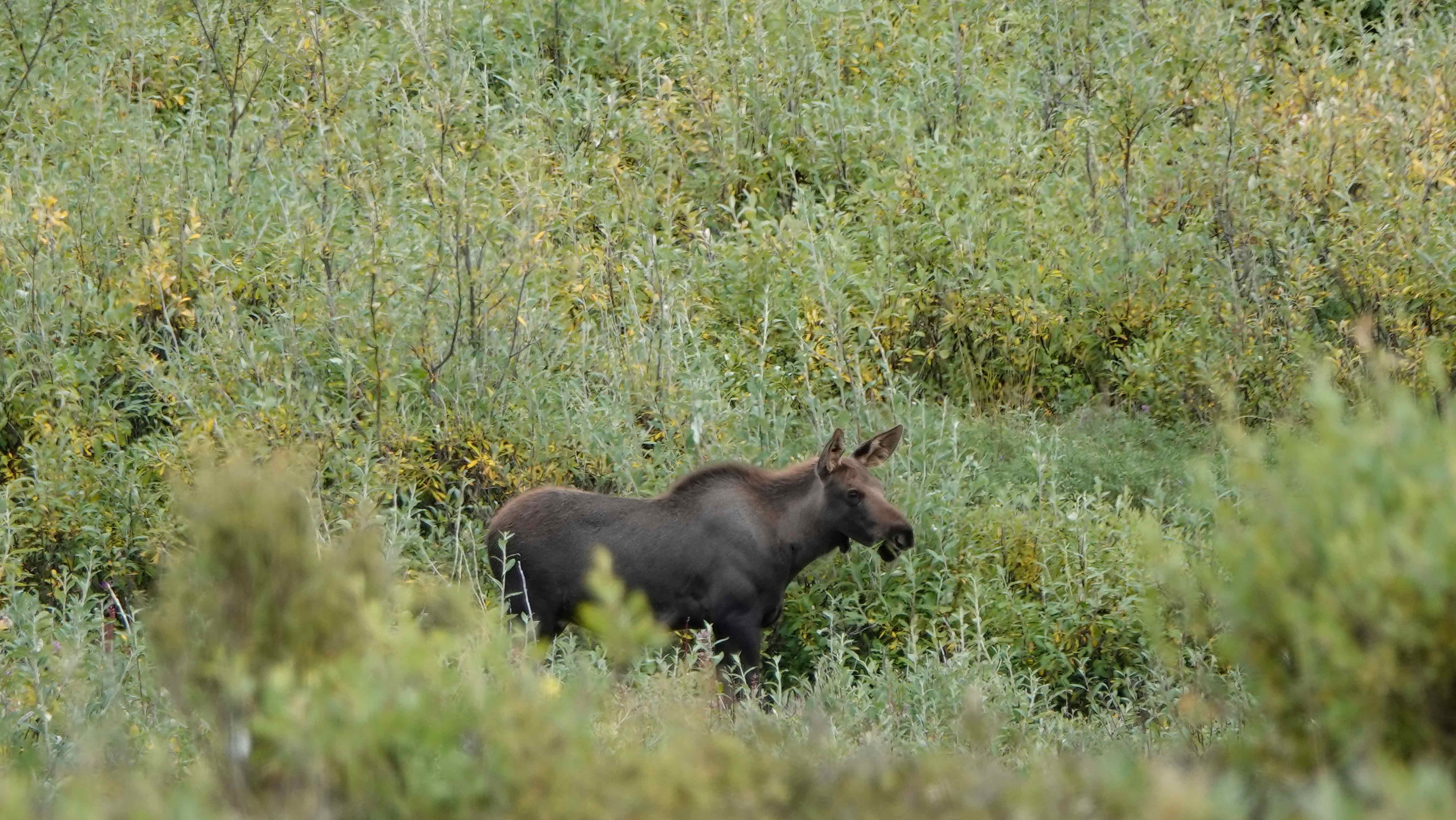 Ein Stück weiter begegnet uns mal wieder ein kleiner Elch – wir fragen uns, wo sich die alten Männer mit den imposanten Geweihen verstecken.