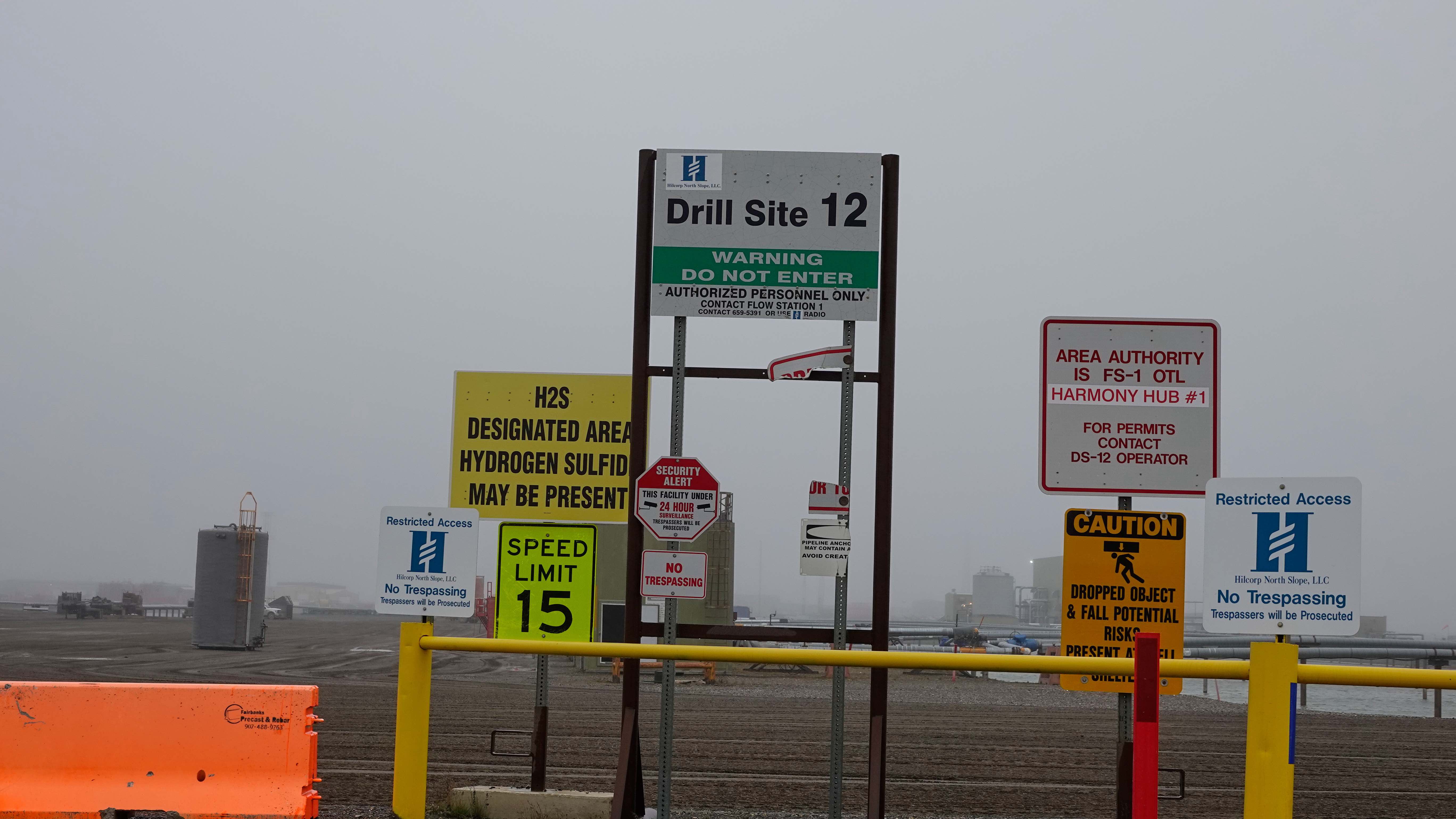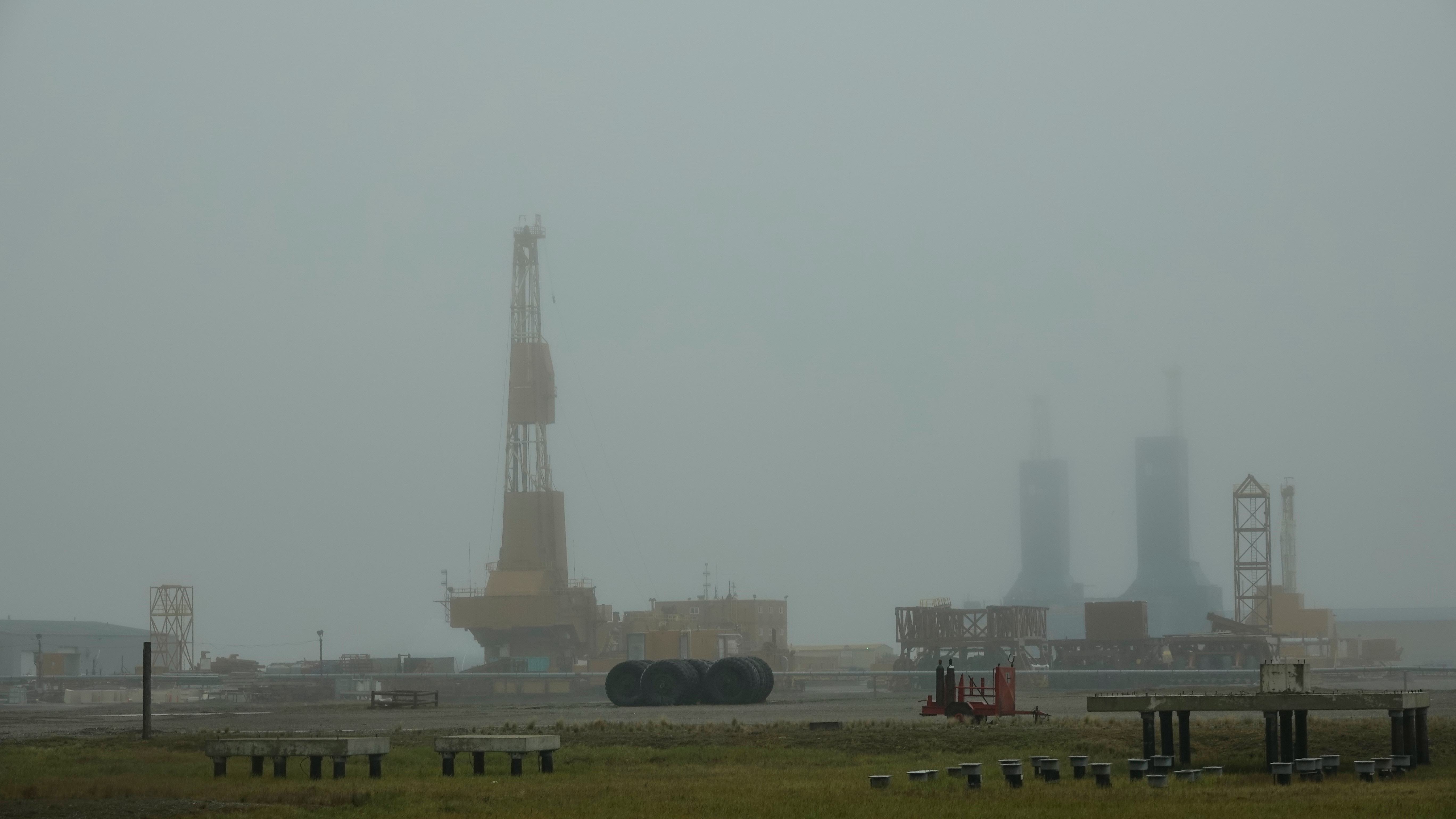 Die geführte Tour nach Prudhoe Bay lassen wir aus, die Stadt soll ähnlich hübsch wie Deadhorse sein und das Wetter verlockt auch nicht gerade zu einem Ausflug an den Arkischen Ozean, mit Blick auf die Fördertürme.