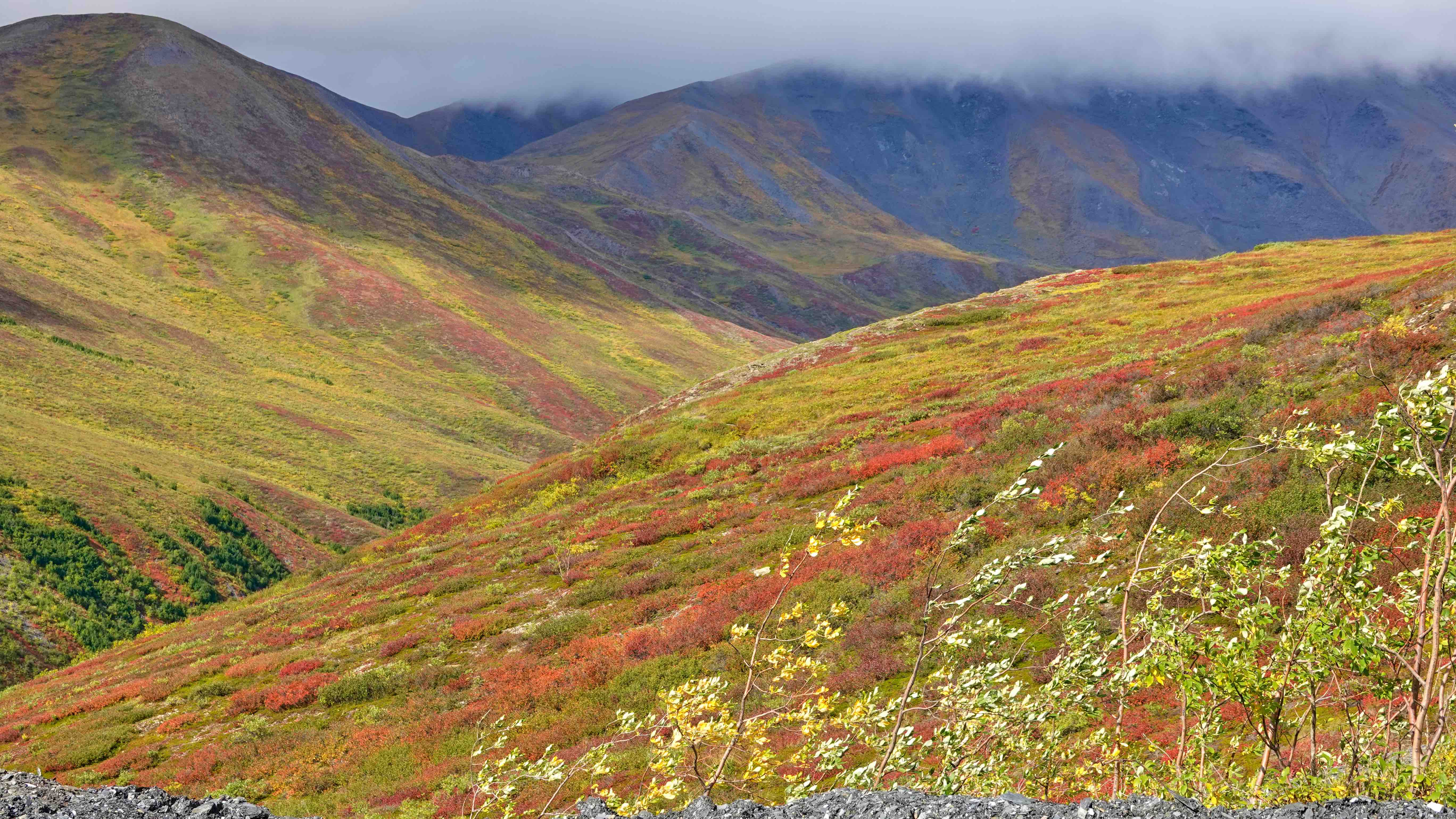 Die Tundra färbt sich allmählich rot und mit den gelben Spots dazwischen sieht es einfach bezaubernd aus!