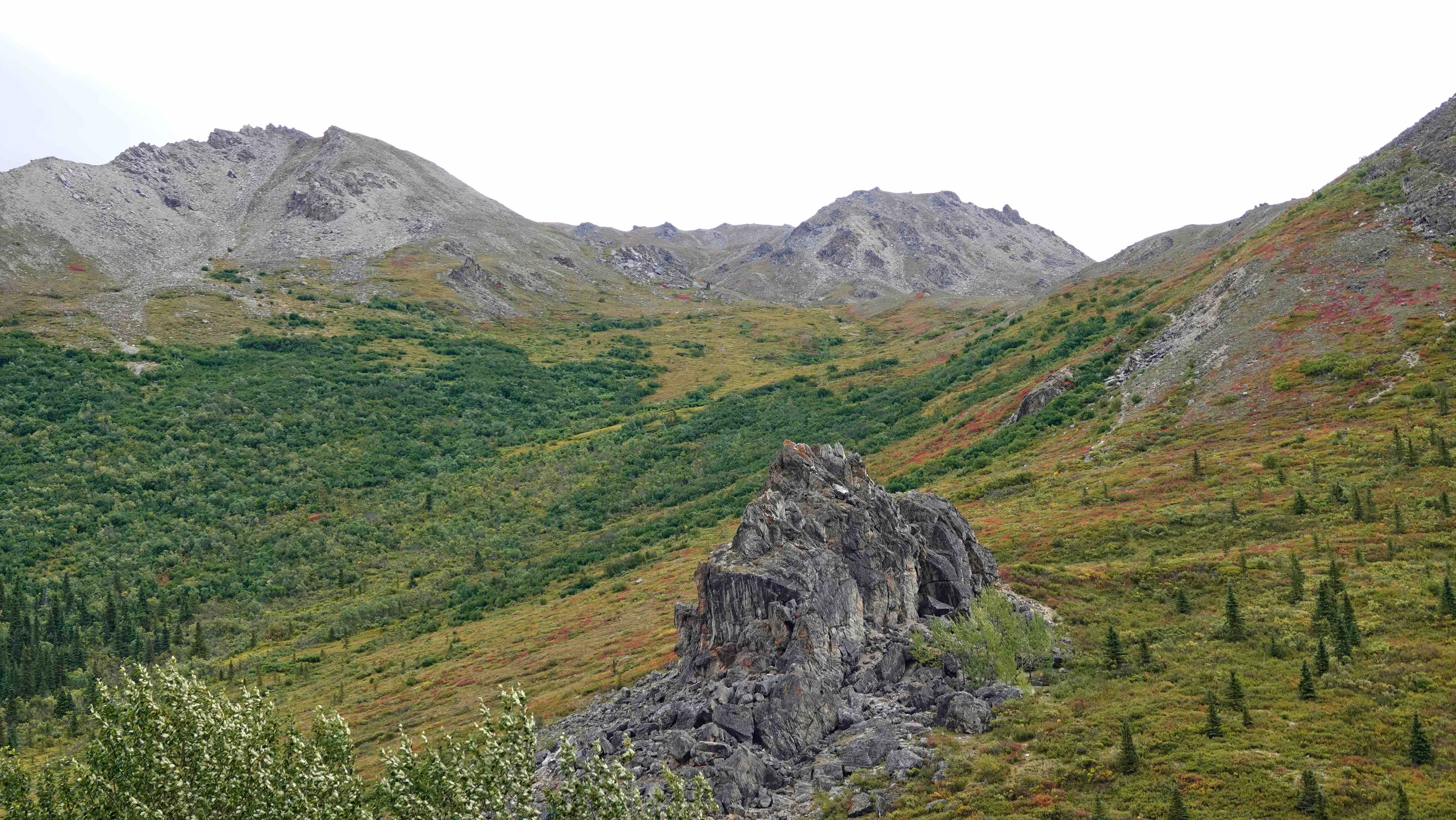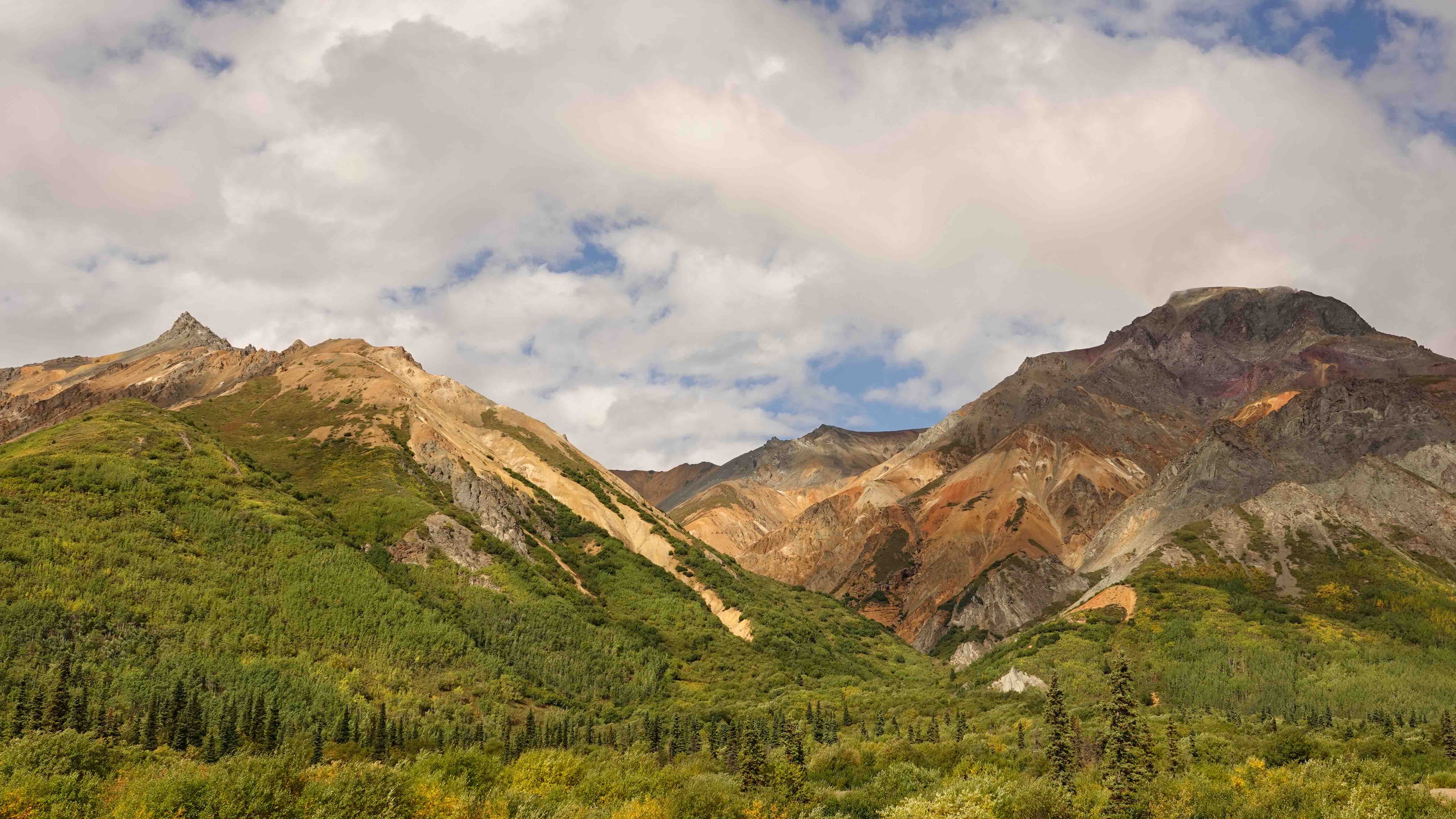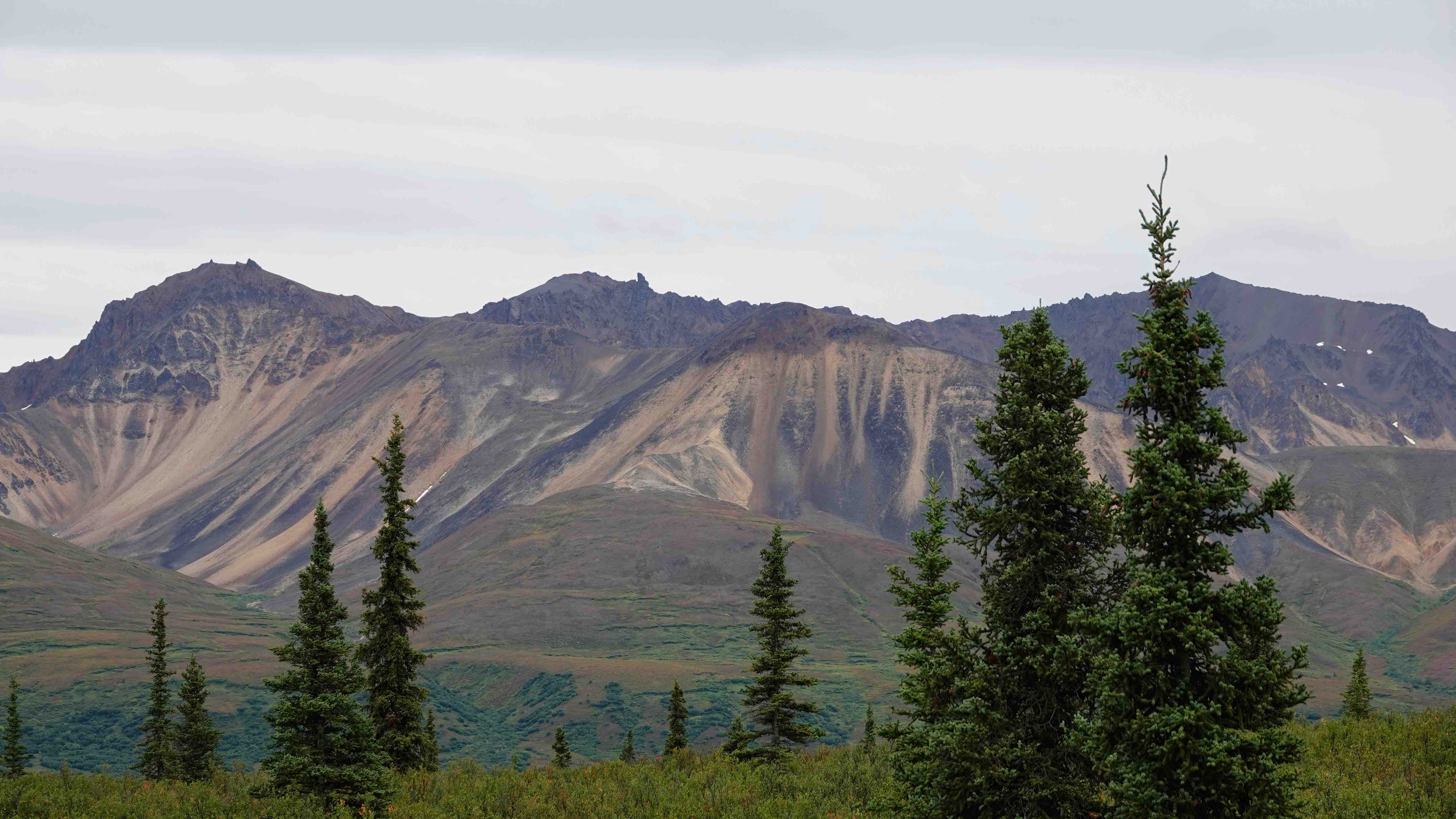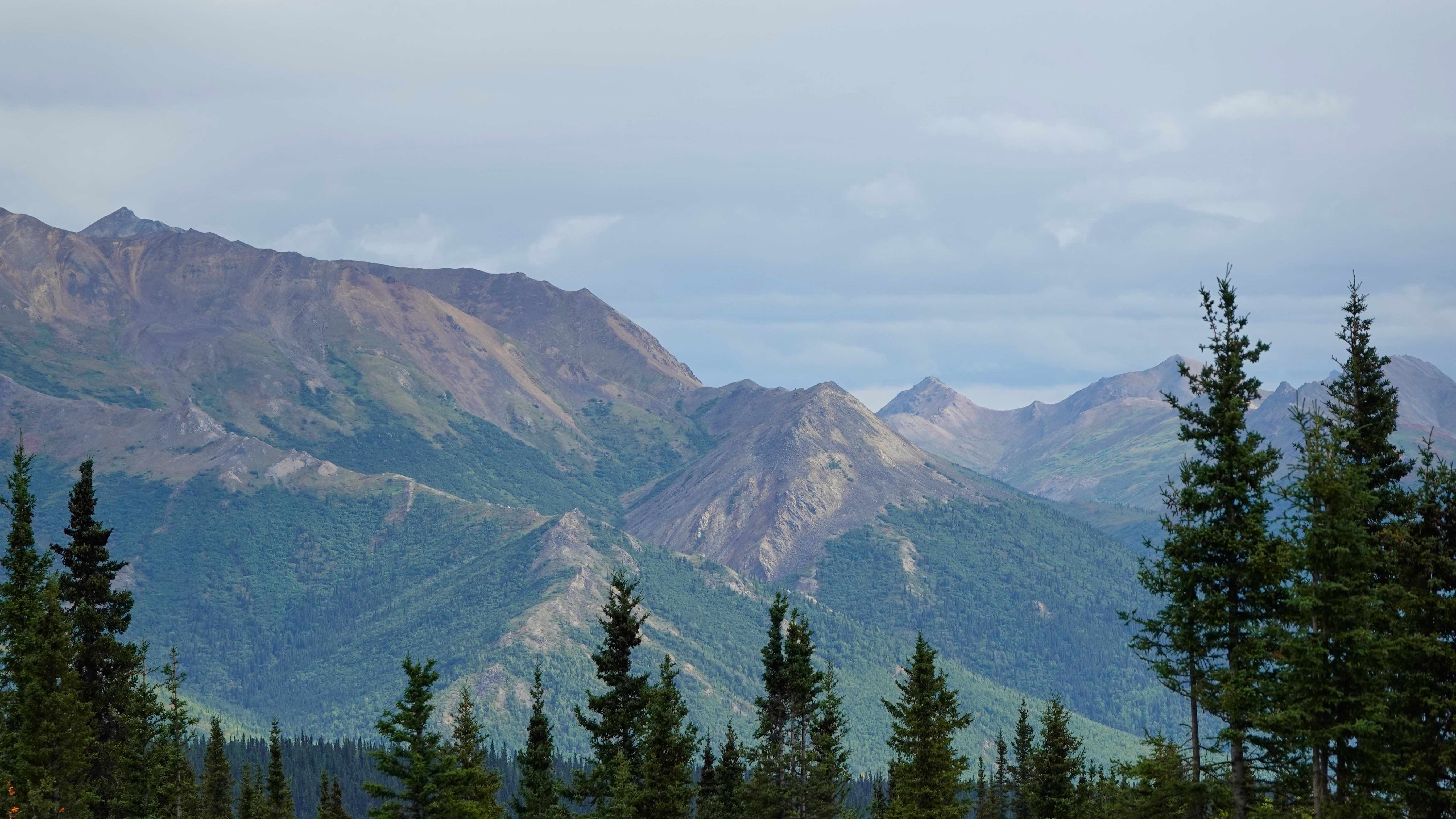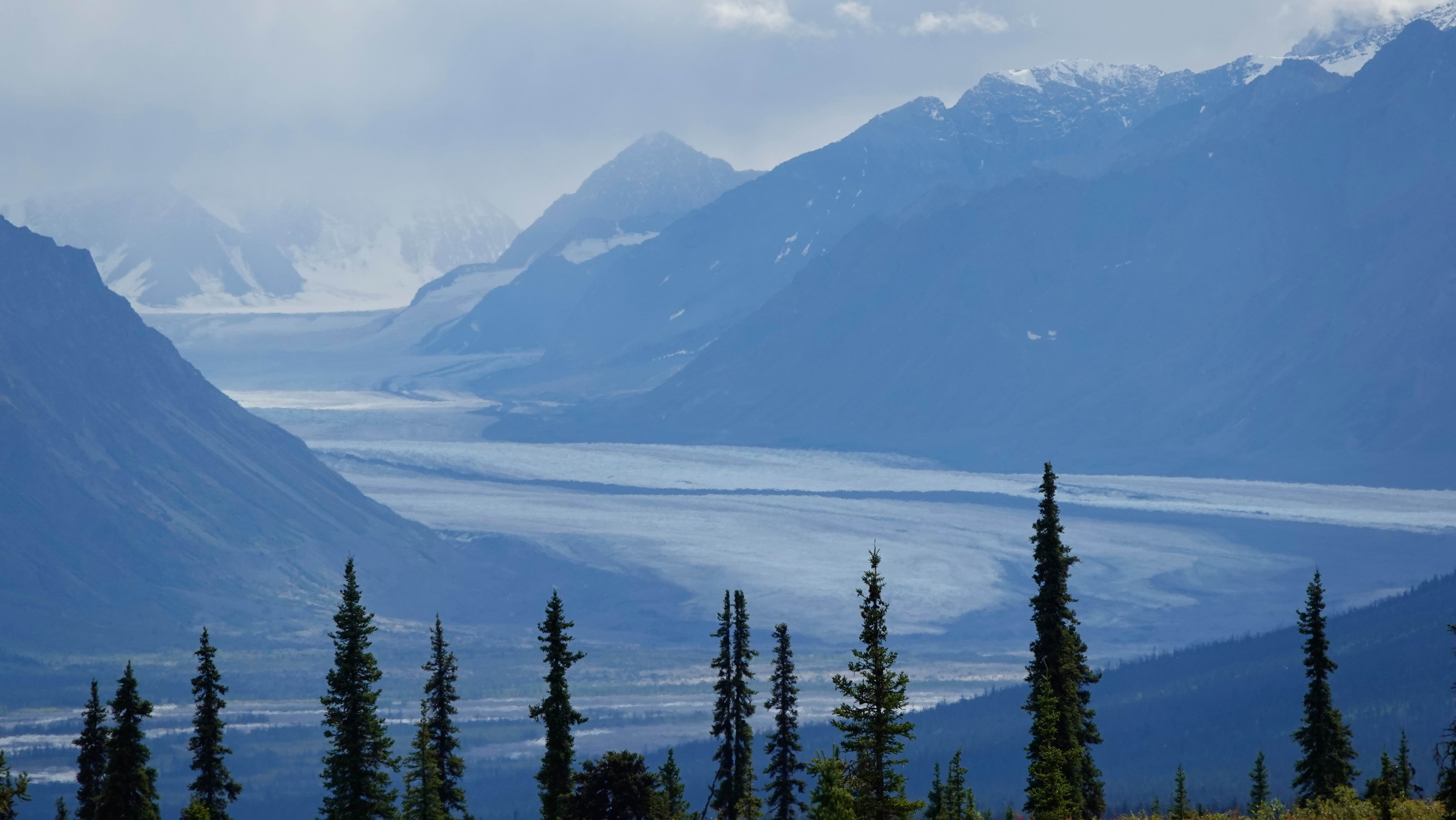 Auch auf unserer Fahrt weiter auf dem Denali Highway haben wir kein Glück mit einem Foto des Berges, dafür jede Menge Ausblicke auf andere schneebedeckte Berge der Alaska Range, bunte Berge, Gletscher und Vieles mehr…