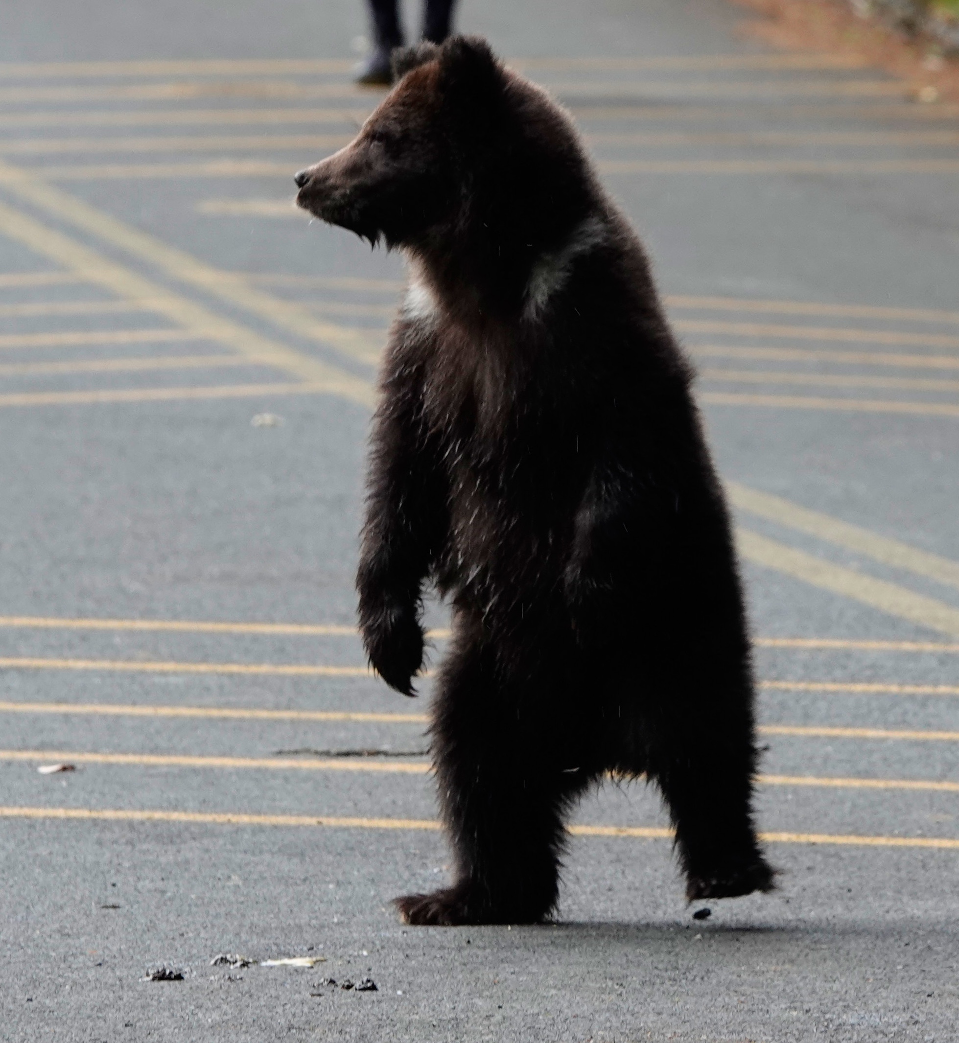 Wir können uns gar nicht satt sehen, aber irgendwann sind die Akkus meiner Kamera erschöpft und Nachschub muss her- die ist im Auto und es ist ein kniffliges Unterfangen den Hin-und Rückweg zu bewältigen, ohne den Bären direkt in den Weg zu laufen. Aber es ist nur eine Frage der Zeit und wir bleiben noch, bis es anfängt dämmerig zu werden und auch die meisten anderen Touristen den Platz verlassen.