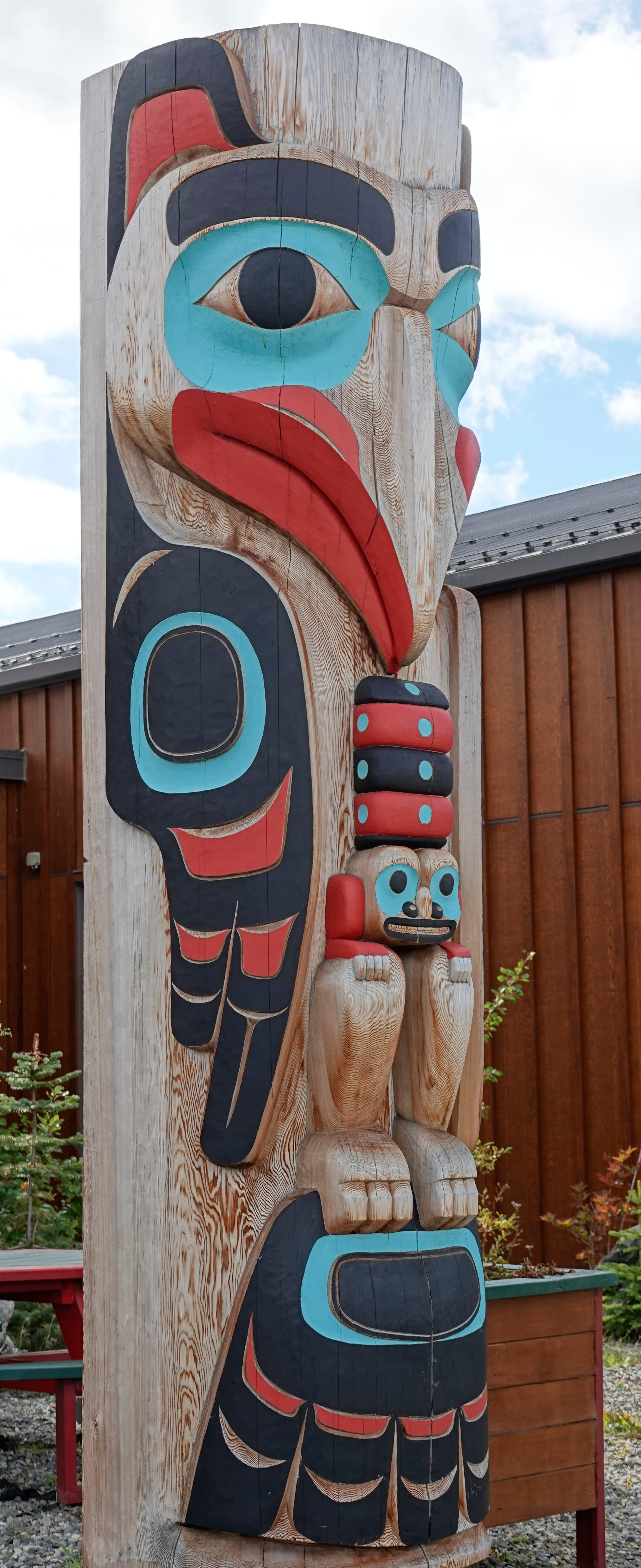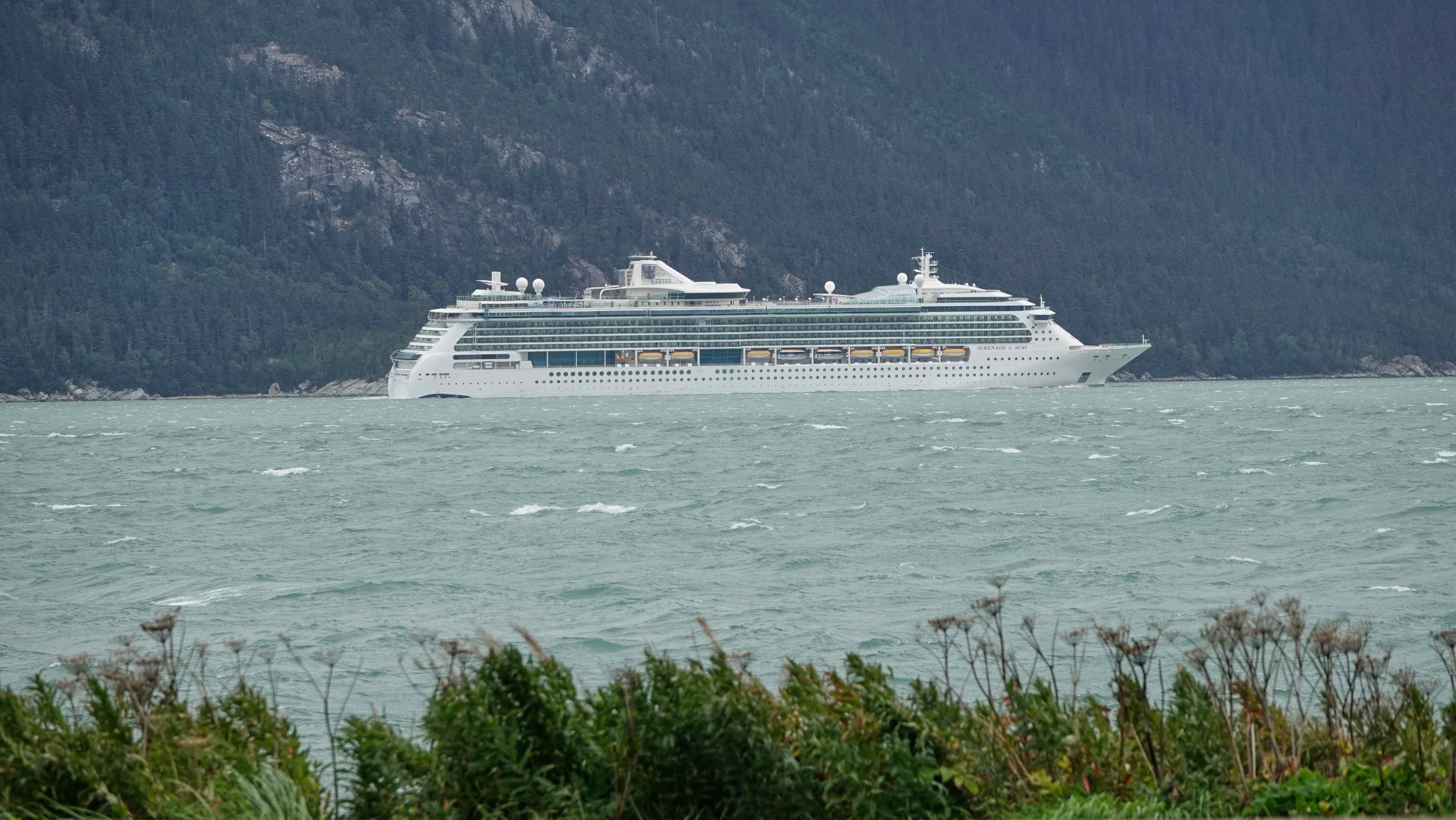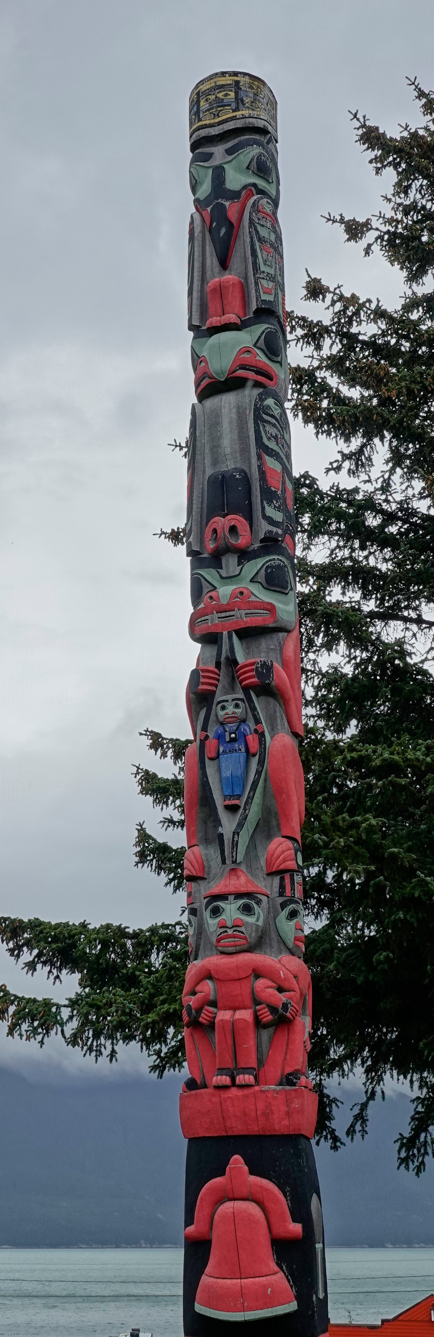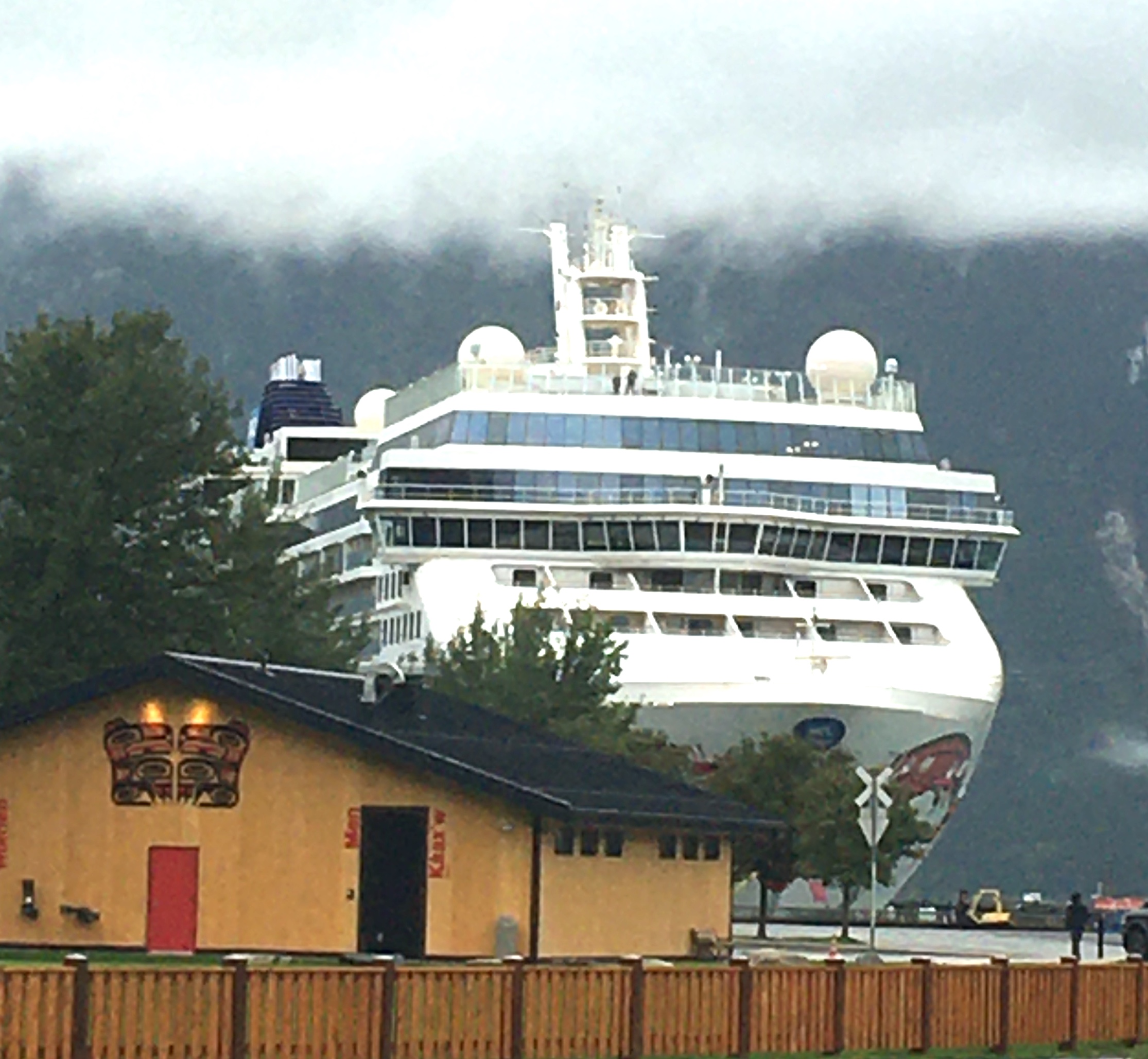 Als immer mehr Menschen ankommen, müssen wir den Beobachtungsposten aufgeben und fahren nach Haines, einen Stadtbummel machen. Abends fährt ein riesiges Kreuzfahrtschiff vorbei- ein gewöhnungsbedürftiger Anblick.