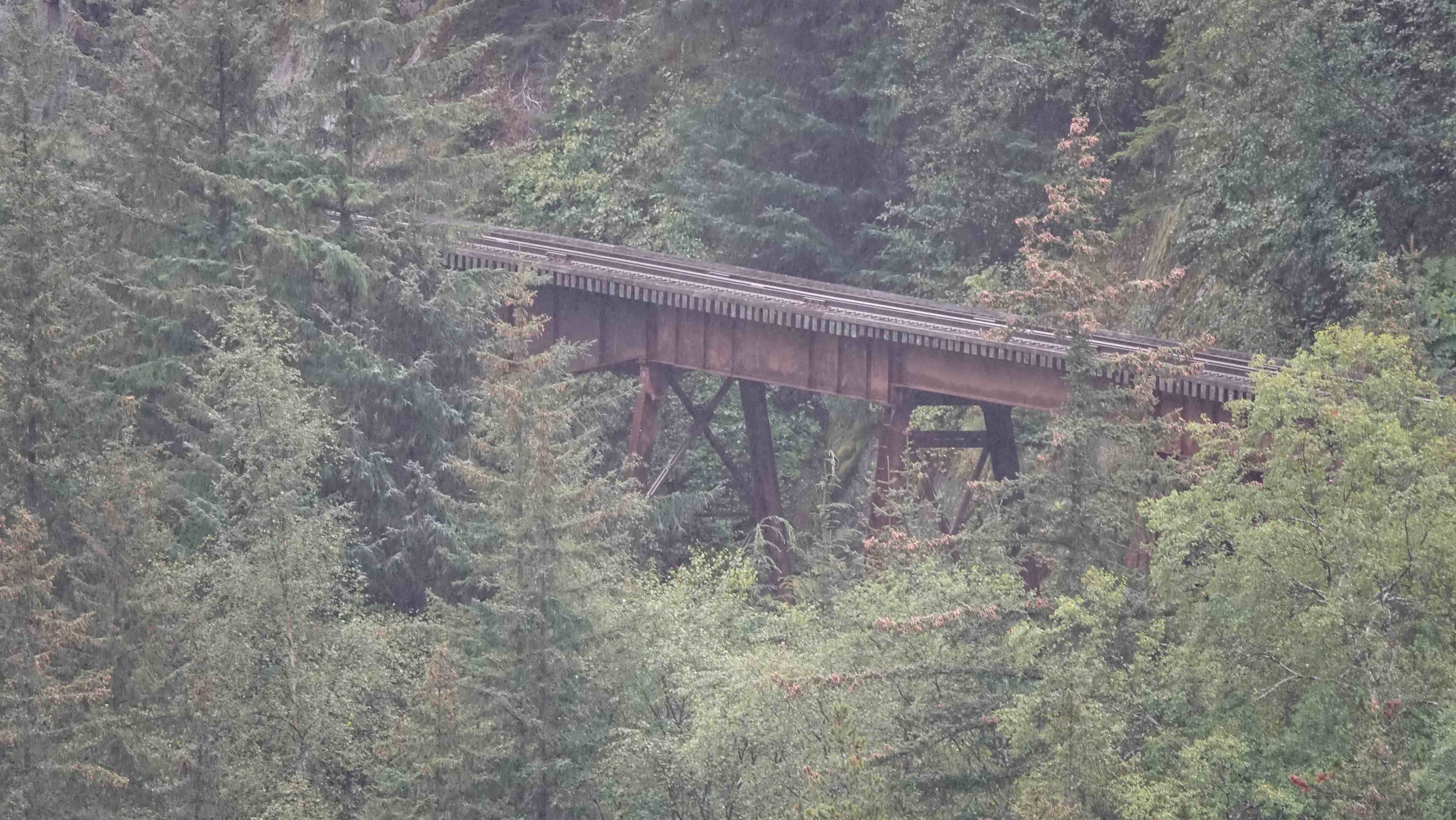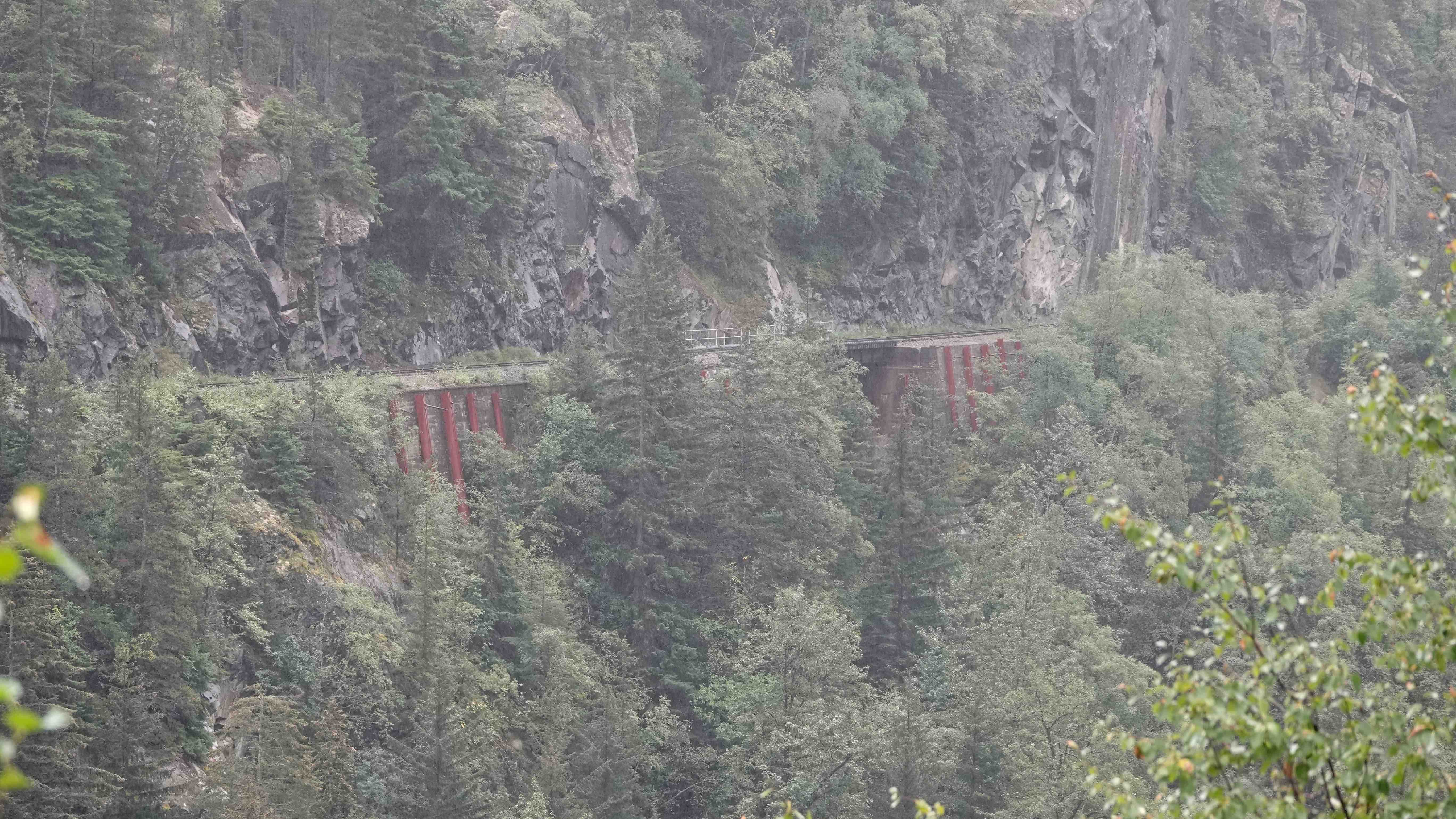 Sie windet sich entlang steiler Abgründe über den 873 Meter hohen Pass und bietet spektakuläre Ausblicke in dieselben. Es regnet immer noch und die Berge sind in den Wolken verschwunden. Wir verschieben die Tour auf den nächsten Besuch in Alaska, obwohl ich im Nachhinein vielleicht froh gewesen wäre, nicht allzu viel von den schwindelerregenden Passagen mitzubekommen.