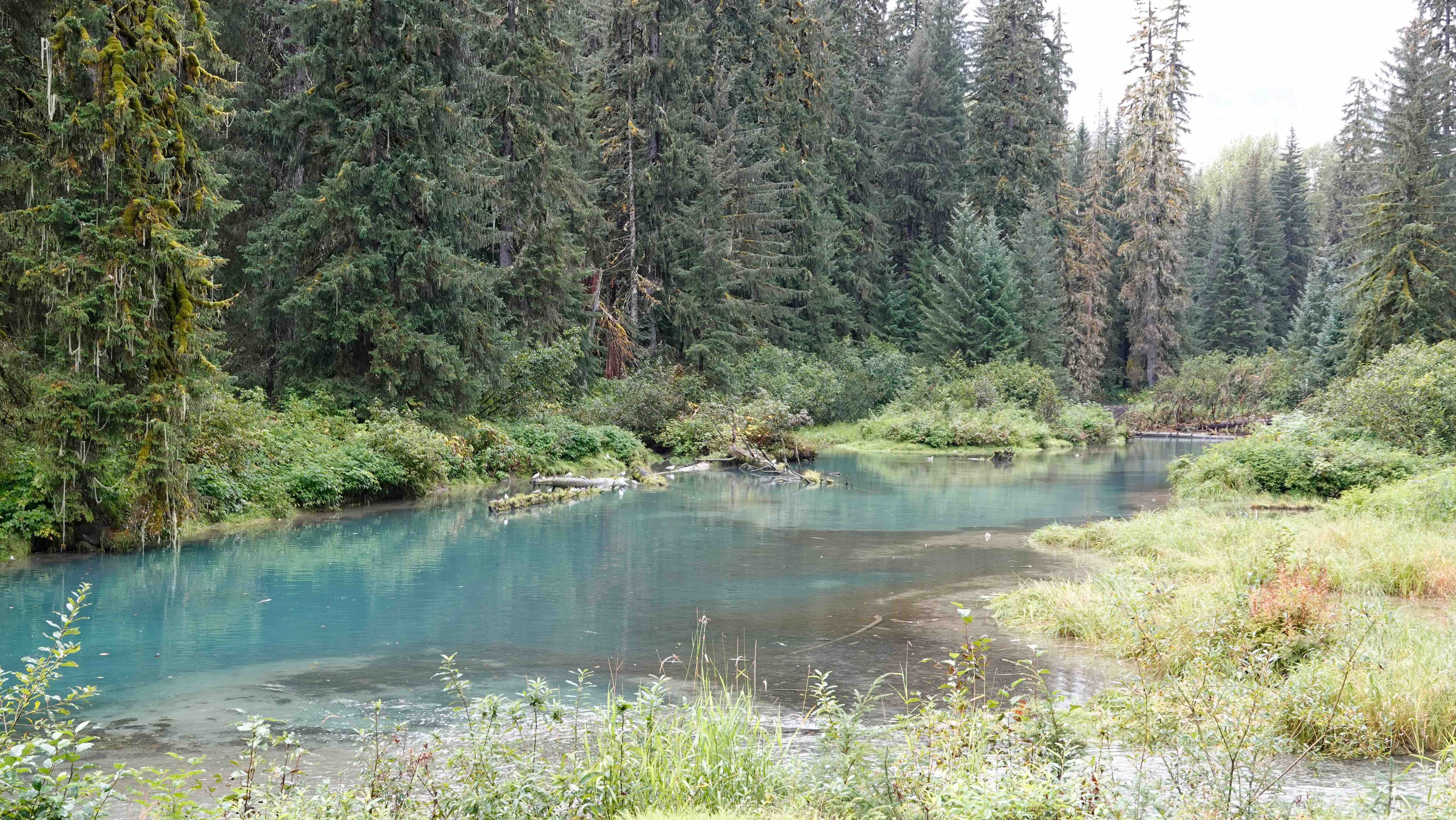Nach einer kurzen Nacht machen wir uns auf zur Bärenbeobachtung. Außerhalb von Valdez ist eine Plattform errichtet, von wo aus man die laichenden Lachse beobachten kann. Manchmal sollen sich auch Bären für eine Mahlzeit einfinden. Wir sehen „nur“ Lachse.