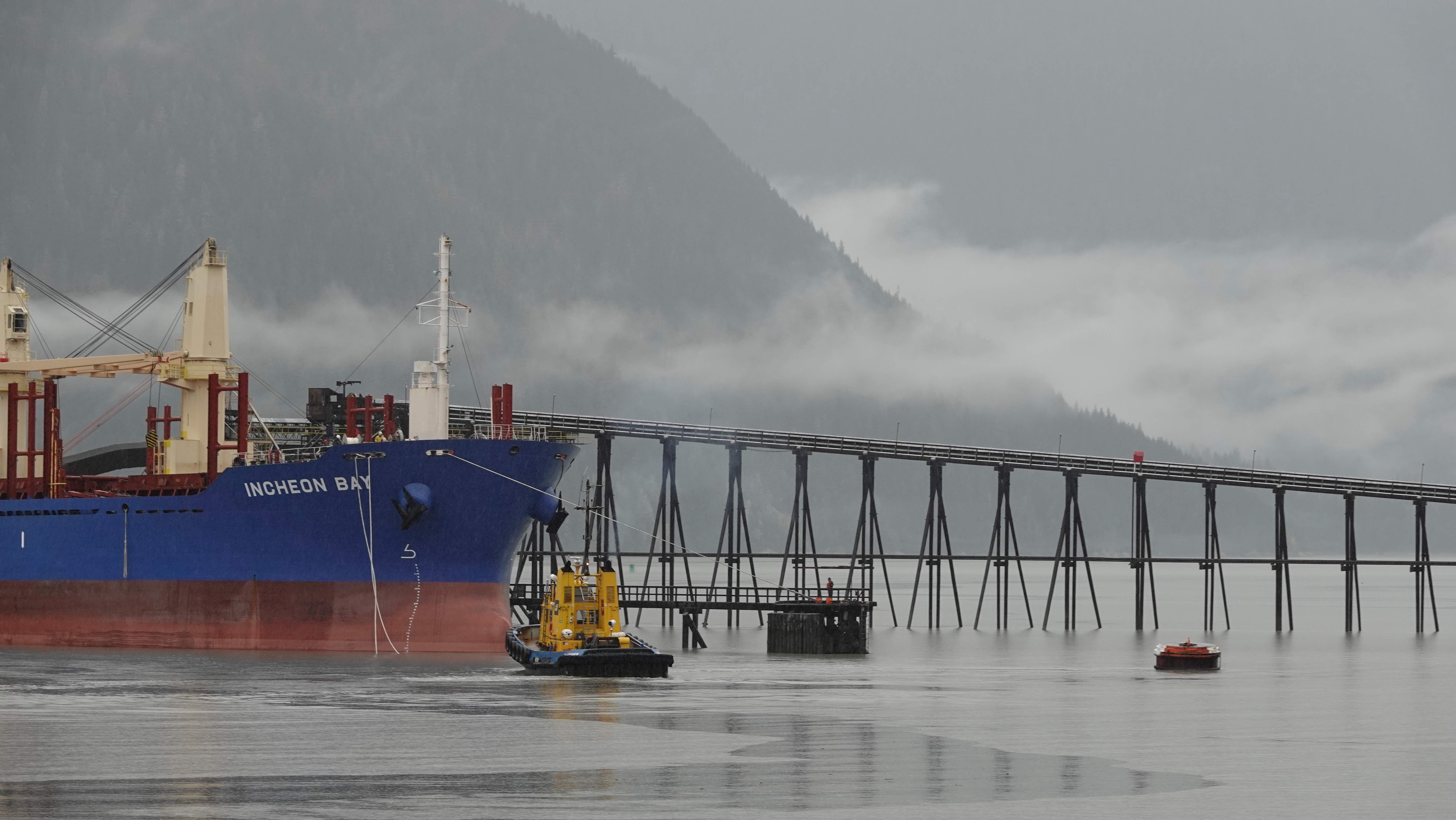 In Steward passieren wir die Grenze zum Nachbarort Haynes in Alaska. Es sieht aus wie eine Geisterstadt: Ziemlich viele verlassene und verfallende Häuser stehen im Ort. Im Hafen liegt erstaunlicherweise ein großes Schiff.