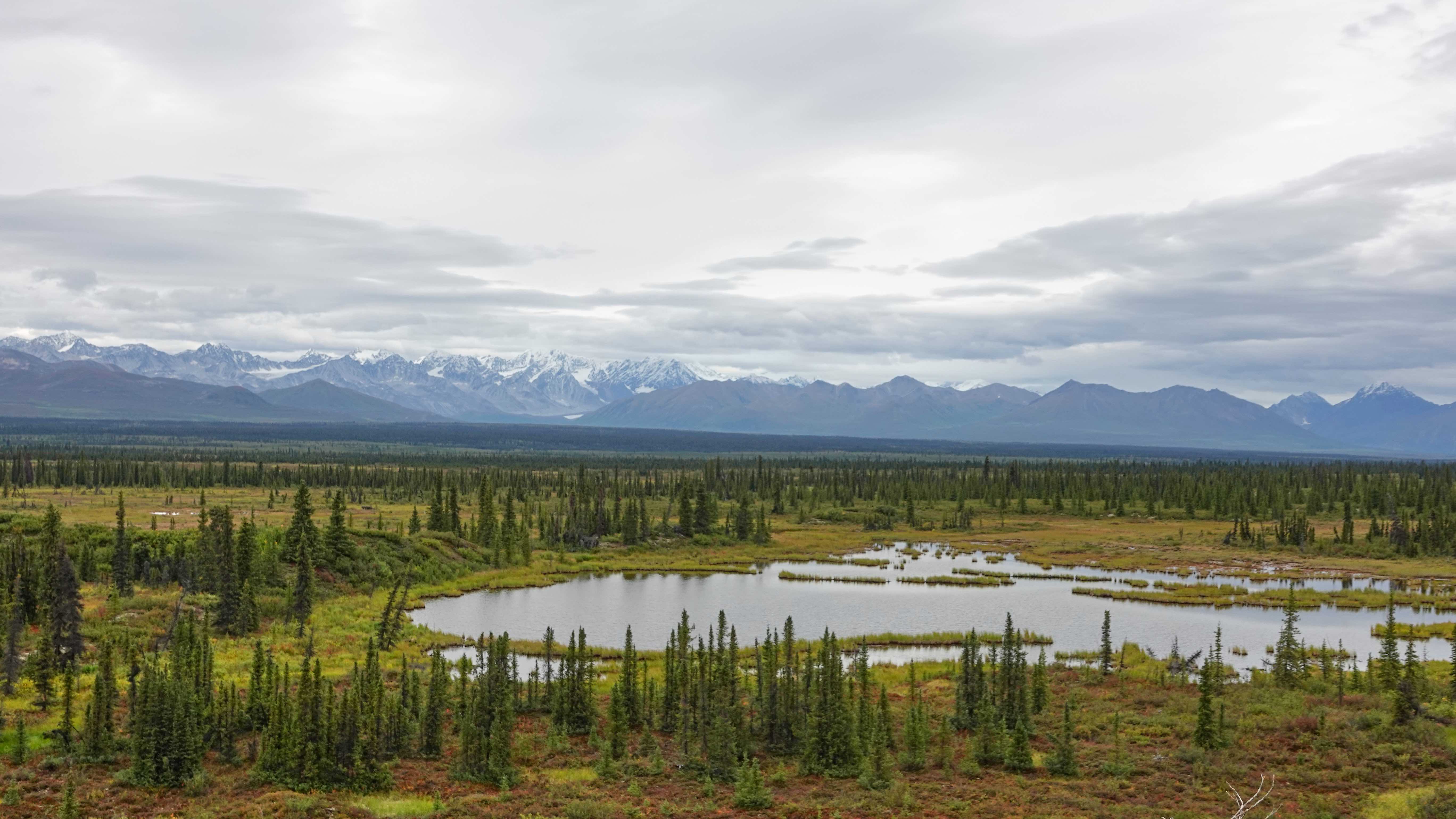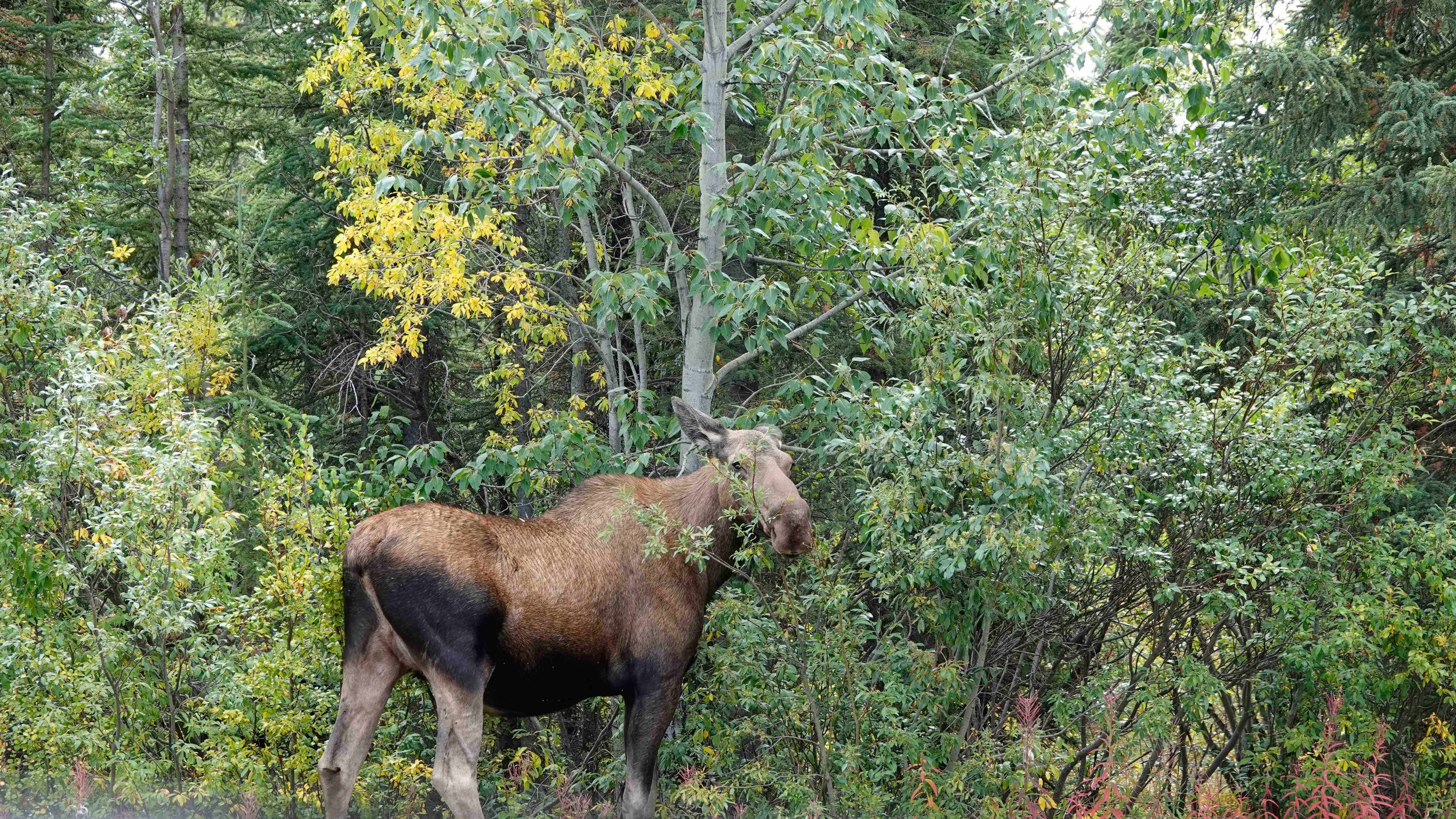 Unser nächstes Ziel ist der Denali Nationalpark. Auf der Zufahrt zum Parkeingang sind entlang der Straße viele Souvenirläden, Touranbieter und Hotels aufgereiht. In den Park kann man nur die ersten 25 Kilometer mit dem eigenen PKW fahren, für den Rest der Strecke (ca. 70 km) muss man eine Bustour buchen. Es gibt verschiedene Angebote vom einfachen Hop-on-Hop-off-Bus bis zu geführten Touren mit Guide. Wir besuchen das schön gestaltete und gut ausgestattete Informationszentrum und flüchten mal wieder vor den Besucherströmen und fahren das kurze Stück in den Nationalpark. Den Denali (früher Mt. Mac Kinley), Nordamerikas höchsten Berg (6190 m) kann man von hier aus nicht sehen, aber auch auf einer Tour weiter in den Park hinein wären wir nicht erfolgreicher, da sich „Der Große“, wie Denali übersetzt heißt, mal wieder in Wolken hüllt.