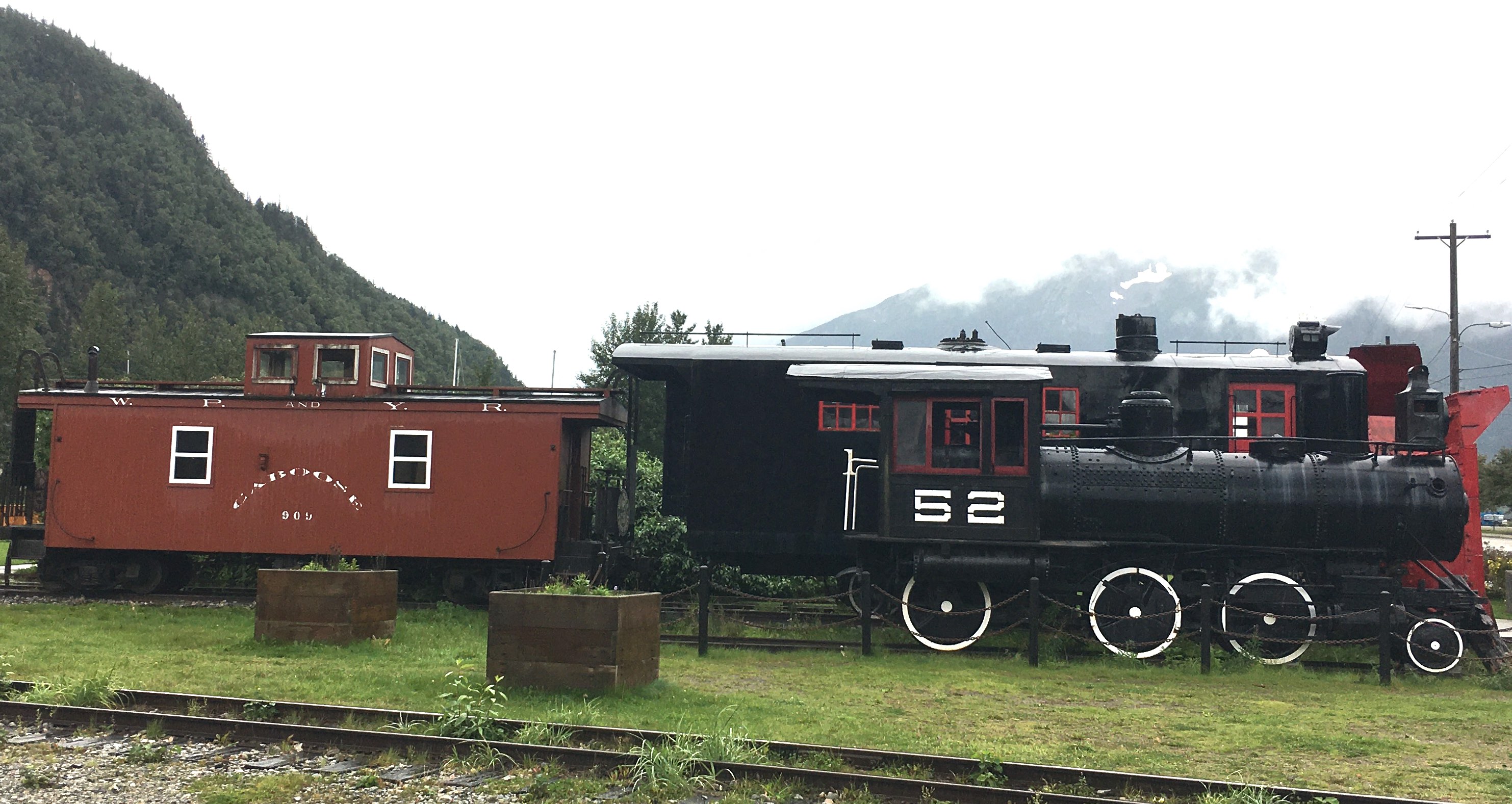 Von hier aus kann man mit der historischen Eisenbahn über den White Pass fahren, die Bahn folgt der ehemaligen Route der Goldsucher auf dem Weg zu den Klondike Goldfeldern.