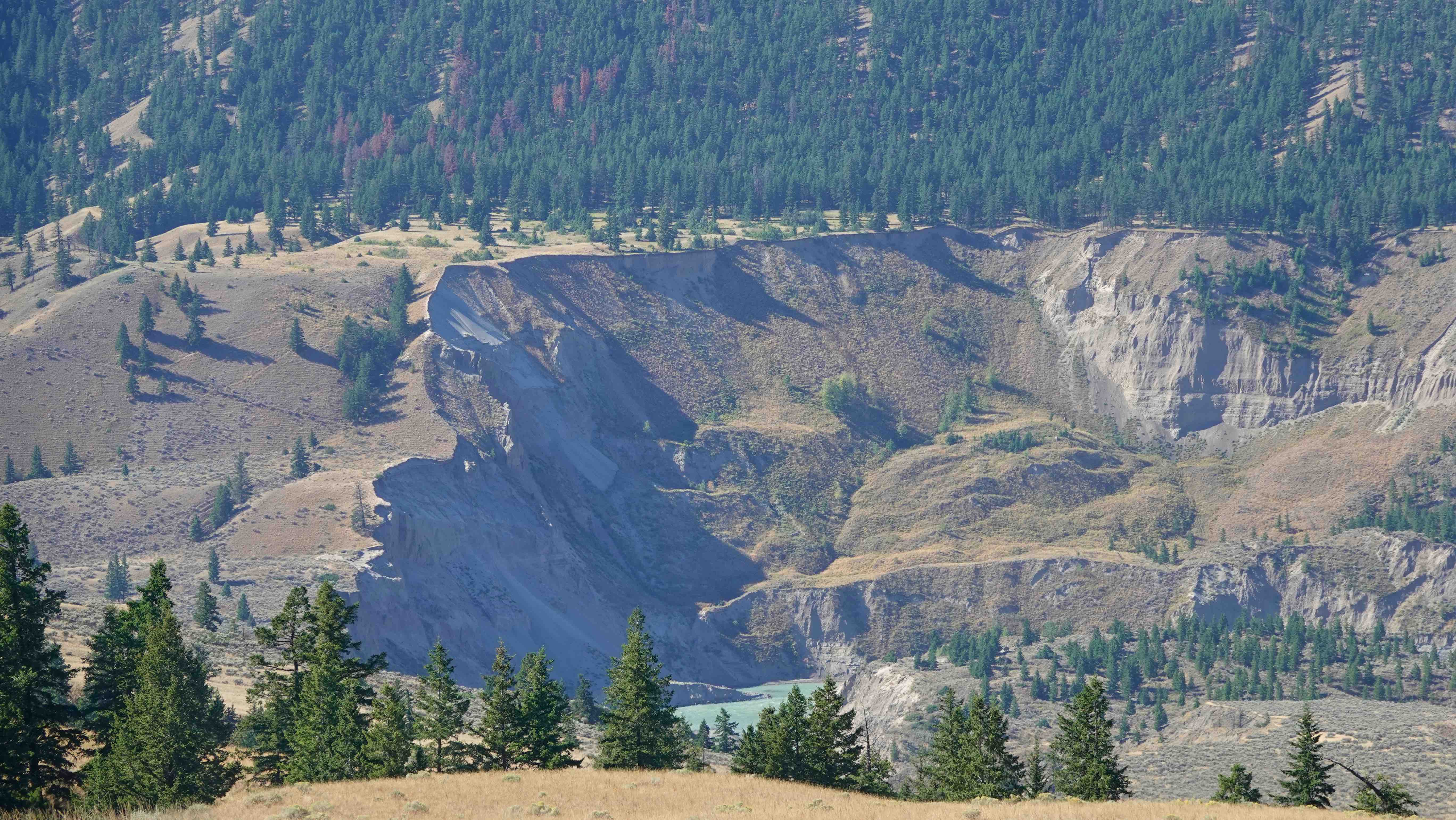 Hier biegen wir auf den Chilcotin Highway Richtung Bella Cola ab, wo sich unser letzter Hotspot zur Bärenbeobachtung befindet. Ein kleiner Umweg abseits der Hauptstraße führt uns durch den Farewell Canyon. Der Chilcotin River hat sich durch den Berg gefräst und entlang der Schlucht Sandsteinformationen (Hoodoos) ausgebildet.