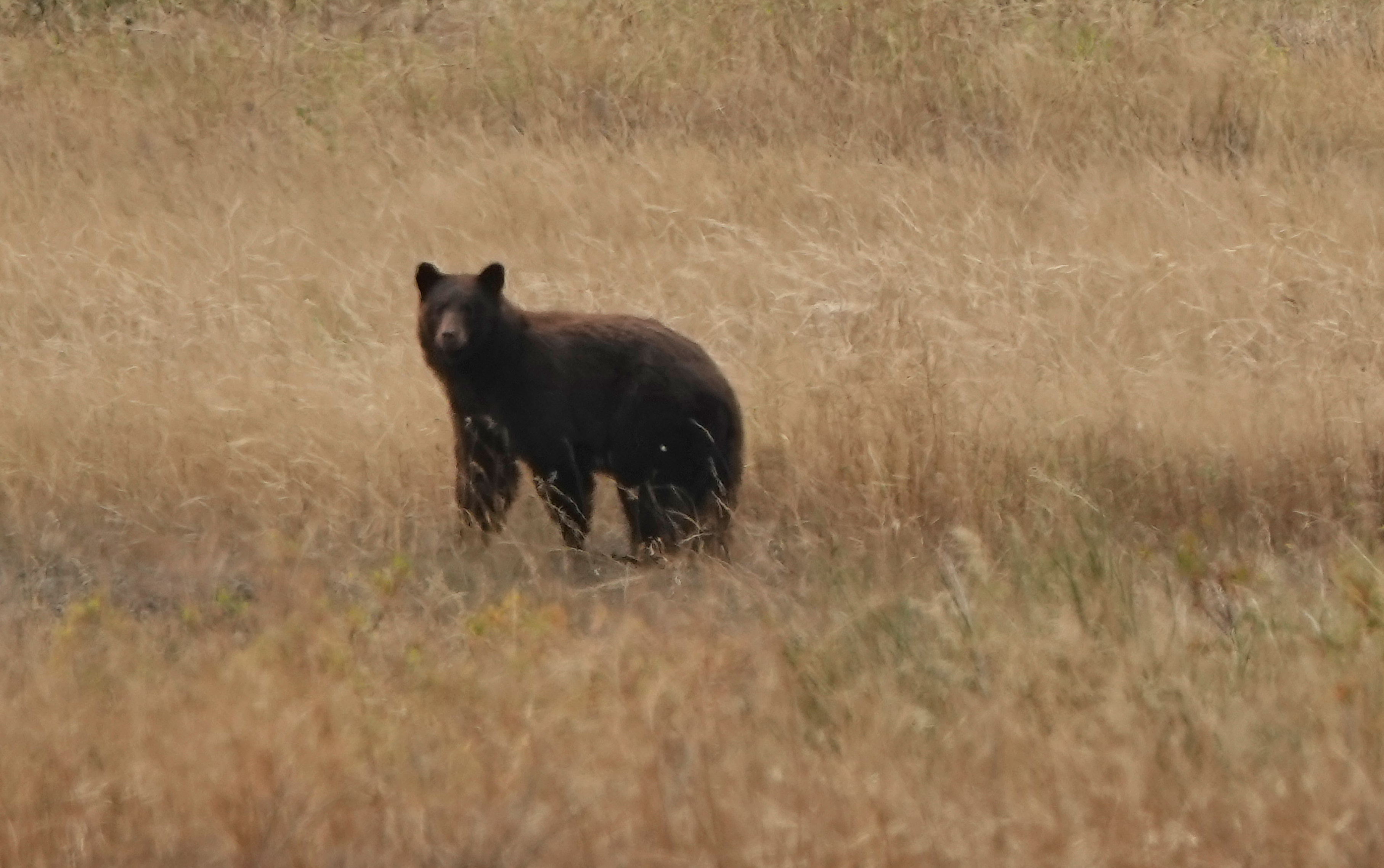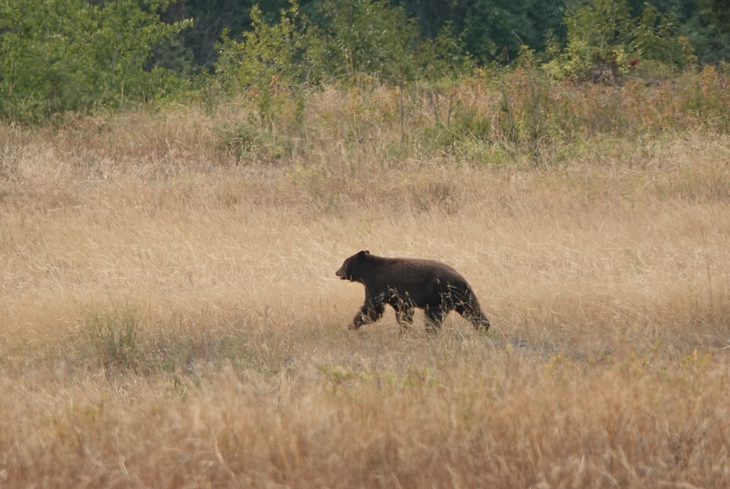 Unterwegs läuft tatsächlich nochmal ein Bär über die Straße und wir können ihn noch eine Weile gut beobachten, wie er über das offene Gelände durchs trockene Gras läuft. Ein krönender Abschluss auf unserer Bärenbeobachtungstour!