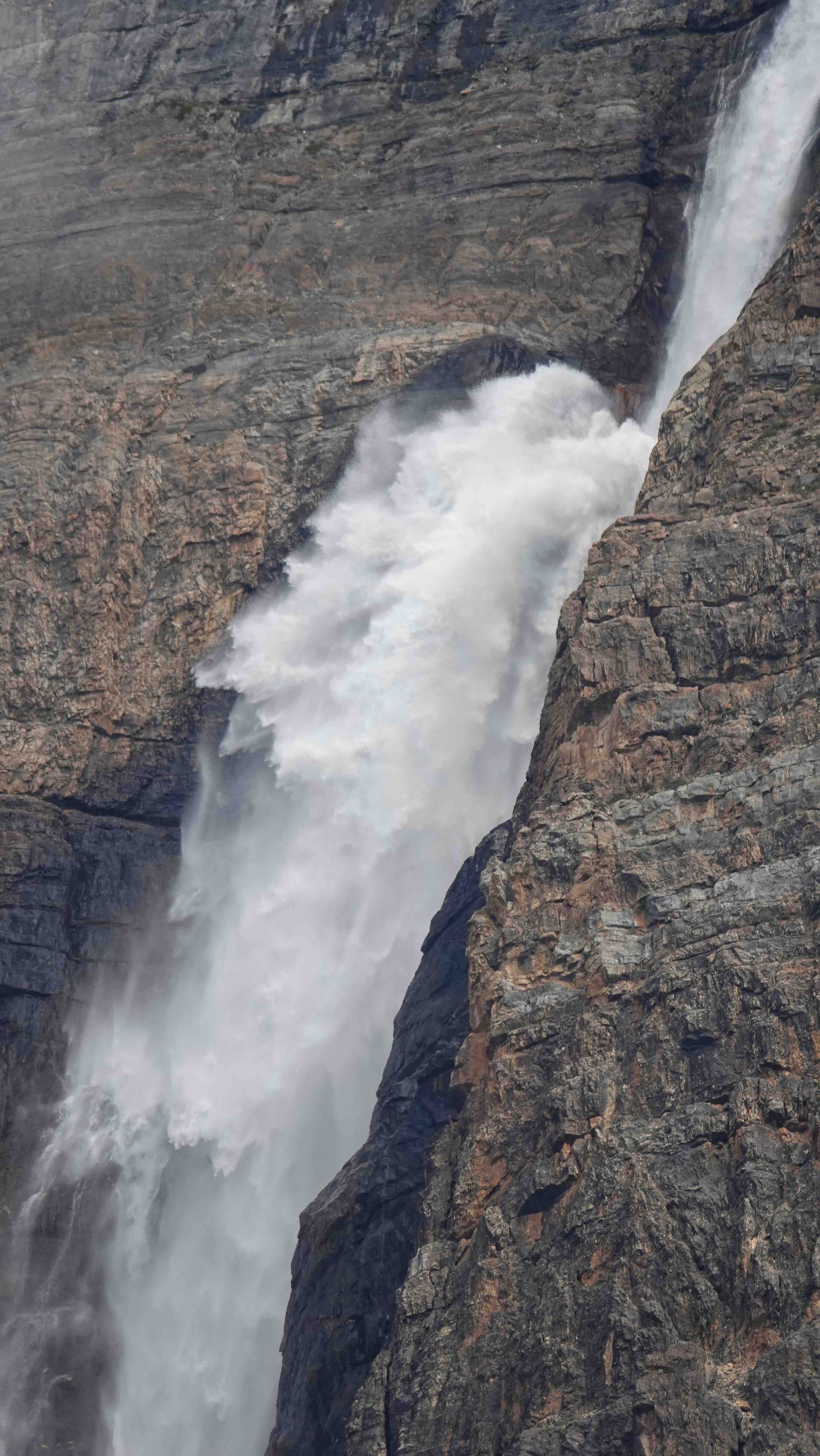 zu den Takakkawa Falls. Ein kleiner Spaziergang führt zum Fuße des wirklich imposanten Wasserfalls, der in 4 Stufen 350 m über die Felsen stürzt.