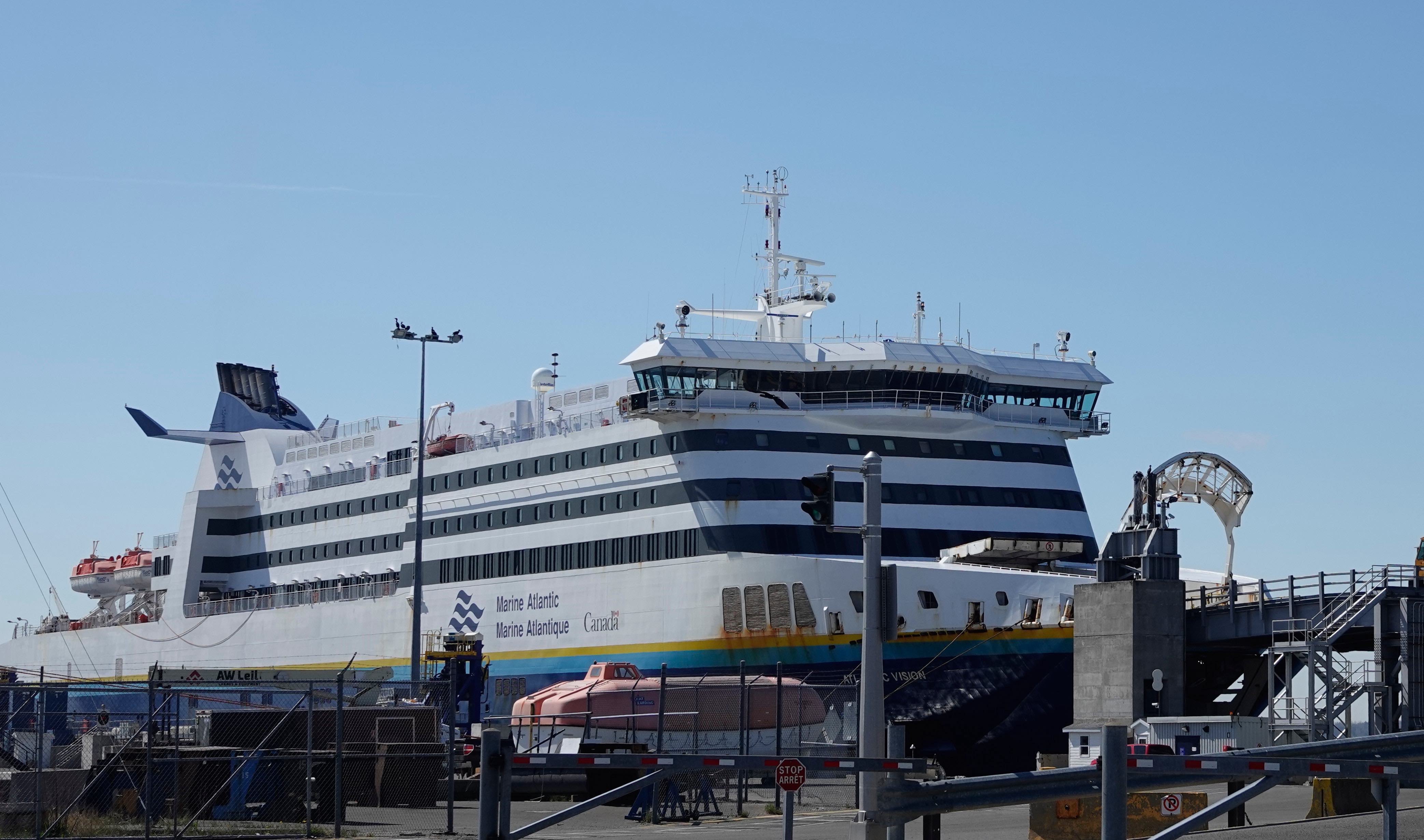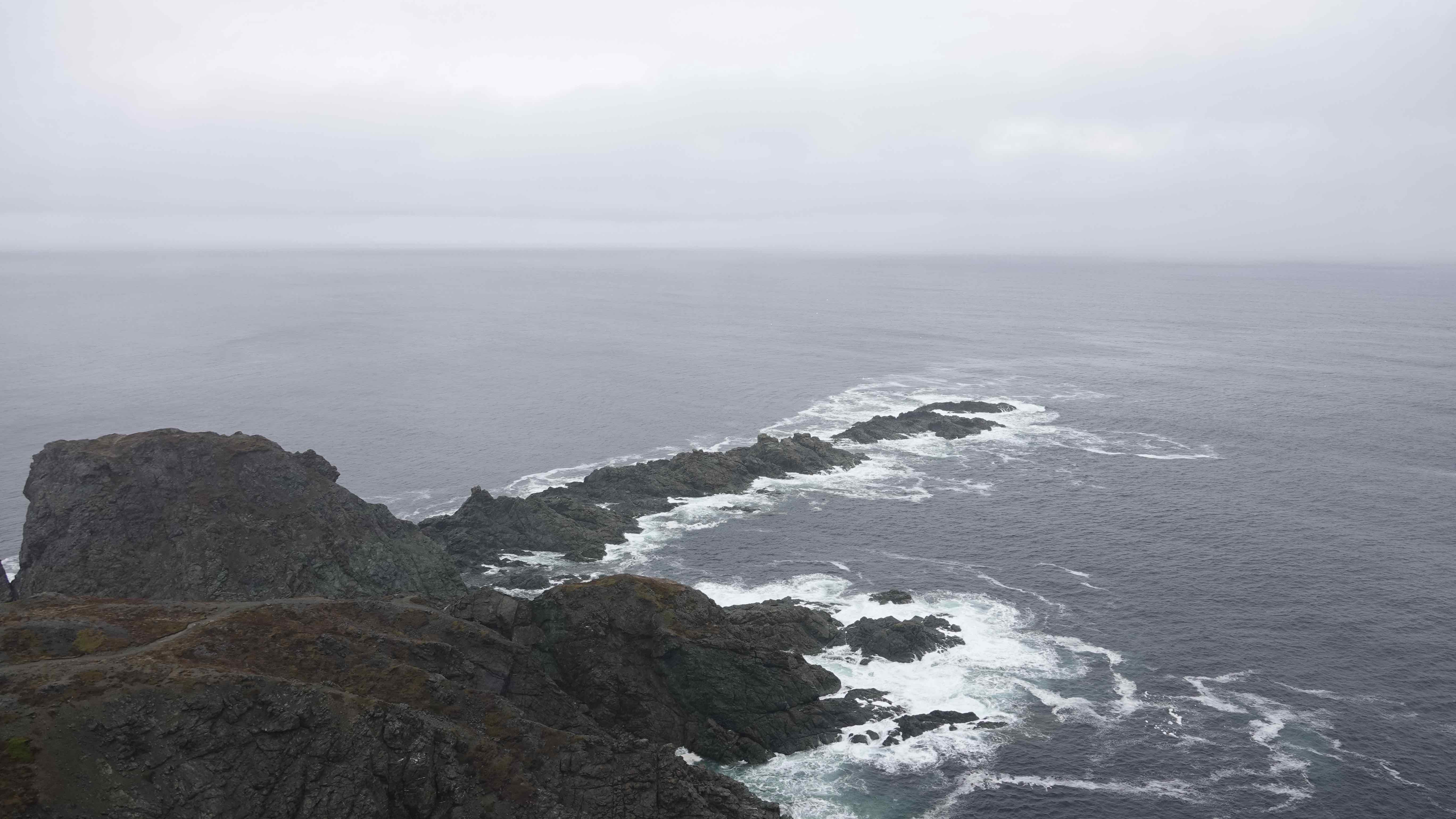 Die Überfahrt war wie von „Windy“ vorhergesagt, sehr ruhig. Da es sogar WiFi an Bord gibt, nutzen wir die Zeit, um einige Dinge zu erledigen und machen es uns im Café gemütlich.Nach 7 Stunden Fahrzeit kommt Neufundland in Sicht, bzw. die vagen Umrisse, die man im Nebel erkennen kann.
