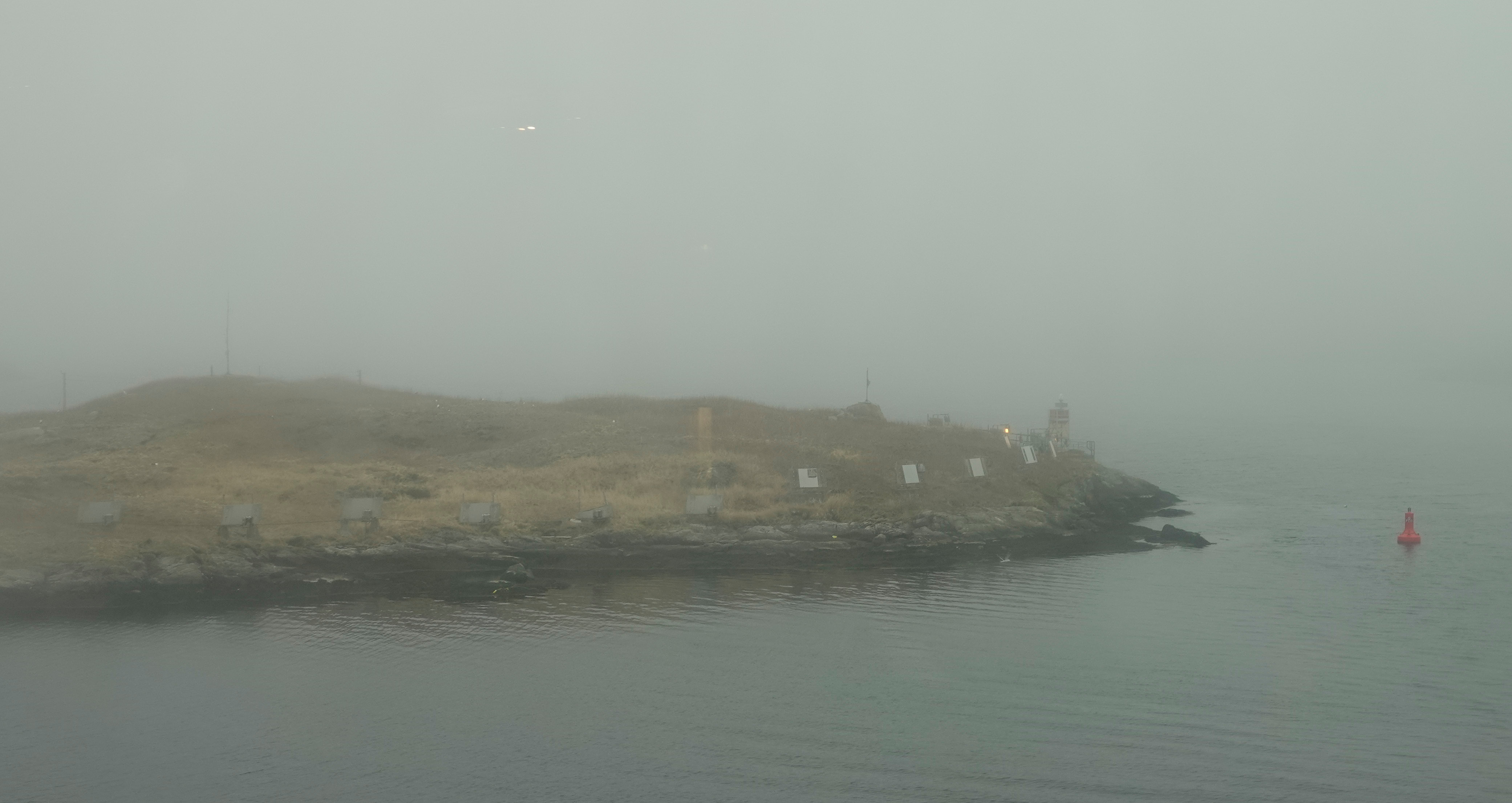 Bei strahlendem Sonnenschein legt das Schiff ab, wir genießen kurz die Aussicht auf die schwindende Küste von Nova Scotia und fahren direkt in dichten Nebel hinein, der sich auch bis zur Ankunft nicht lichtet – zu schade!