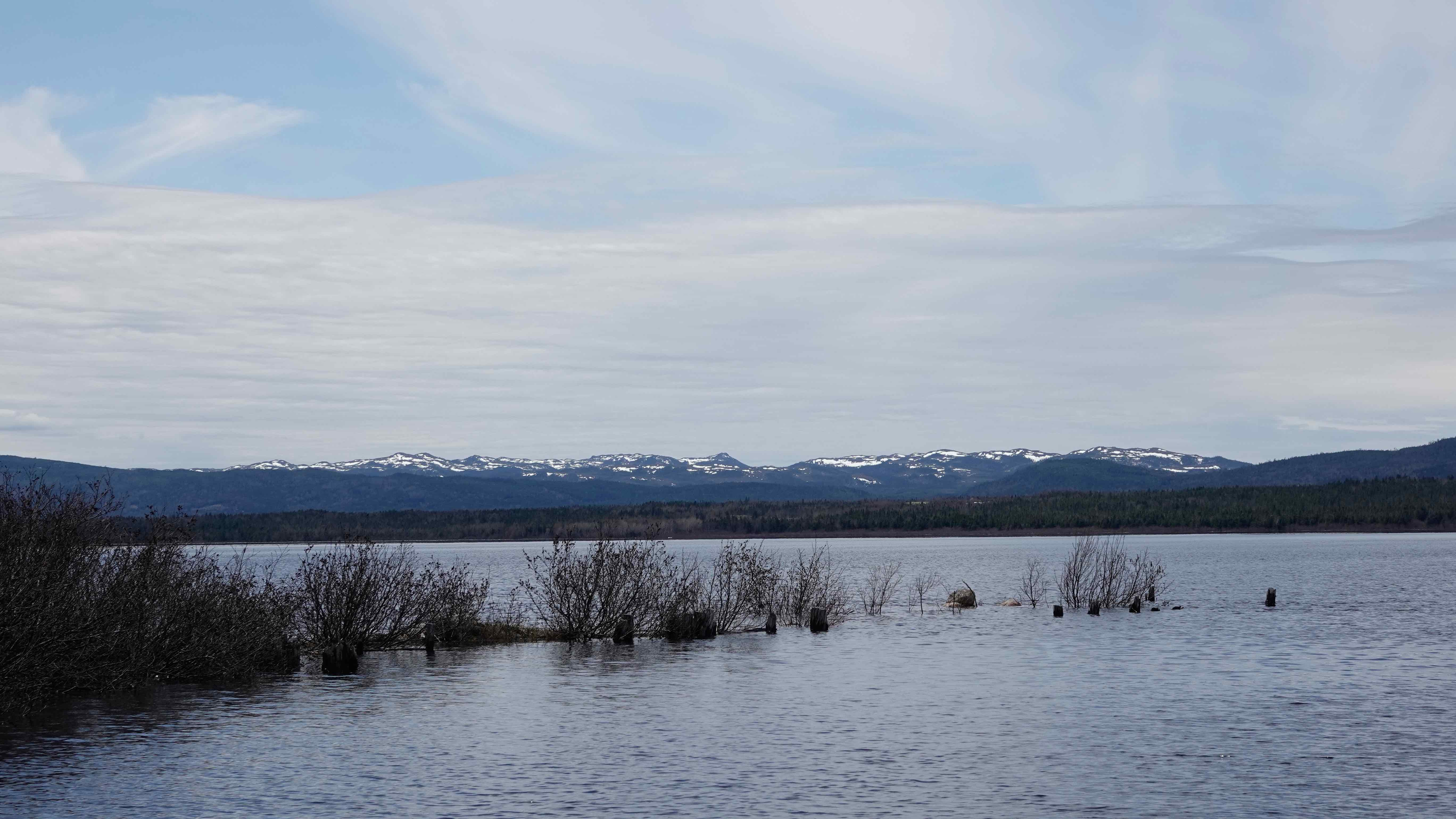 Wir biegen auf die 432 ab und fahren ein kurzes Stück durchs Land. In den Wäldern liegt noch allerhand Schnee und die Seen sind zum Teil noch zugefroren.