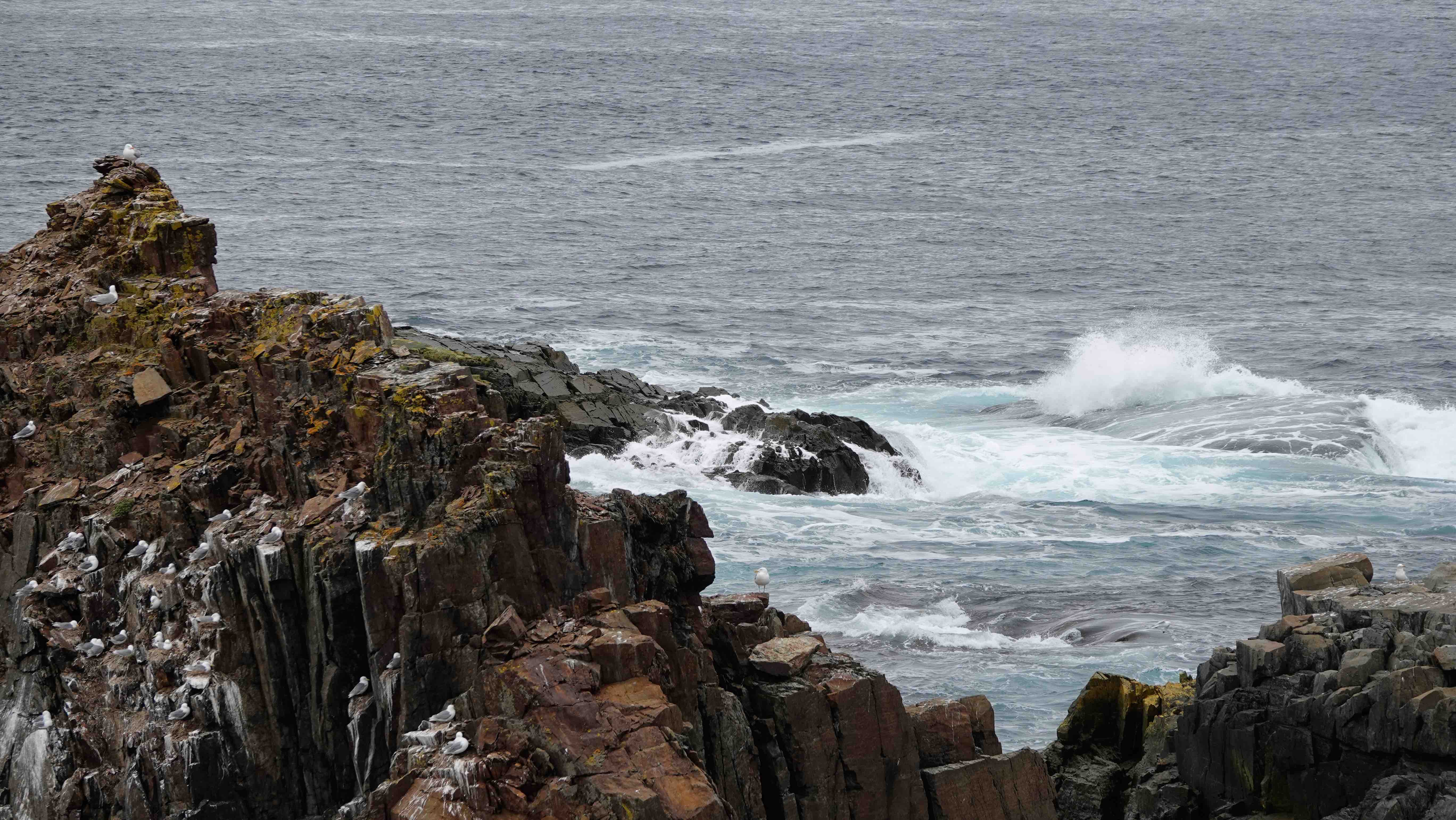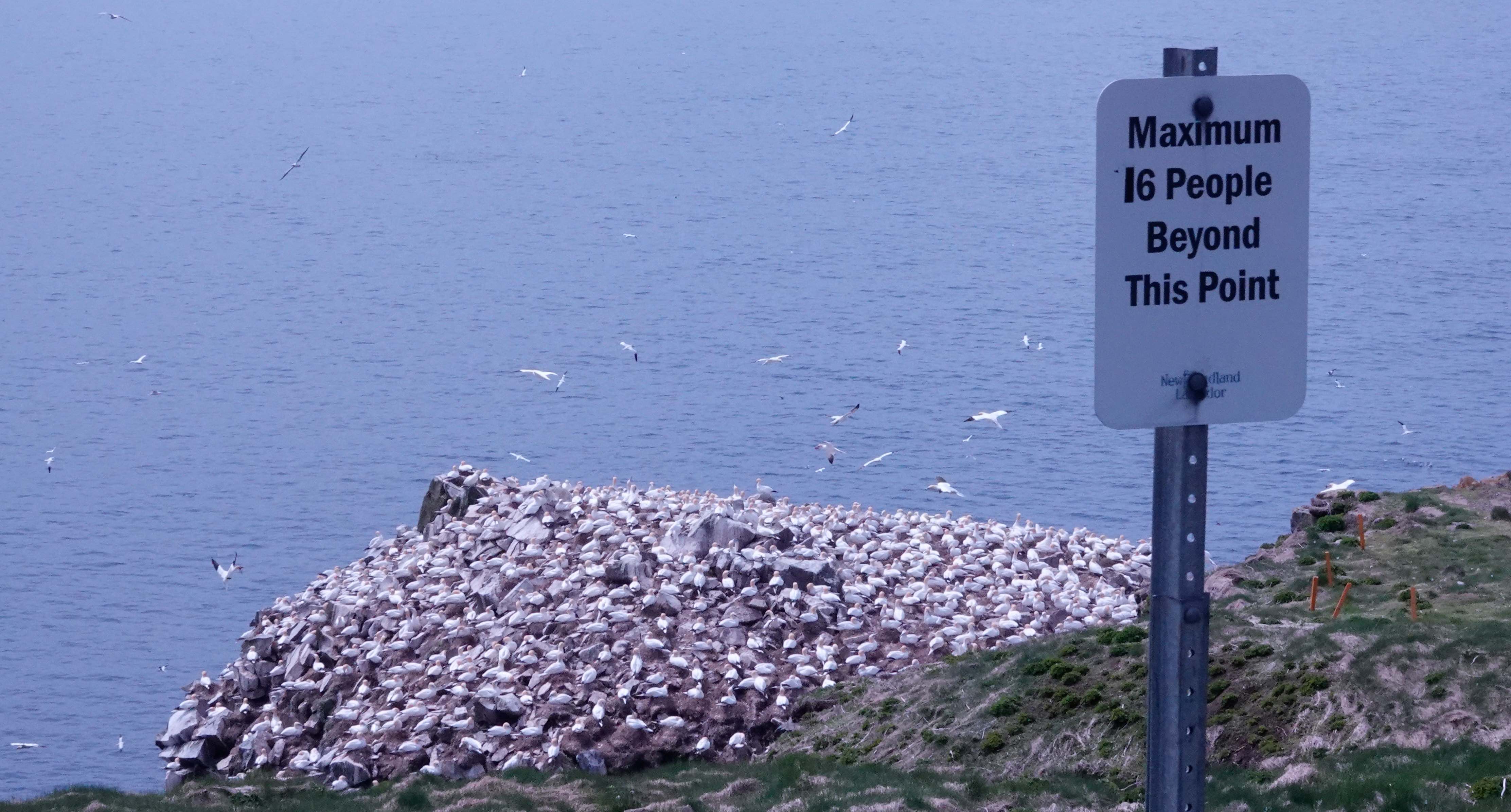 John Cabot, der 1497 als zweiter Europäer (nach Leif Erikson) auf den Nordamerikanischen Kontinent traf, rief beim Anblick der Küste: „Oh, buona vista“ und schon hatte de Ort seinen Namen. Es ist wirklich hübsch hier und wir besuchen am Leuchtturm eine weitere Vogelkolonie (leider ohne Papageientaucher). Ein Einheimischer erklärt uns, dass sie wie die Elche bei Sonnenaufgang und -untergang anzutreffen sind. Die Elche natürlich eher im Wald als auf der Klippe…Wenigstens sehen wir tatsächlich in der Ferne einen Eisberg im Meer schwimmen. Allerdings bewegt er sich eigentlich gar nicht, wahrscheinlich wurde er von Locals am Felsen verankert, um Touristen zu erfreuen.
