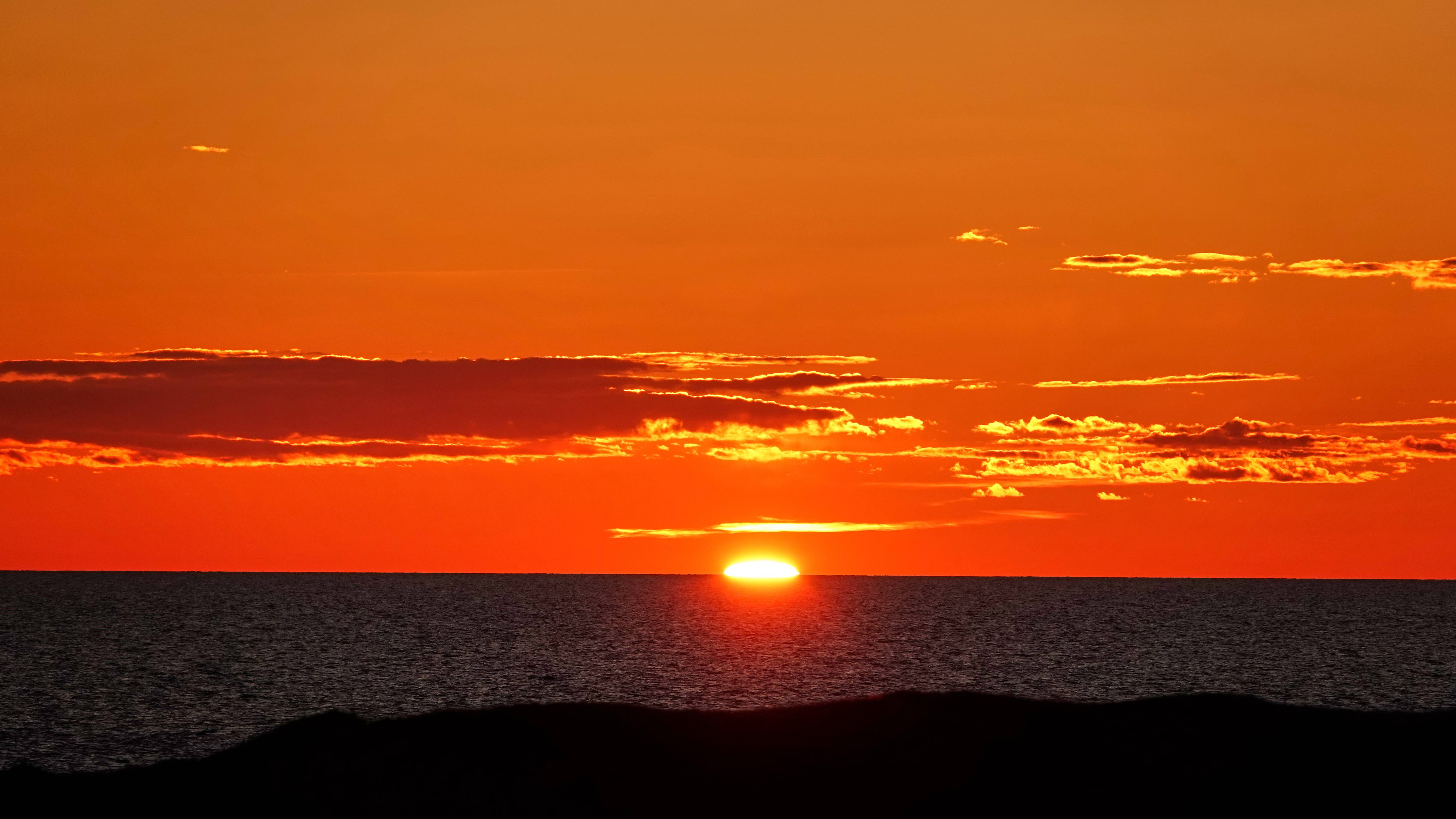 Unser Übernachtungsplatz liegt direkt gegenüber auf Cape Spear und genießen einen weiteren schönen Sonnenuntergang, der den Himmel über dem Felsen von St. John`s in rosa-orangenes Licht taucht.