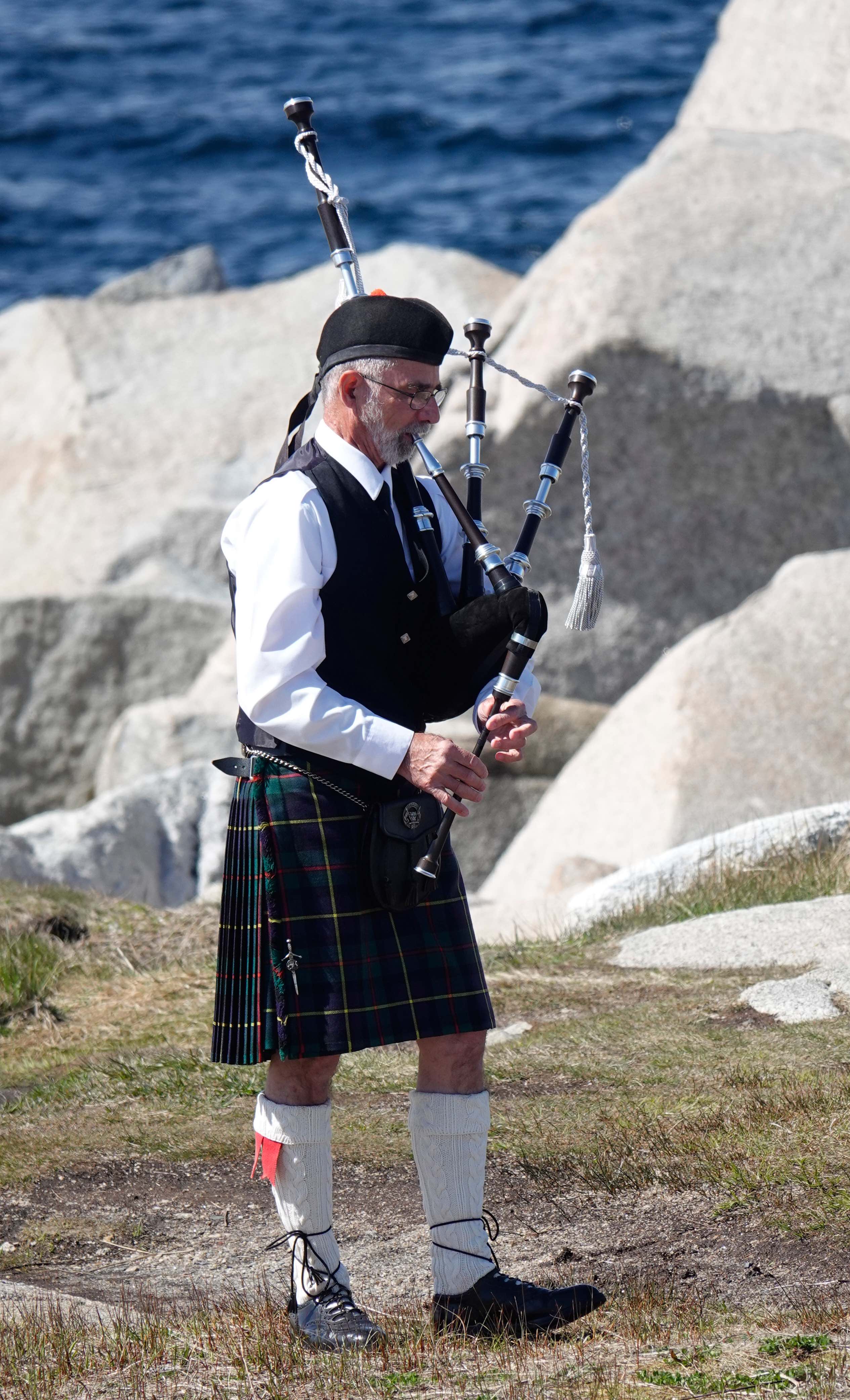 Ein Dudelsackspieler in schickem Outfit kommt dazu und unterhält die Besucher mit schottischen Klängen. Auf dem Parkplatz treffen wir ein paar Reisende, die wir im Hafen beim Abholen der Autos kennengelernt haben. Ein Austausch über die ersten Erfahrungen ist immer interessant und jede Info willkommen.