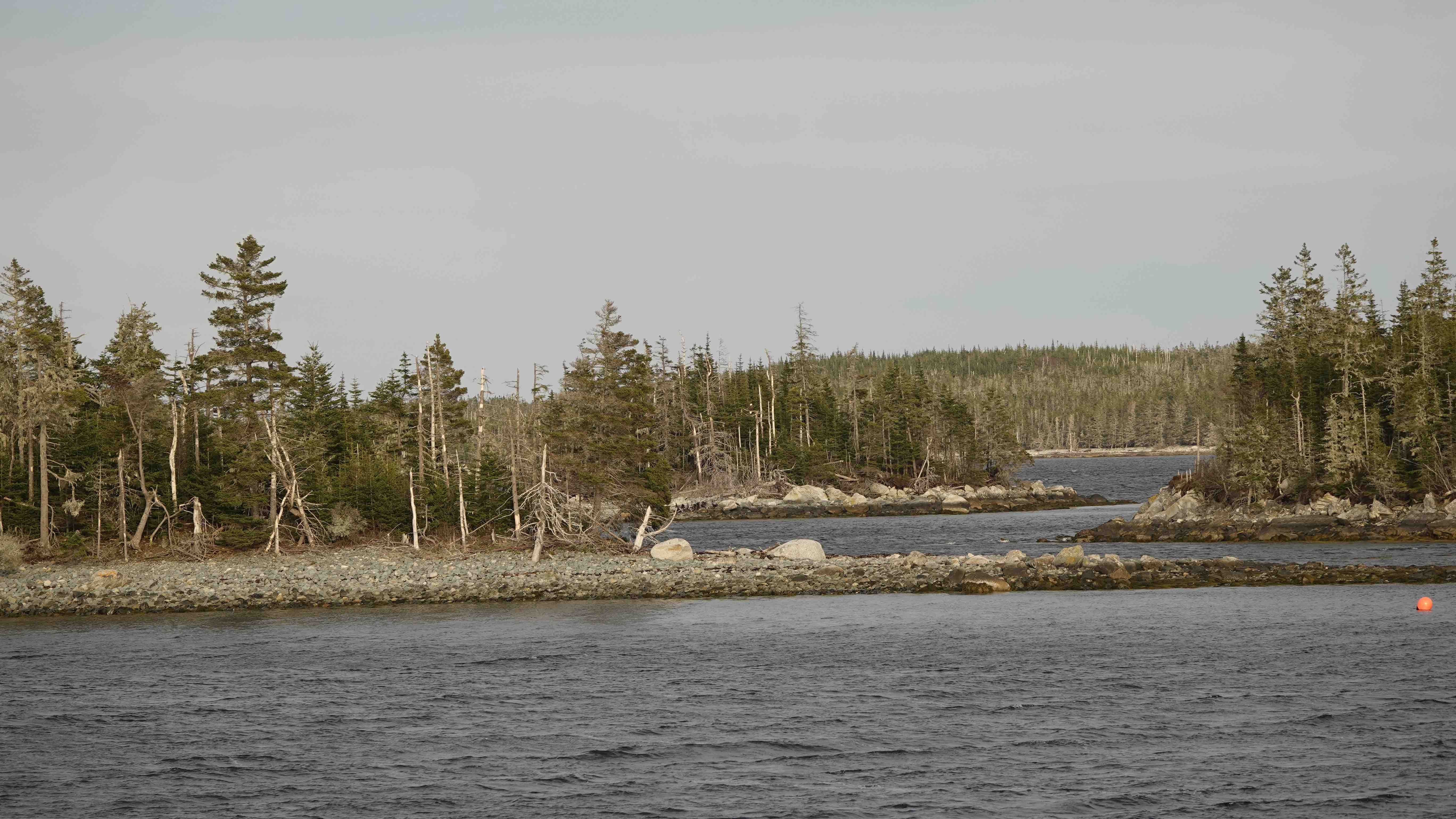 Bei Port Hastings fahren wir über eine Brücke nach Cape Breton Island. Der Ceilidh Trail schlängelt sich an der Westküste entlang, mit immer wieder großartigen Ausblicken aufs Meer. Wir finden einen schönen Übernachtungsplatz an einem kleinen Fischerhafen – Wharf Maryland – halten ein kleines Pläuschchen mit den Fischern, die nichts dagegen haben, dass wir hier übernachten wollen. Am Strand ist unglaublich viel Treibholz zu sehen, man kann sich gut vorstellen, mit welcher Gewalt die Winterstürme die Küste entlang toben.