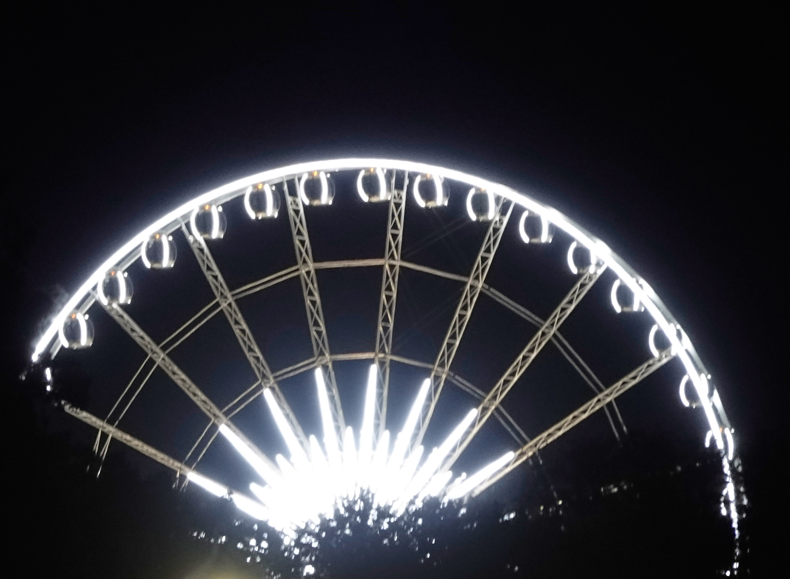 Je näher wir kommen, desto feuchter wird es, die Gischt im Laternenlicht – mystisch!