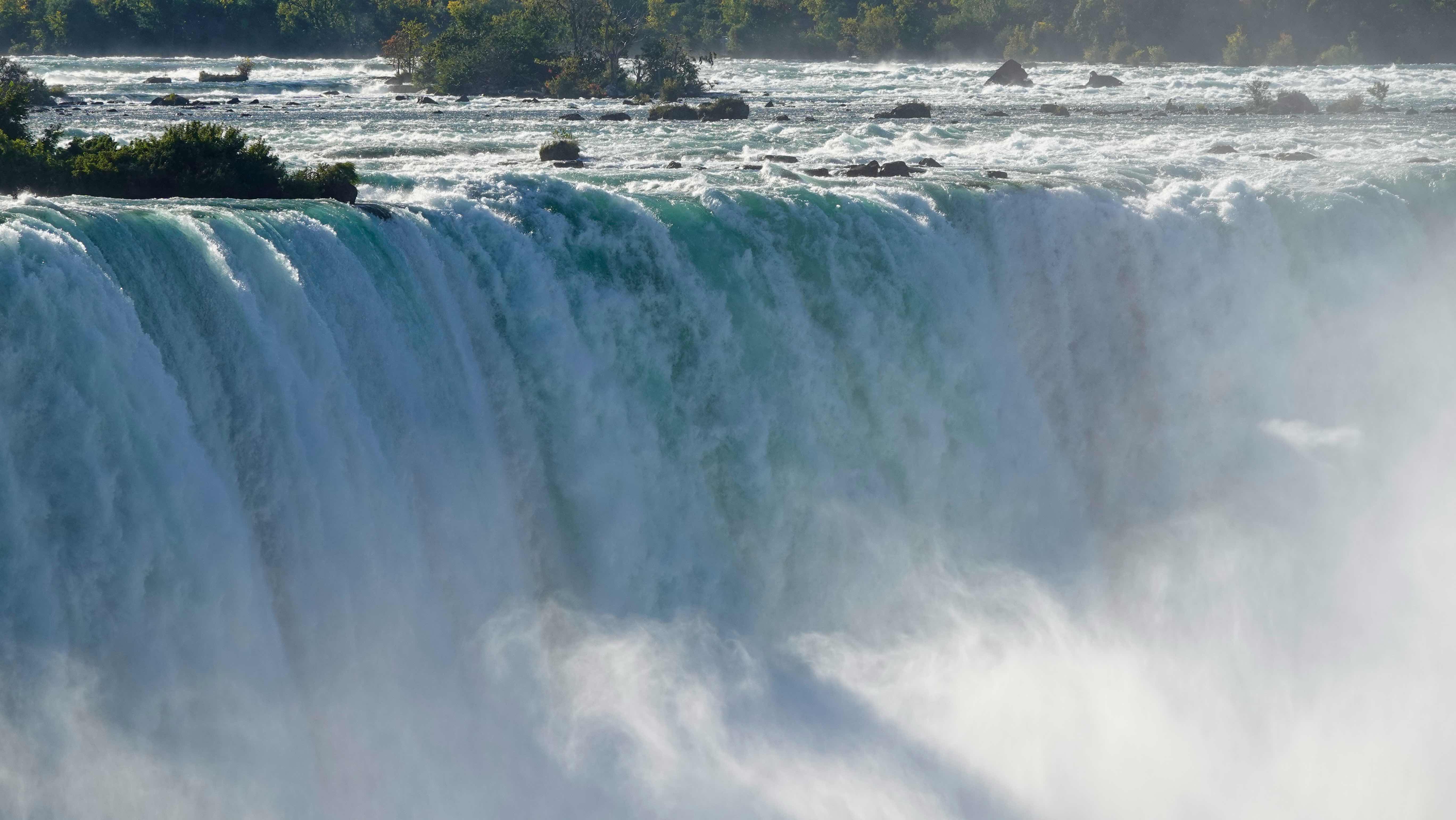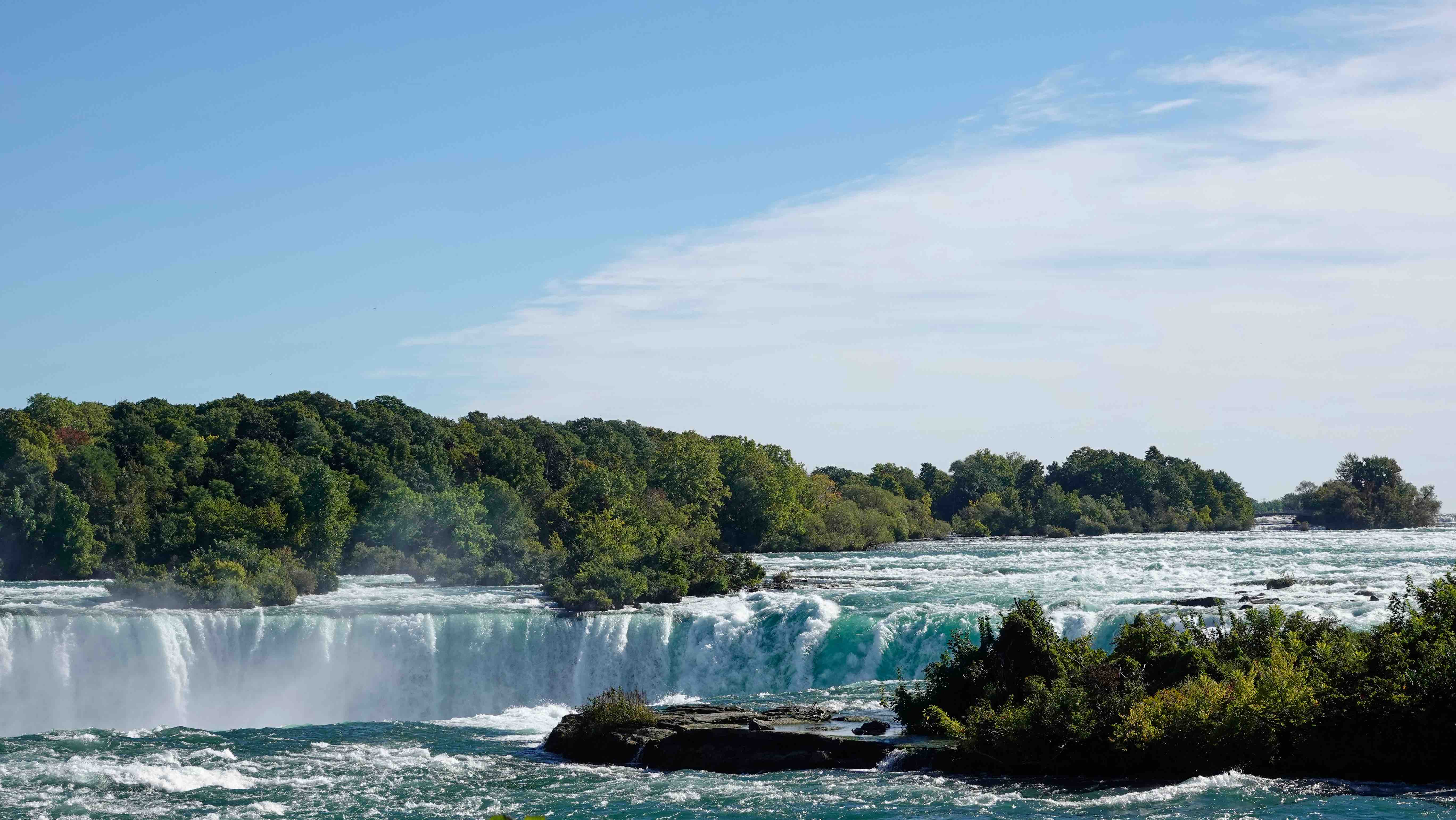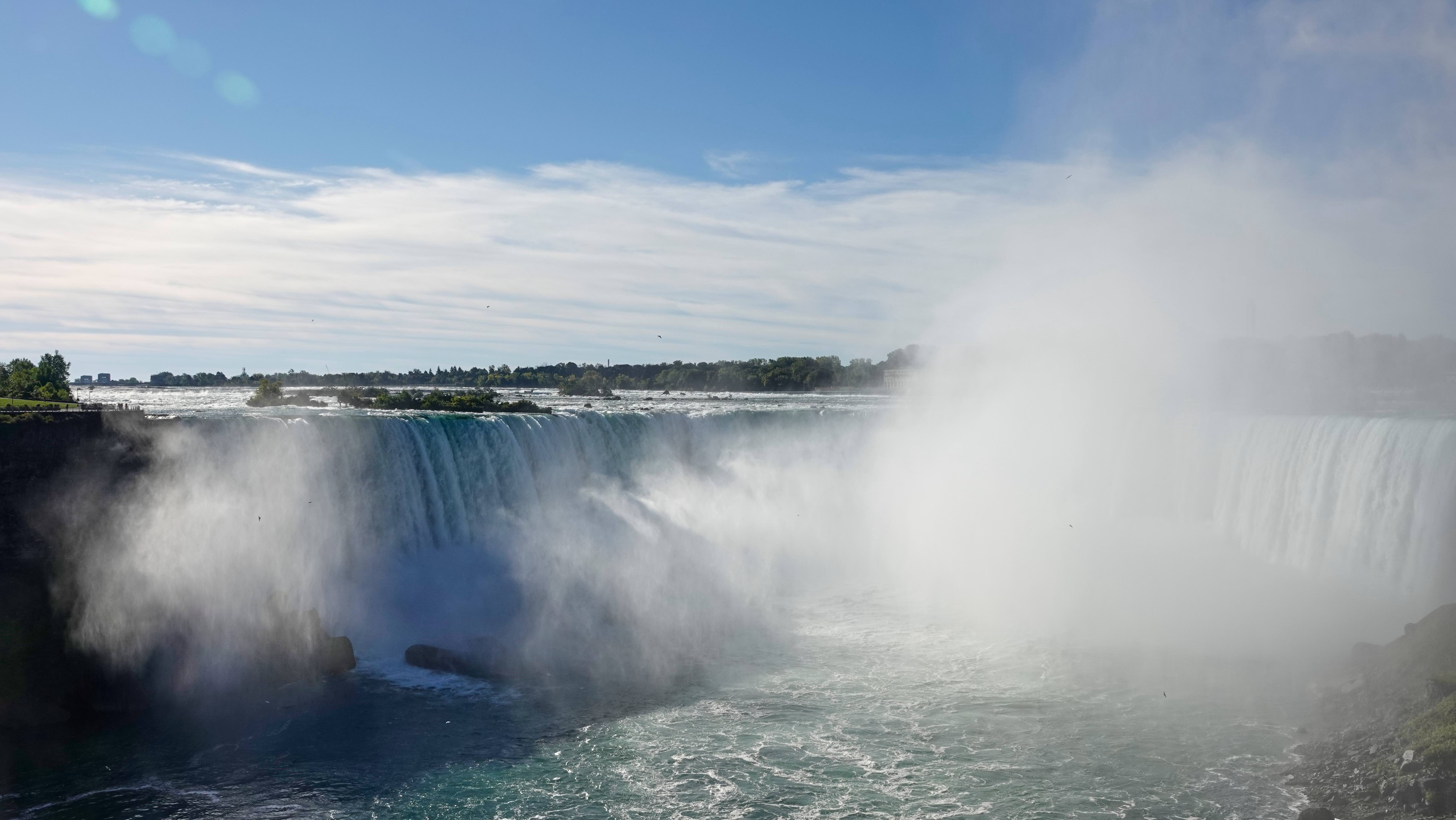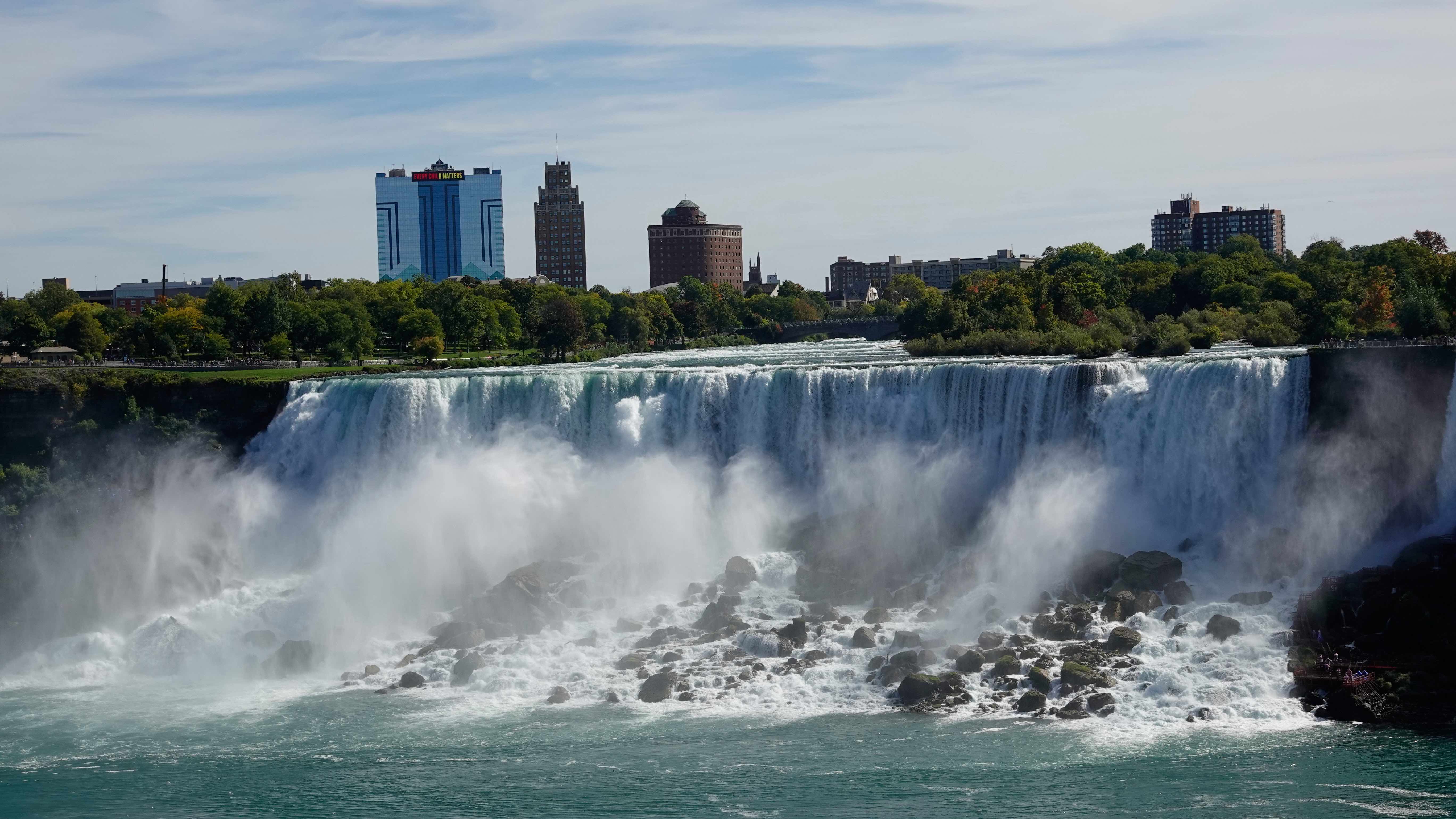 Von hier sind es noch 350 km bis zu den Niagarafällen und wir kommen am Abend ans Ziel. Wir parken unser Auto am Skylon Tower und nach einem kurzen Spaziergang sind wir direkt bei den Wasserfällen.