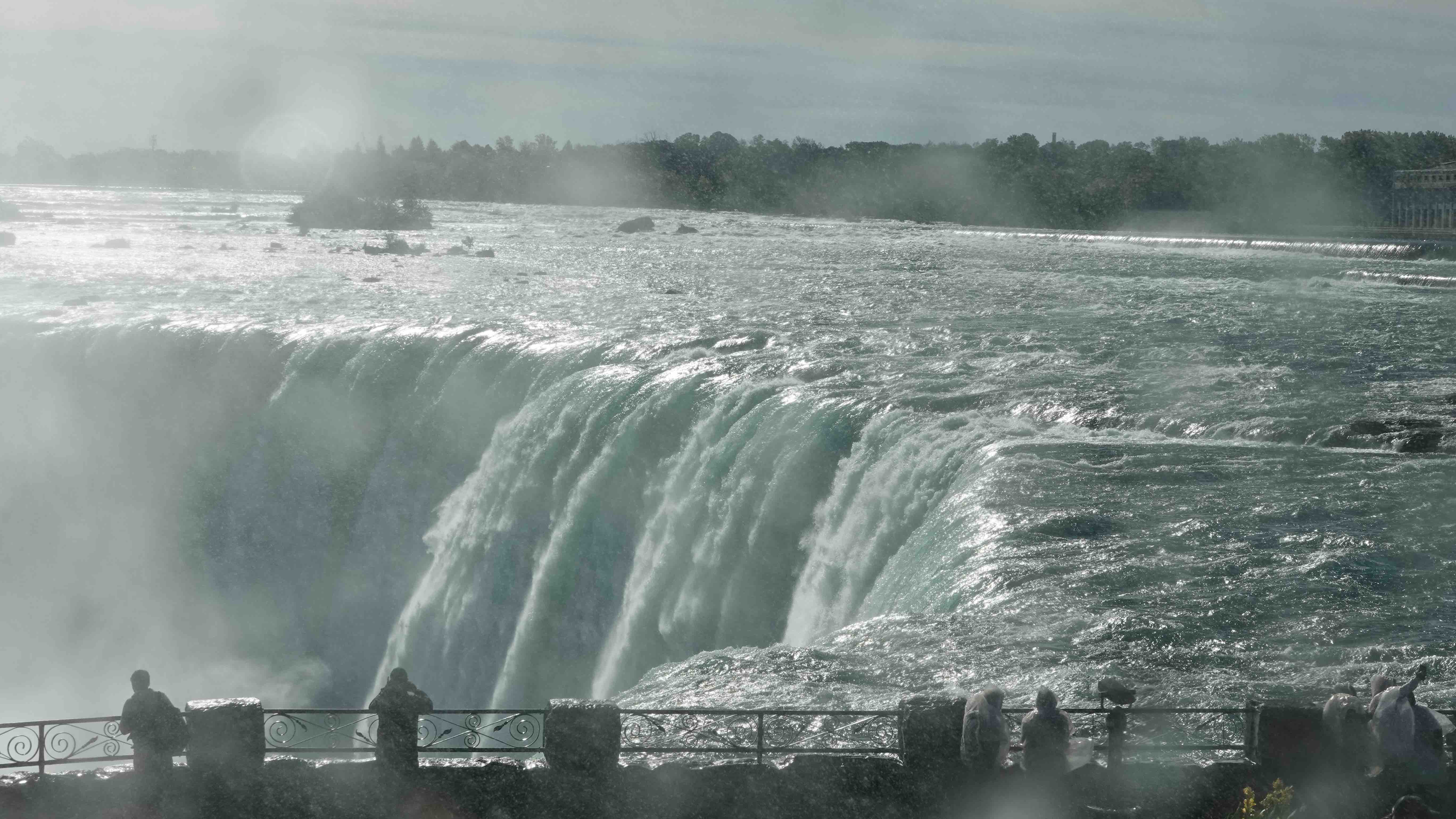 Der Wind bläst uns die Gischt entgegen und teilweise kann man den Wasserfall nur durch einen Dunstschleier sehen.