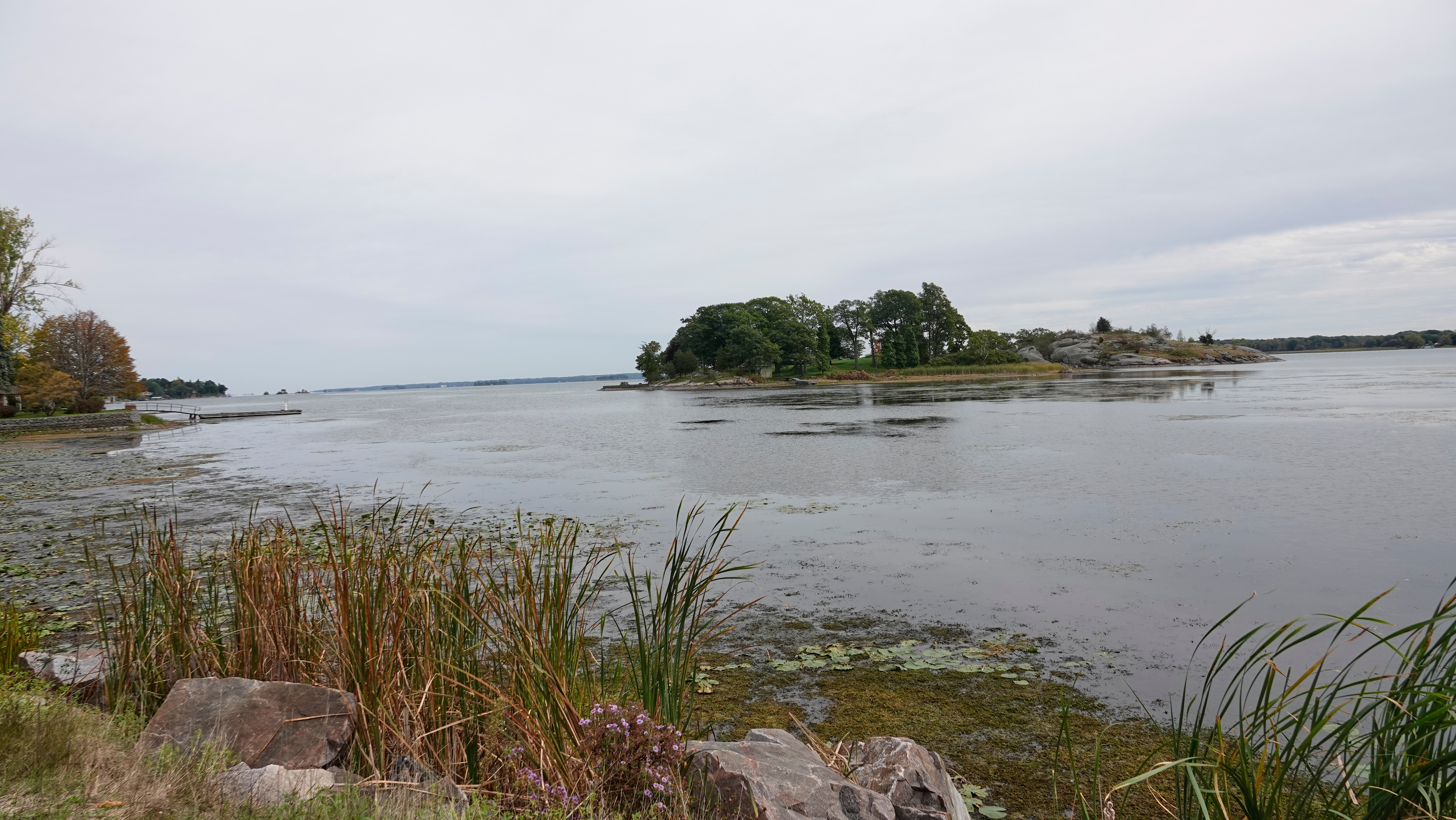 Am Ende des Sees geht es weiter am St. Lorenz Strom, ein besonders hübscher Abschnitt ist der 1000 Islands Parkway von dem aus man immer wieder schöne Ausblicke auf den mit unzähligen Inseln gesprenkelten Strom hat.