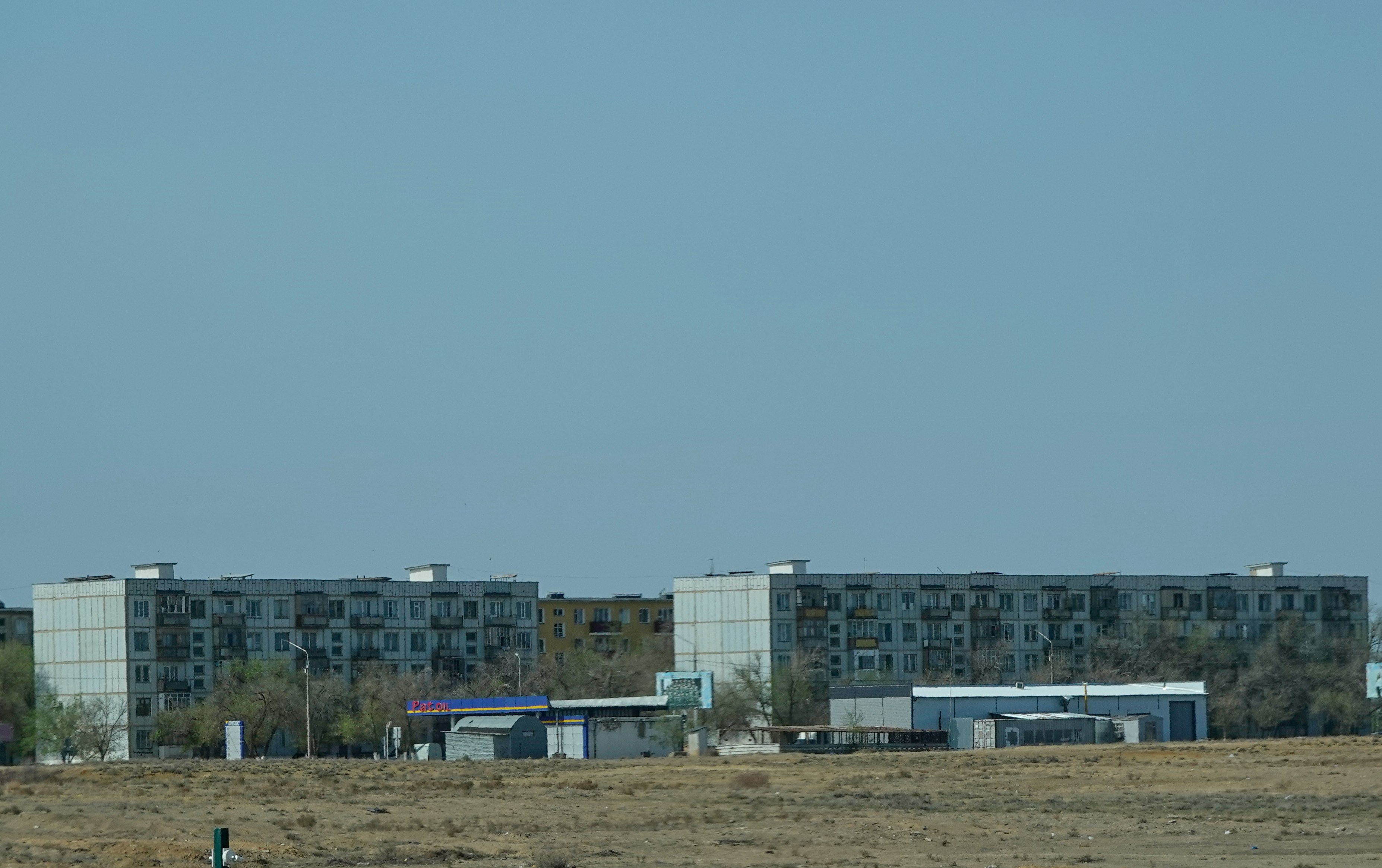 Wir fahren an Baikonur vorbei, welche durch den Start des ersten Sputniks 1957 und den ersten bemannten Weltraumflug von Juri Gagarin weltberühmt wurde. Noch heute hat Russland das Gelände von Kasachstan gepachtet. In die Stadt dürfen wir ohne Erlaubnis nicht hineinfahren und können daher das Museum auch nicht besuchen.