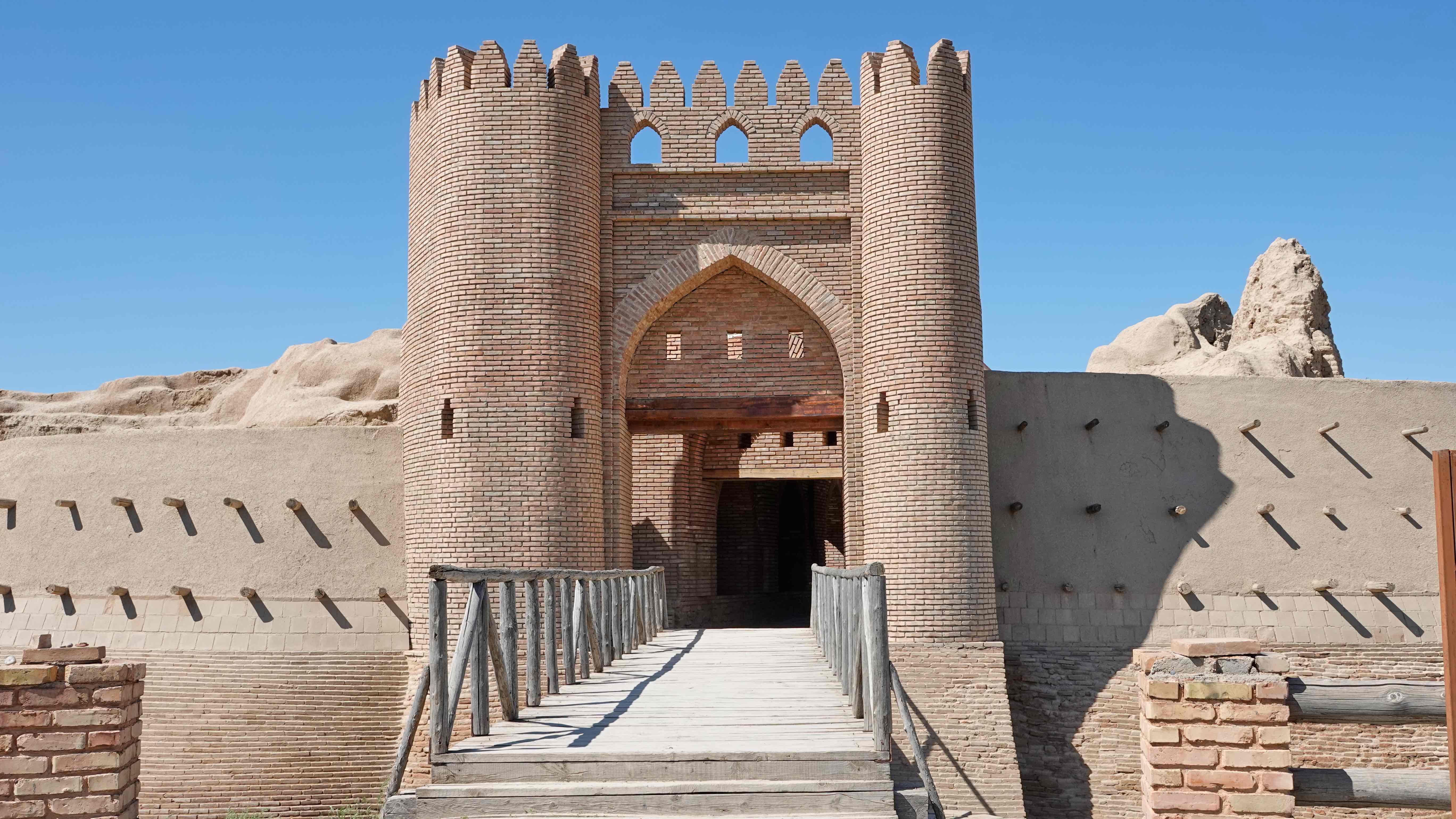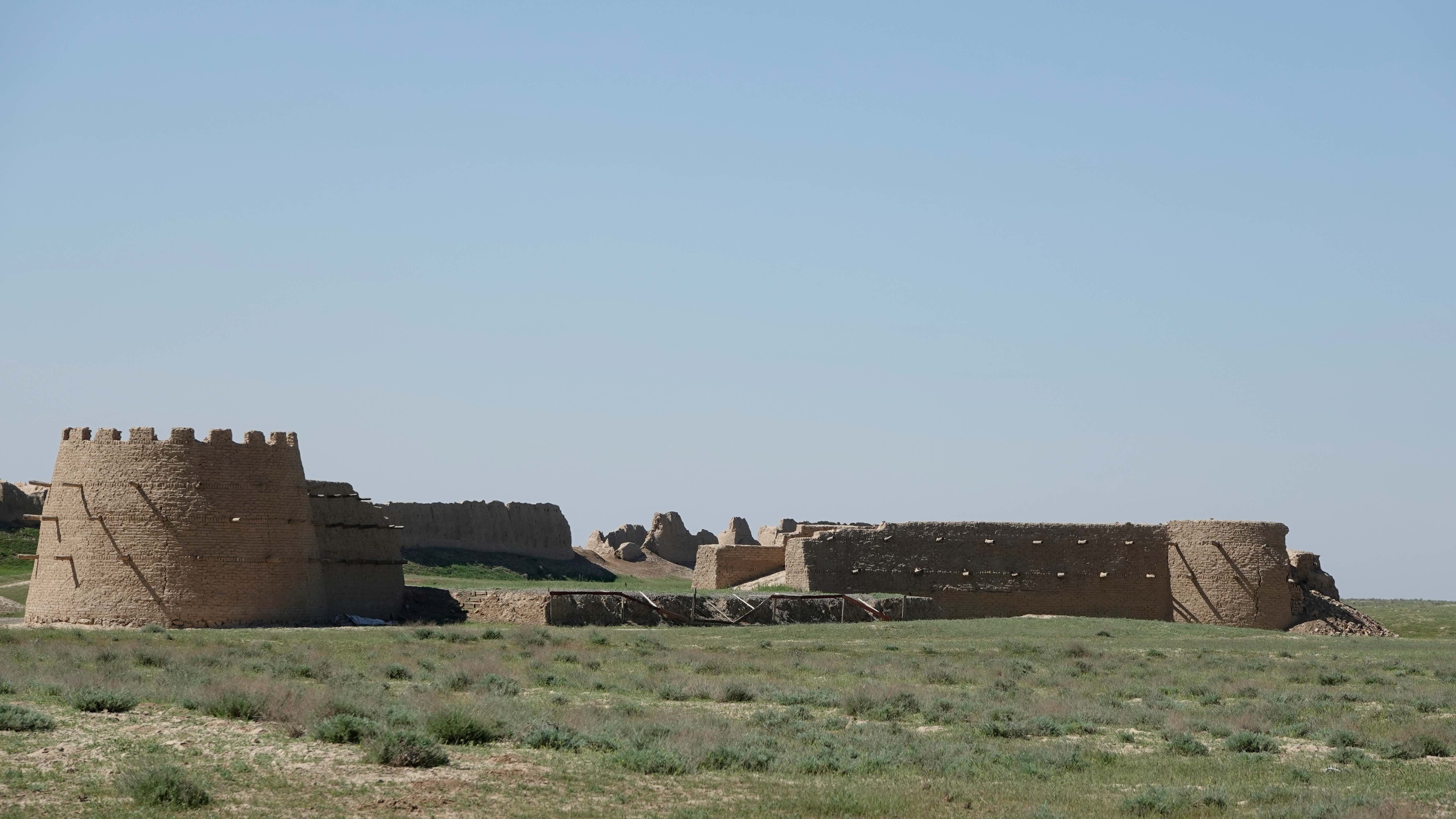 Heute ist mal wieder Kultur angesagt. Wir besichtigen die Ruinen von Sauran, eine der ältesten und reichsten Städte der Seidenstraße. Durch das aufwändig restaurierte Stadttor gelangt man auf das Ausgrabungsgelände, auf dem sich Ruinen von Gebäuden aus dem 13. – 18. Jahrhundert befinden.