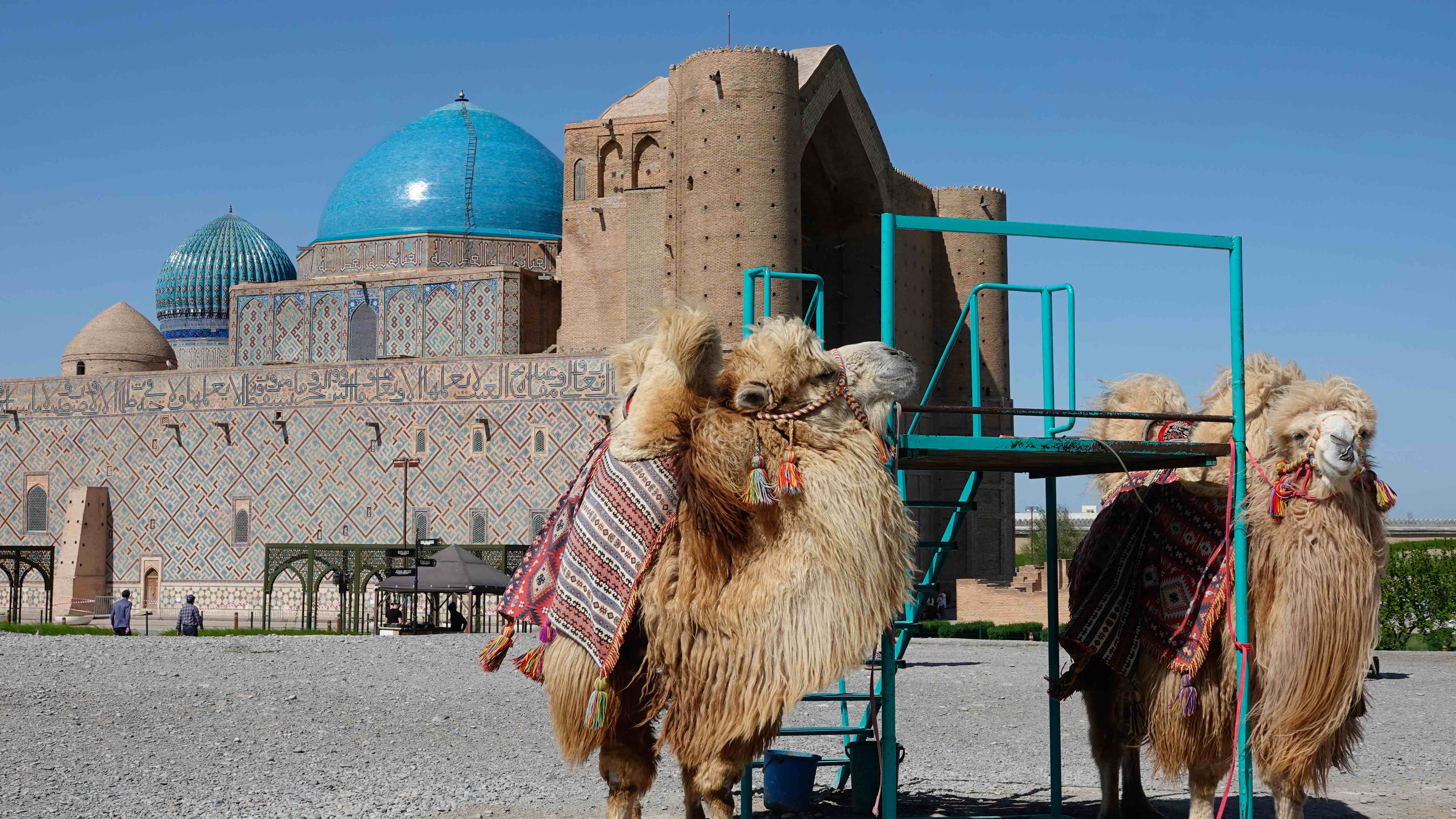 Nächster Stopp ist Türkistan, wo sich die Grabmoschee des Hodzha Achmed Jassawi befindet, eines heiliggesprochenen Gelehrten aus dem 12. Jahrhundert.