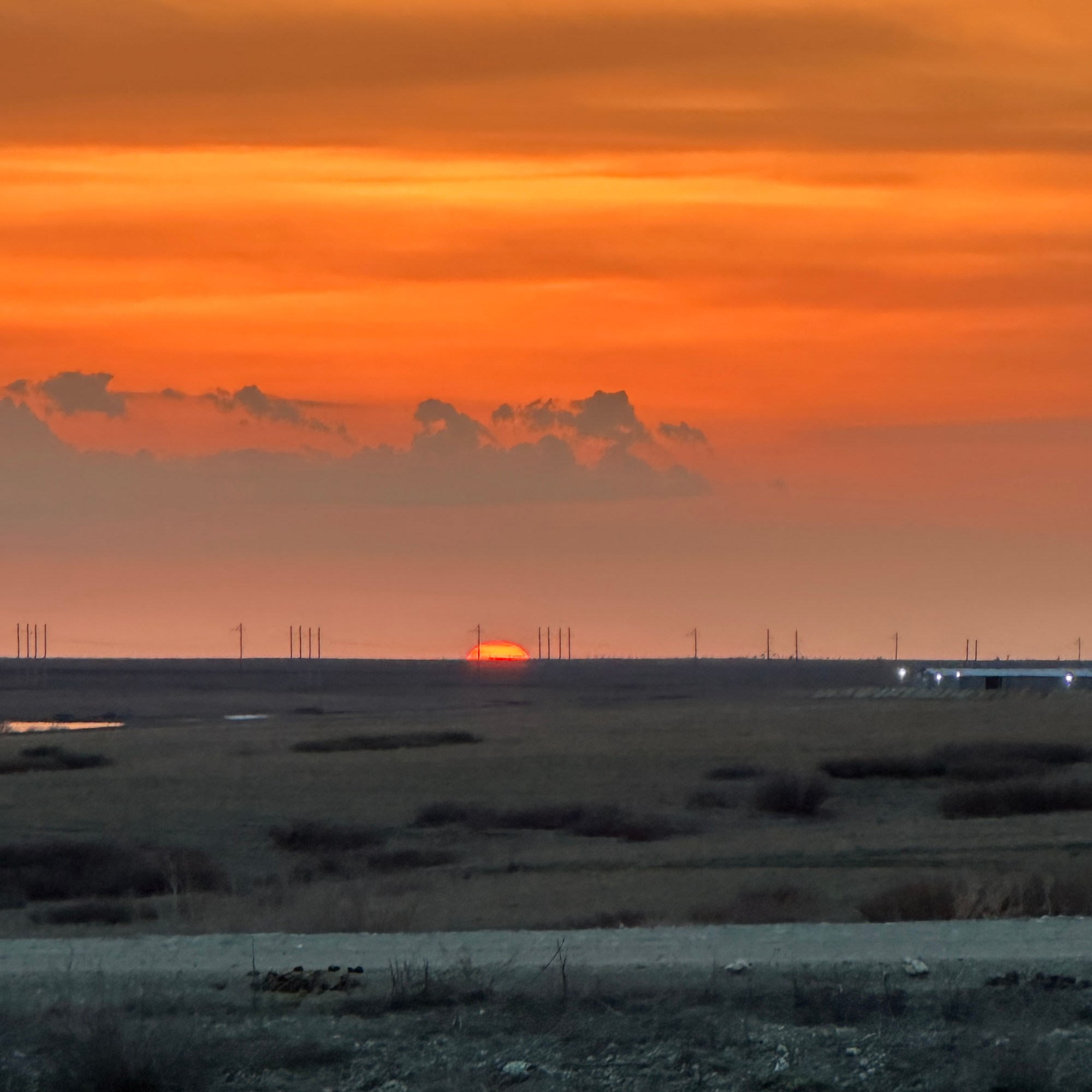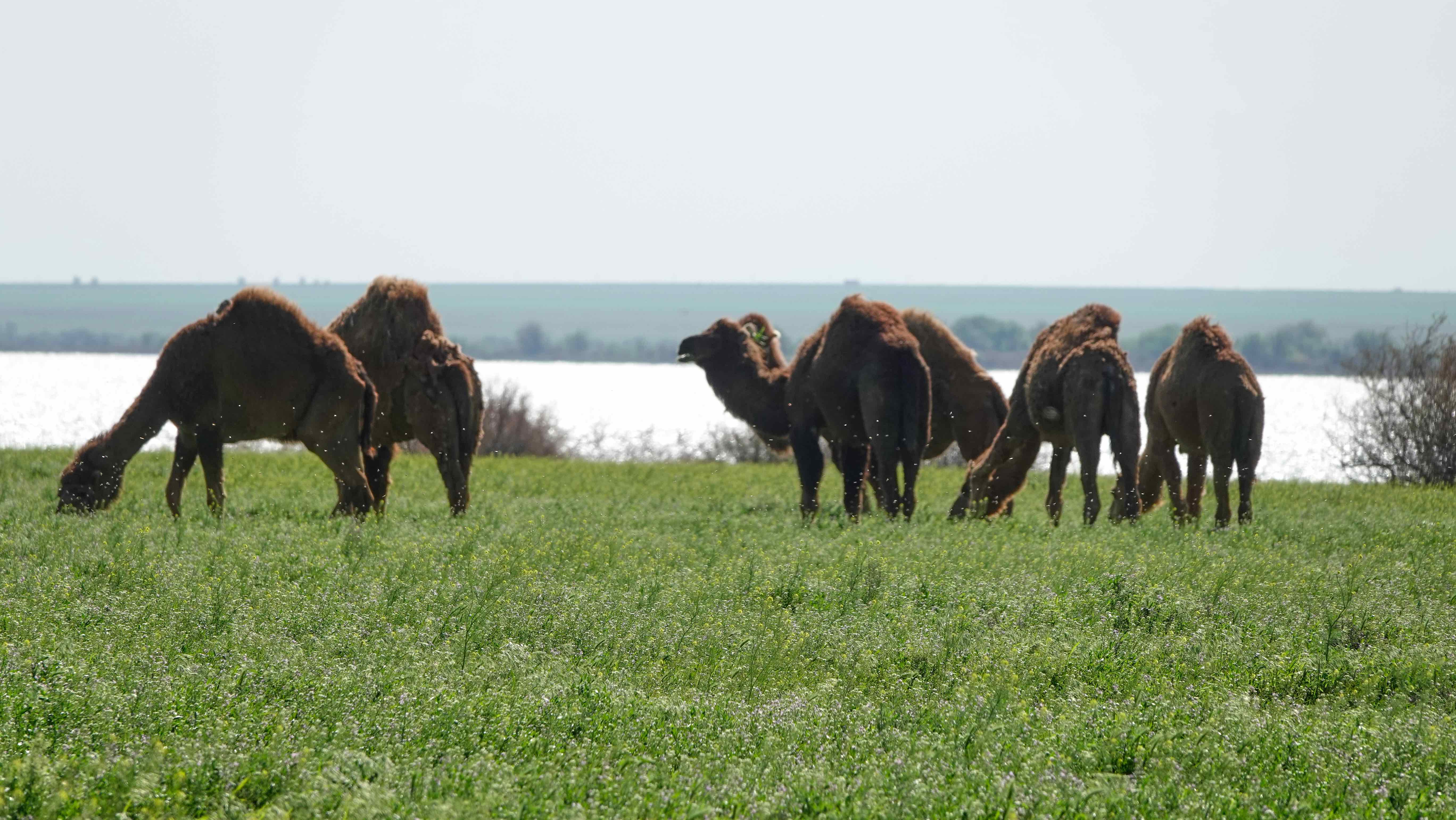 Es ist noch früh am Nachmittag und wir fahren noch ein Stück bis ans Kaspische Meer, ein Stück vor Atyrau. Auf dem Weg begegnen uns die ersten Kamele und wir geraten in einen Sandsturm, der sich allerdings als ein Steppenbrand entpuppt.