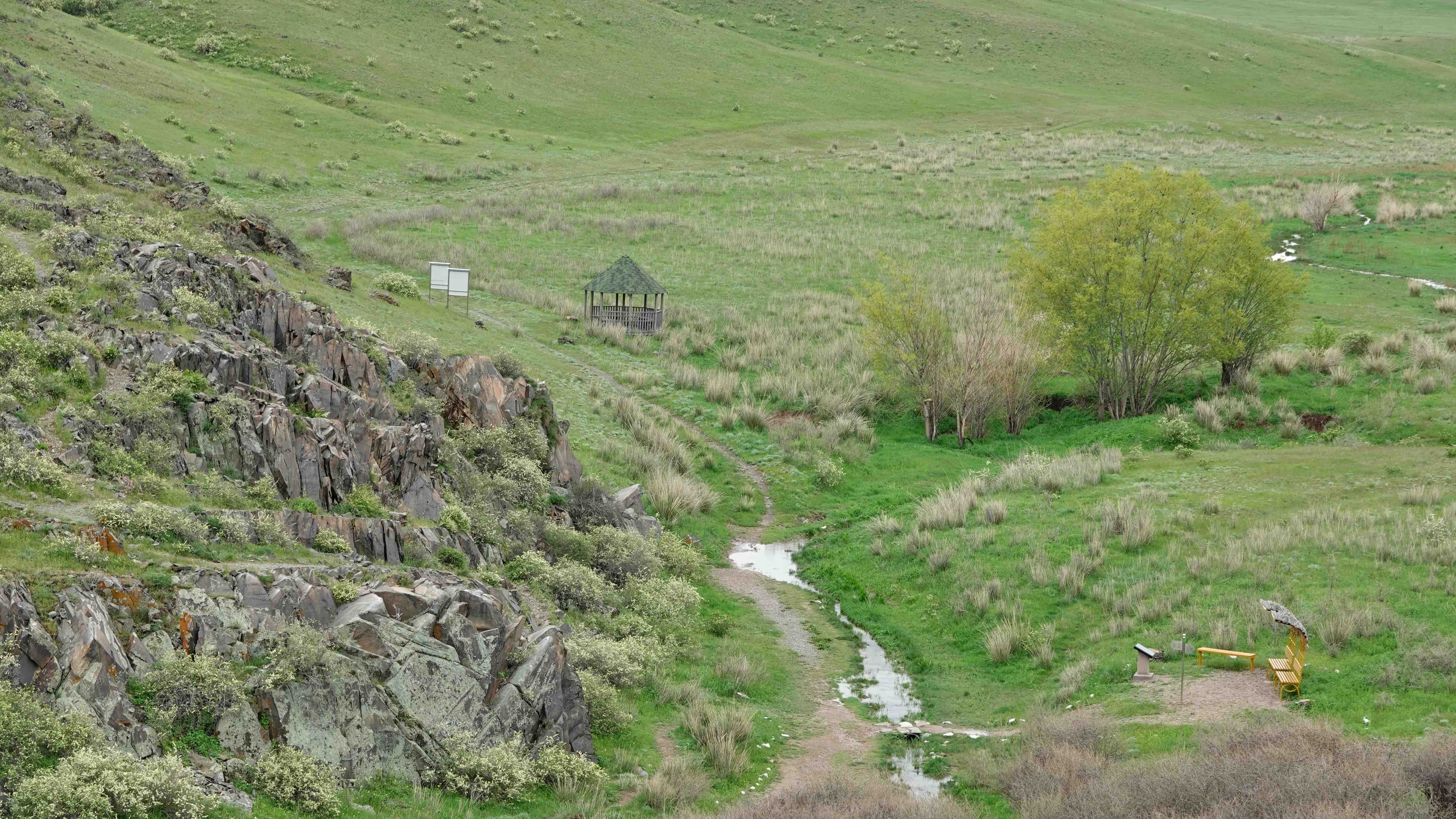 Die Erosion schafft auch hier faszinierende Gebilde: Türme, Säulen und sogar eine Jurte ist dabei.